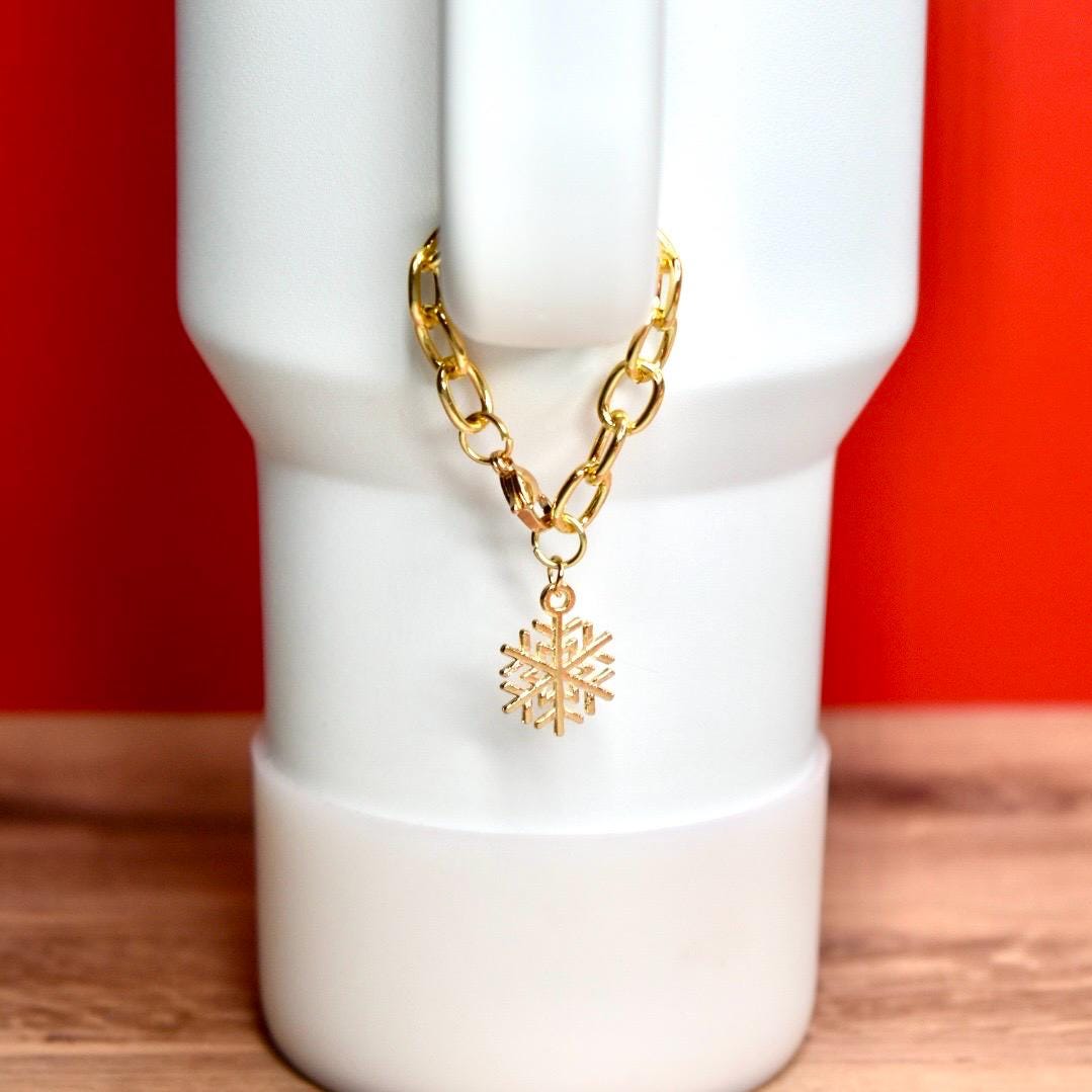 Add festive flair to your favorite tumbler with these adorable Christmas handle charm bracelets! Featuring a trendy chunky gold chain and your choice of holiday charms, these accessories bring seasonal sparkle to your daily hydration routine.