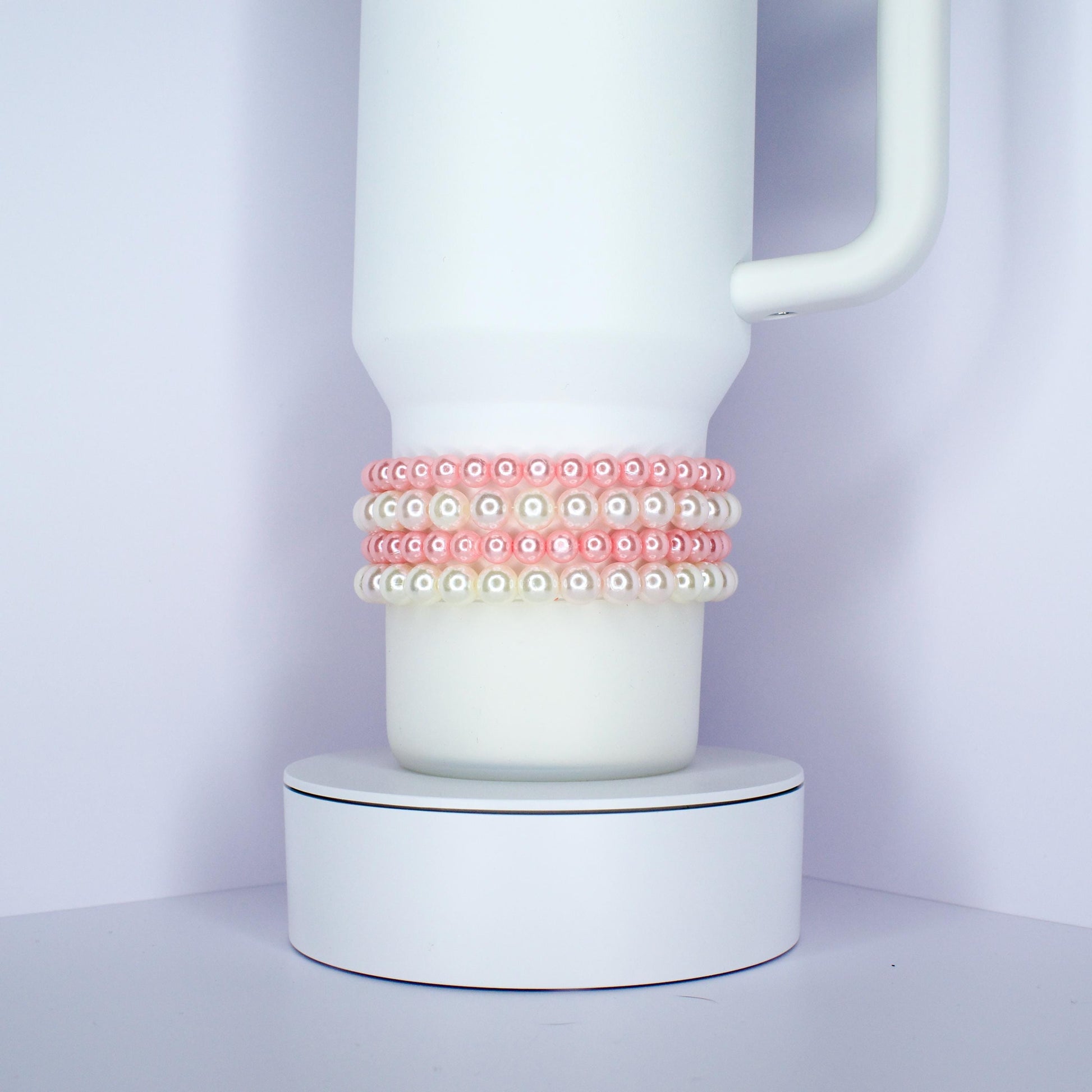 Bring timeless elegance to your style (or your tumbler!) with these beautiful faux pearl bracelets. Handmade with smooth, glossy beads in soft blush pink or classic ivory, each bracelet can be worn on your wrist or styled as a chic tumbler accessory — perfect for adding a little glam wherever you go.