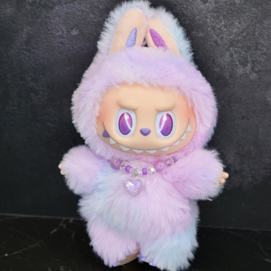 Delicate and enchanting, the Lavender Dream Mini Necklace is the perfect accessory for your Labubu doll. Featuring soft lavender beads, sparkling clear crystals, and tiny purple accents, this piece is completed with a translucent heart charm for a dreamy finish.