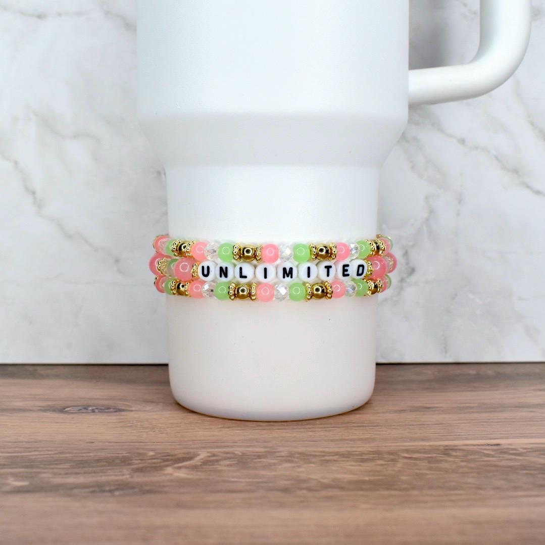 Customization Available: The letter bead message can be customized! While shown with "UNLIMITED," you can request a different phrase, name, or inspirational message when ordering.