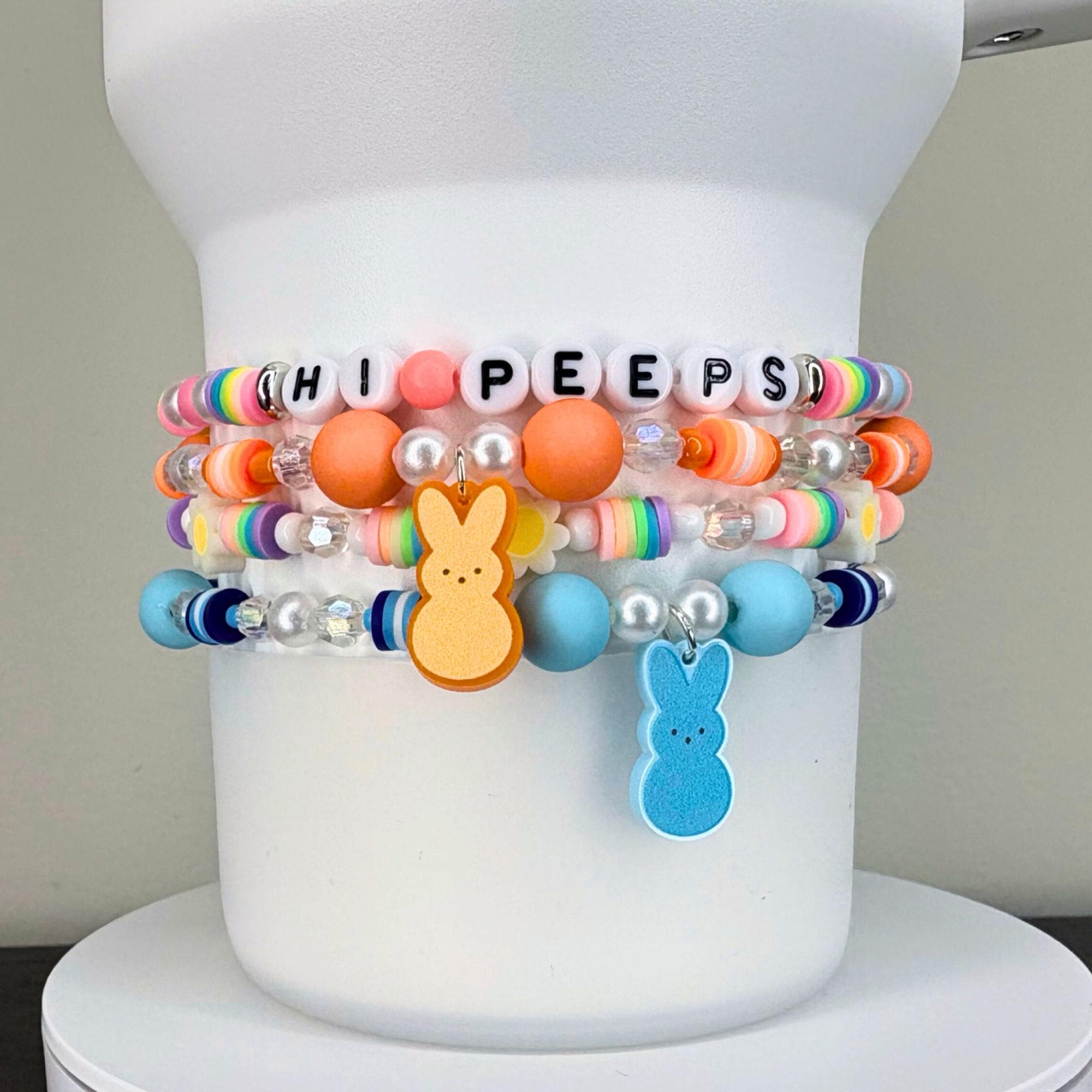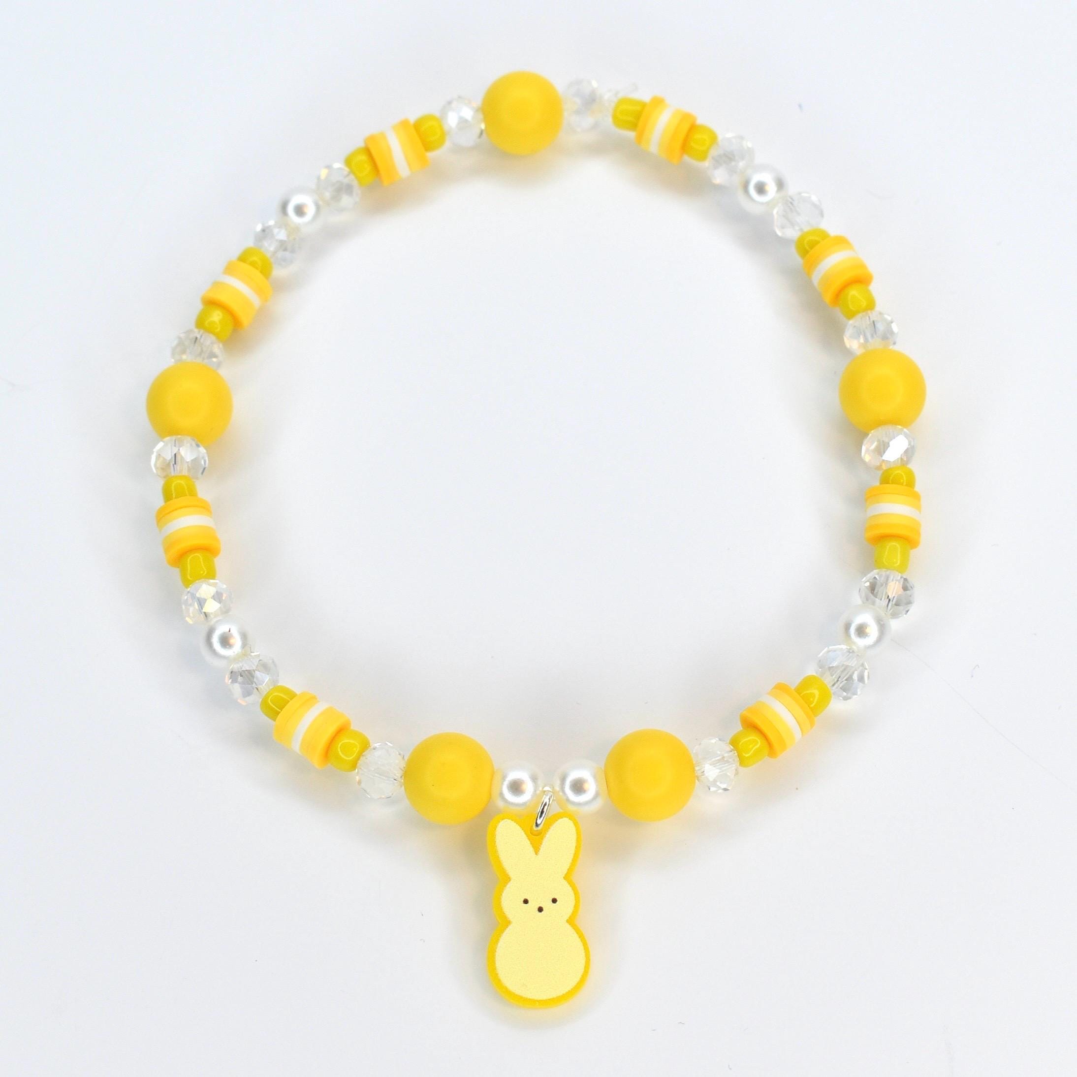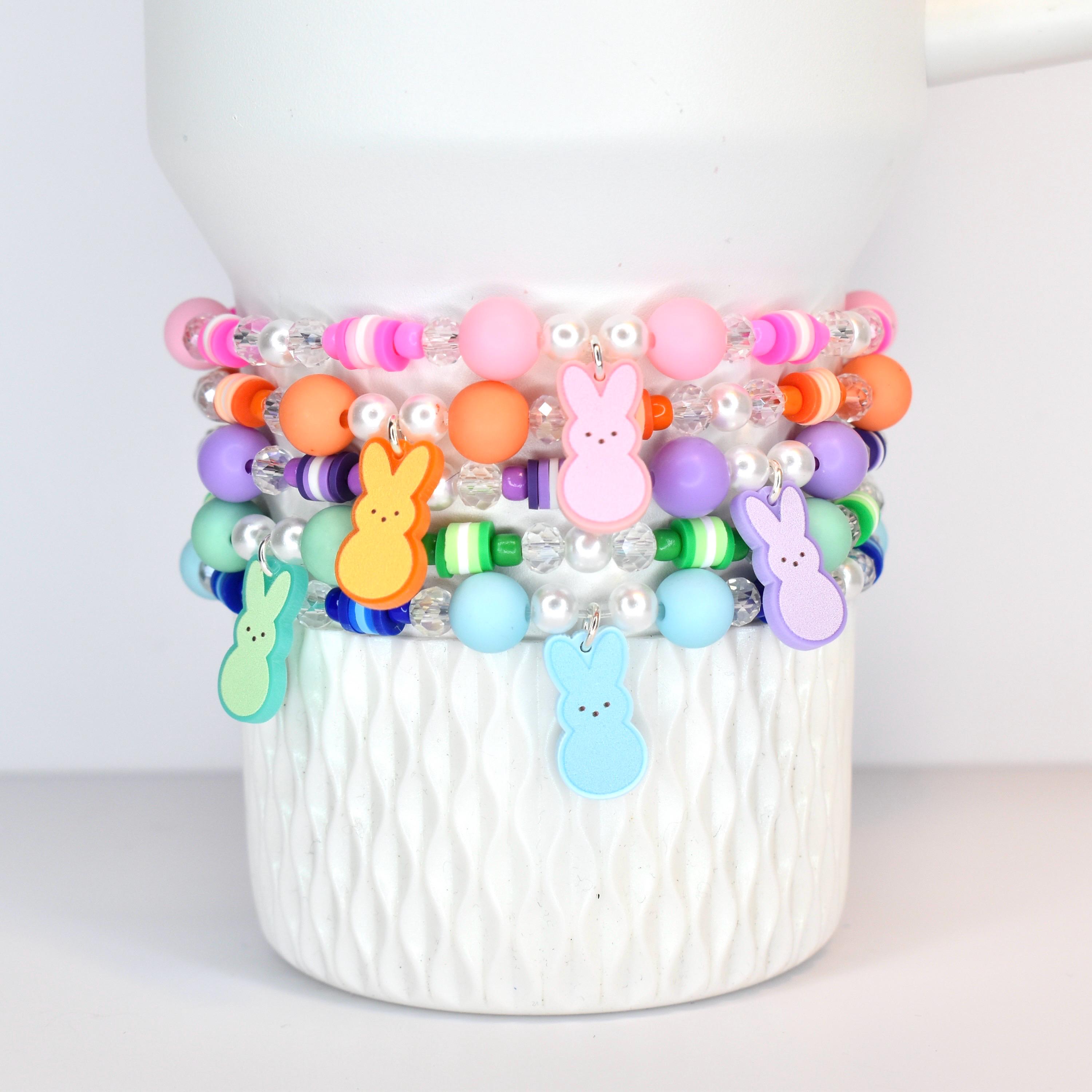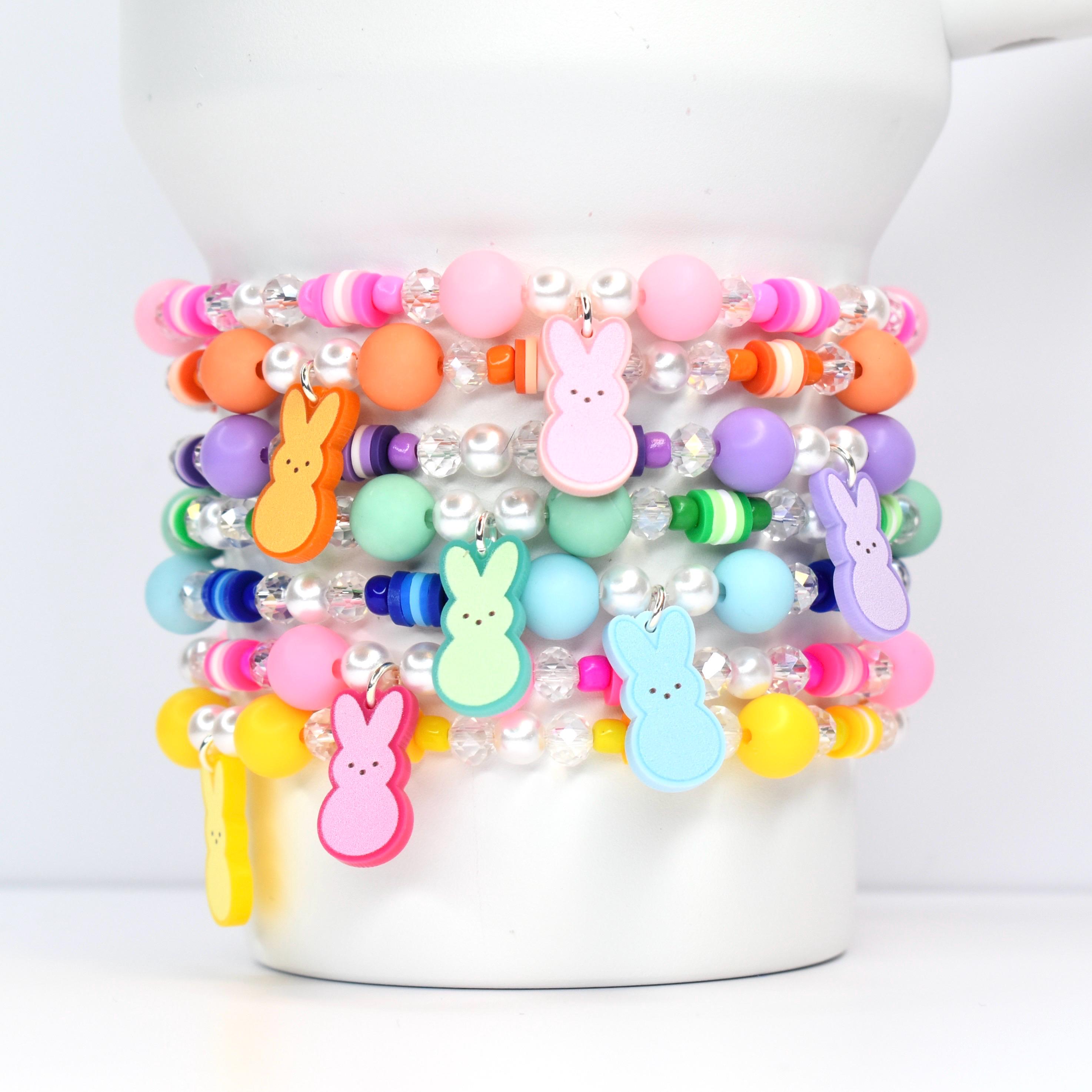 Hop into spring with these adorable PEEPS-inspired bracelets! Build your own sweet stack by mixing and matching individual colors, just like your favorite marshmallow treats. Each bracelet features a charming bunny charm in coordinating colors, paired with pastel beads that capture the joy of a beautiful spring morning.
