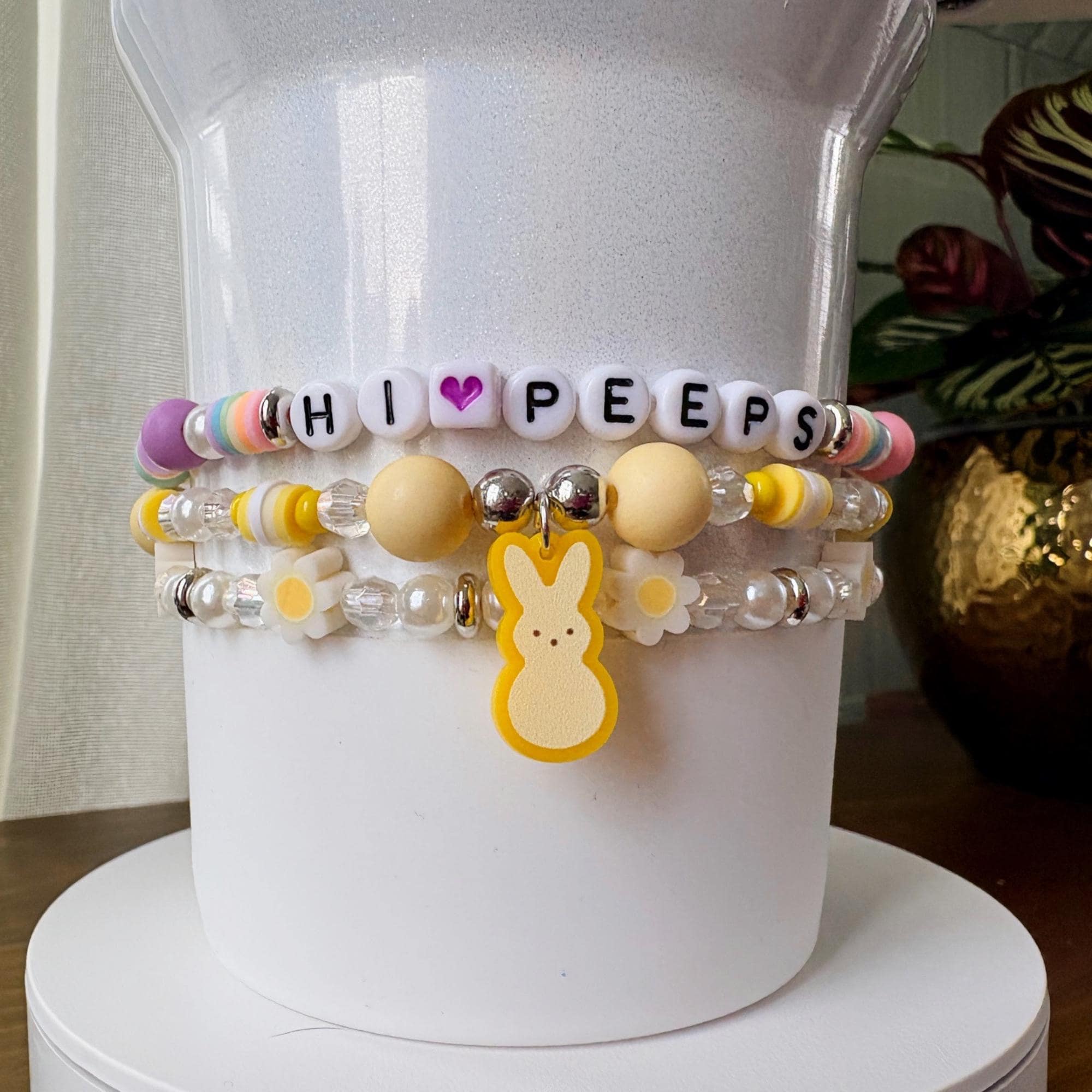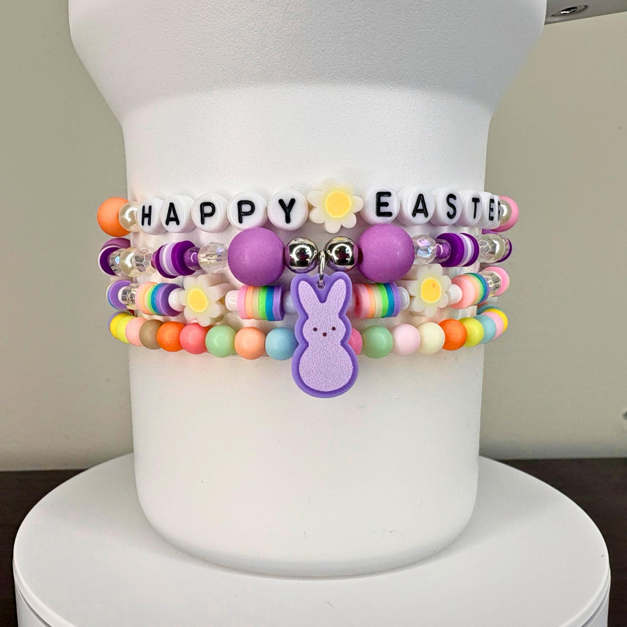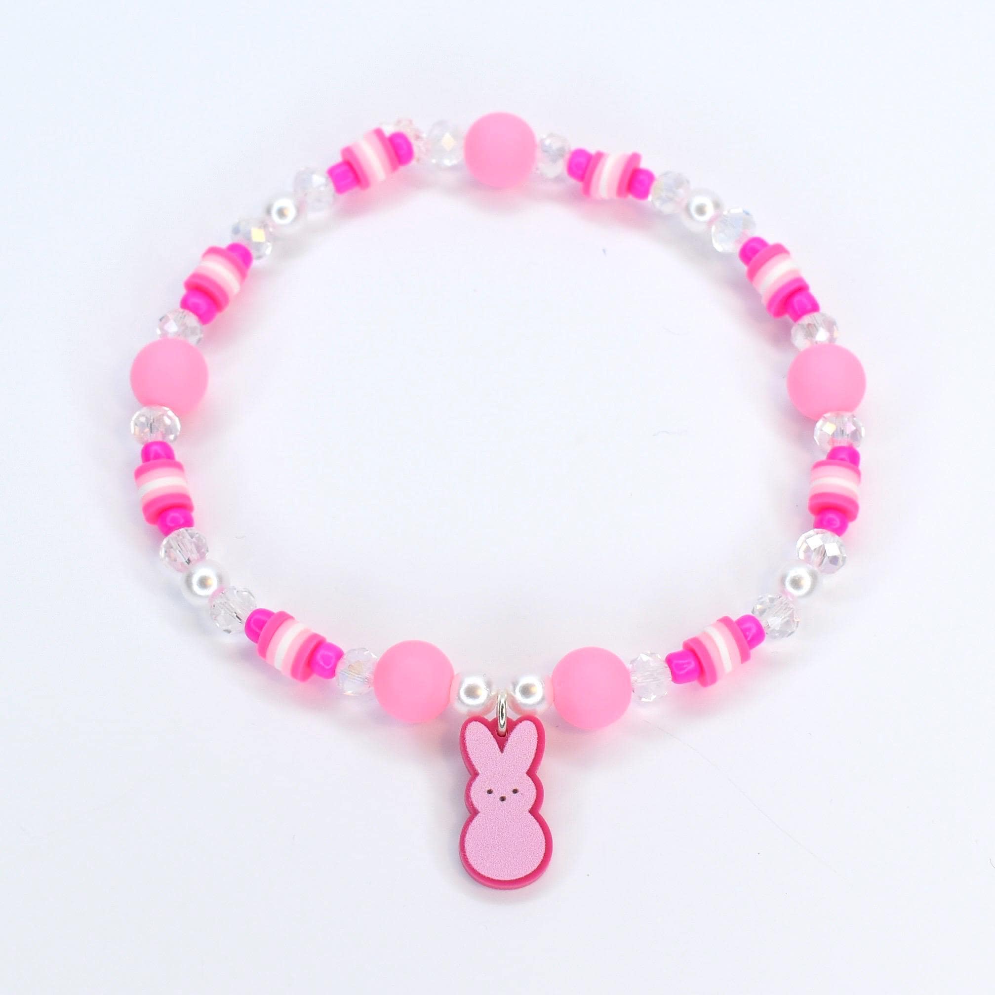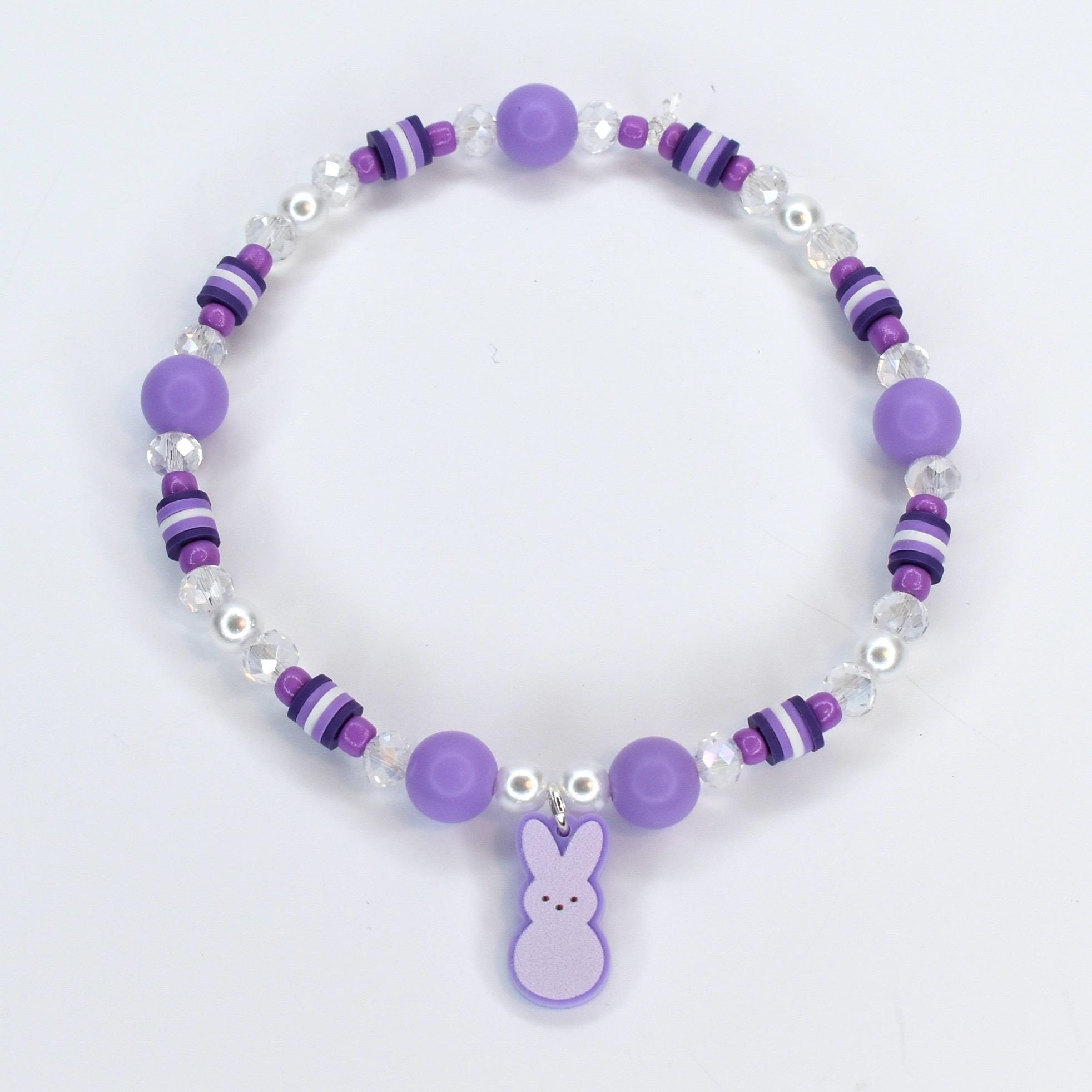 Hop into spring with these adorable PEEPS-inspired bracelets! Build your own sweet stack by mixing and matching individual colors, just like your favorite marshmallow treats. Each bracelet features a charming bunny charm in coordinating colors, paired with pastel beads that capture the joy of a beautiful spring morning.