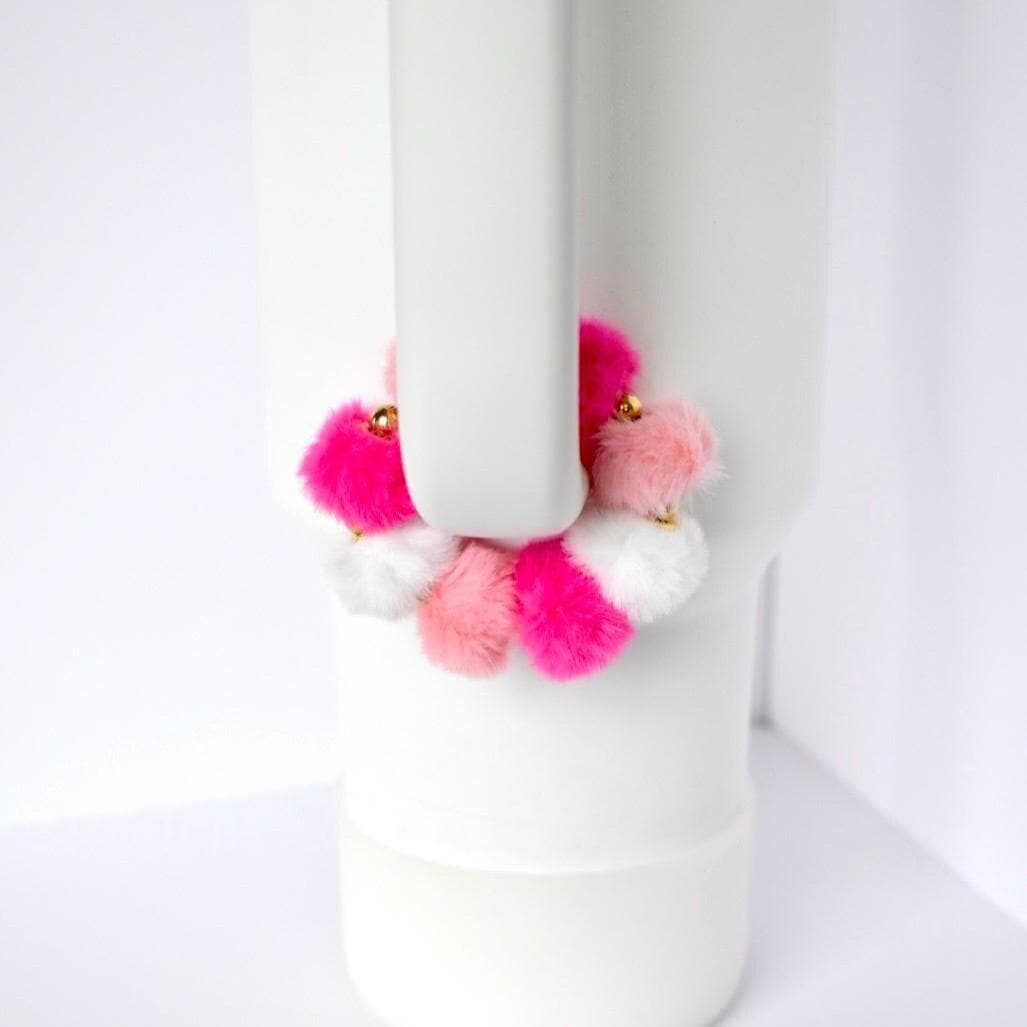 Add a pop of pink and a little fuzziness to your sips with this sparkly pink tumbler handle bracelet!