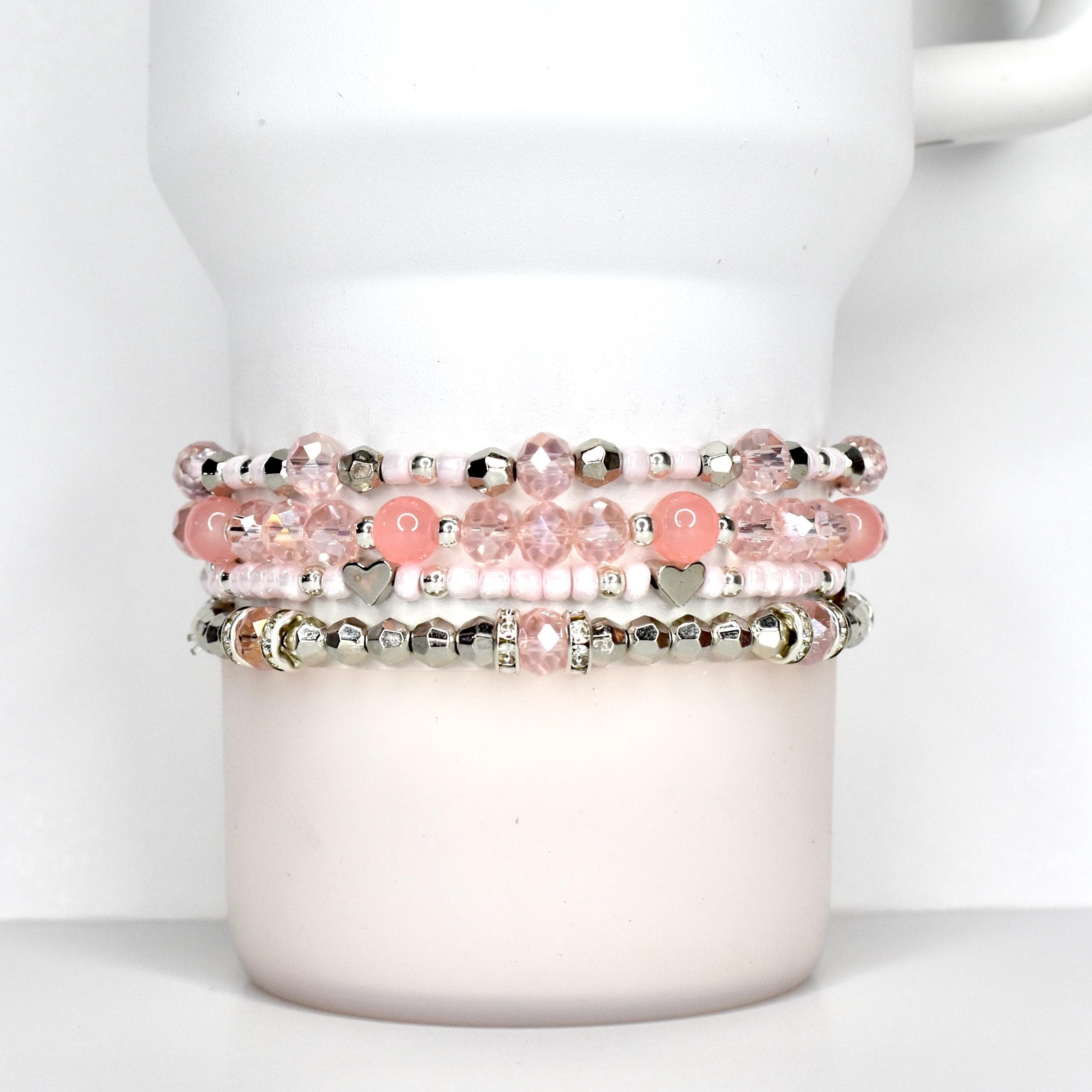 Add a sweet and stylish twist to your tumbler or your wrist with our Tea Rose Tile Beaded Bracelet Set. This four-piece set features soft coral tones, sparkling crystals, silver accents, and playful heart beads for a look that’s flirty, feminine, and full of personality.
