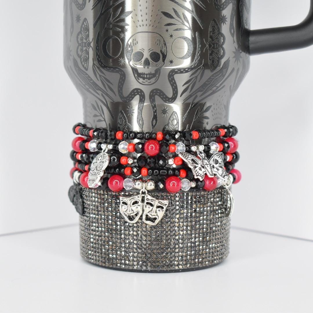 Creepy, cute, and totally unique — this Halloween-inspired 5-piece bracelet set is perfect for adding spooky vibes to your wrist or dressing up your tumbler! With eerie silver and black charms, this stack blends black, silver, and your choice of color accent beads for a hauntingly chic look.