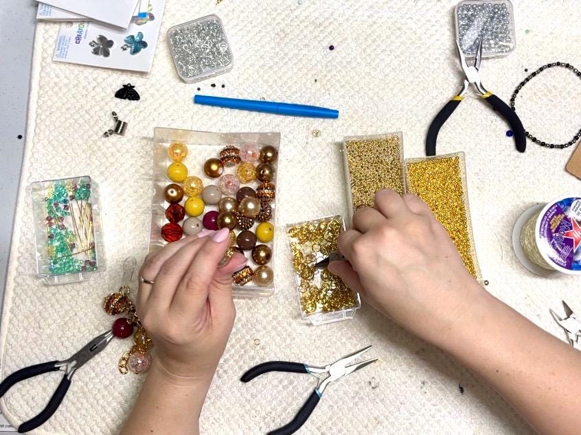 Every bead is individually hand-wired to create a custom charm, then carefully added to a gold chain using gold-toned findings. Finally, the beaded chain is secured with a premium gold lobster clasp for durability and style.