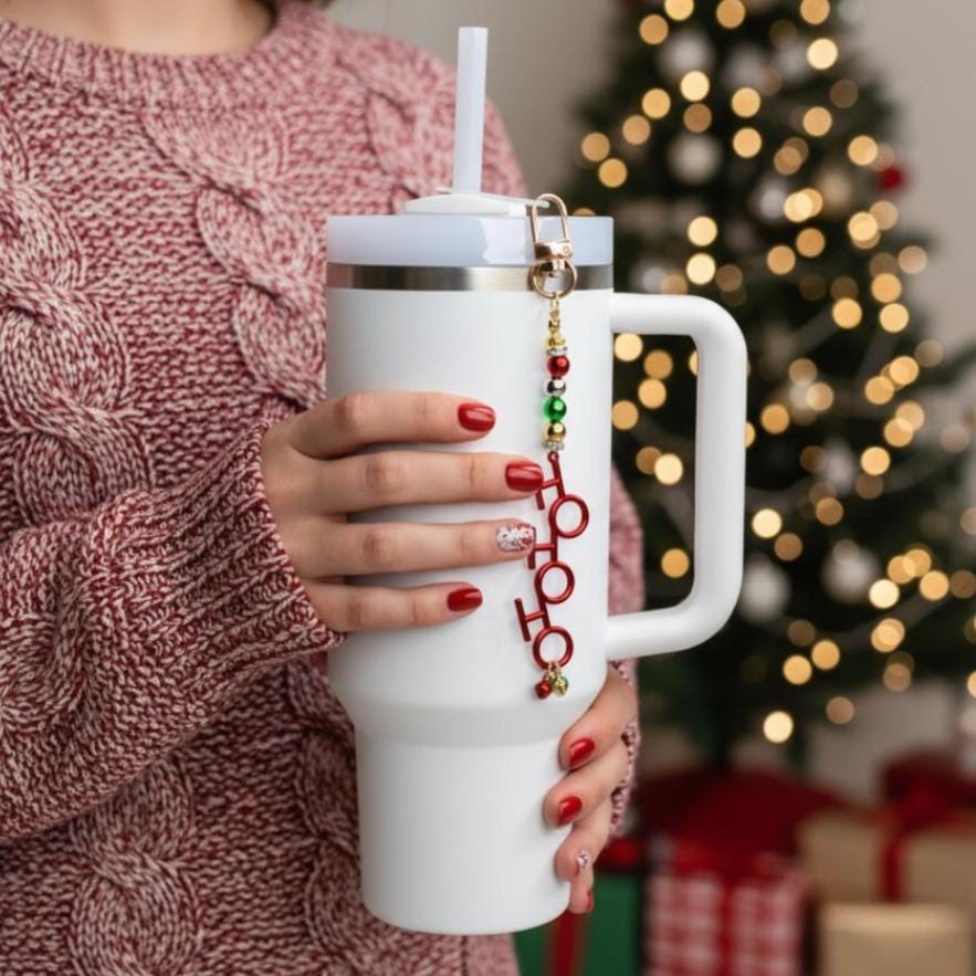 Spread holiday cheer with every sip! This festive straw charm features a fun “Ho Ho Ho” design topped with colorful Christmas beads and adorable jingle bell accents. Perfect for adding Santa’s jolly spirit to your tumbler!