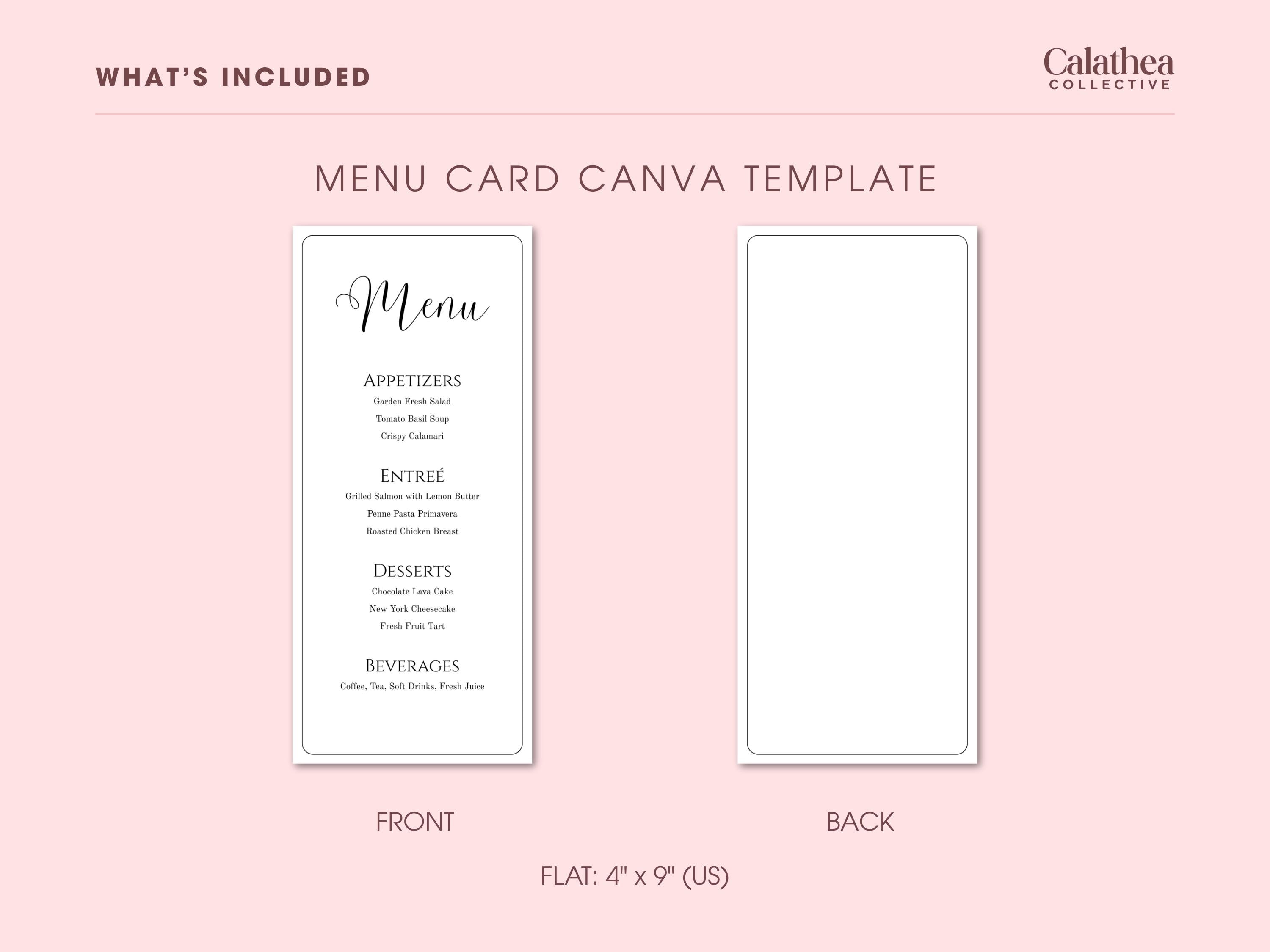 • Standard menu card size, 4" x 9" (dimensions optimized for printing)