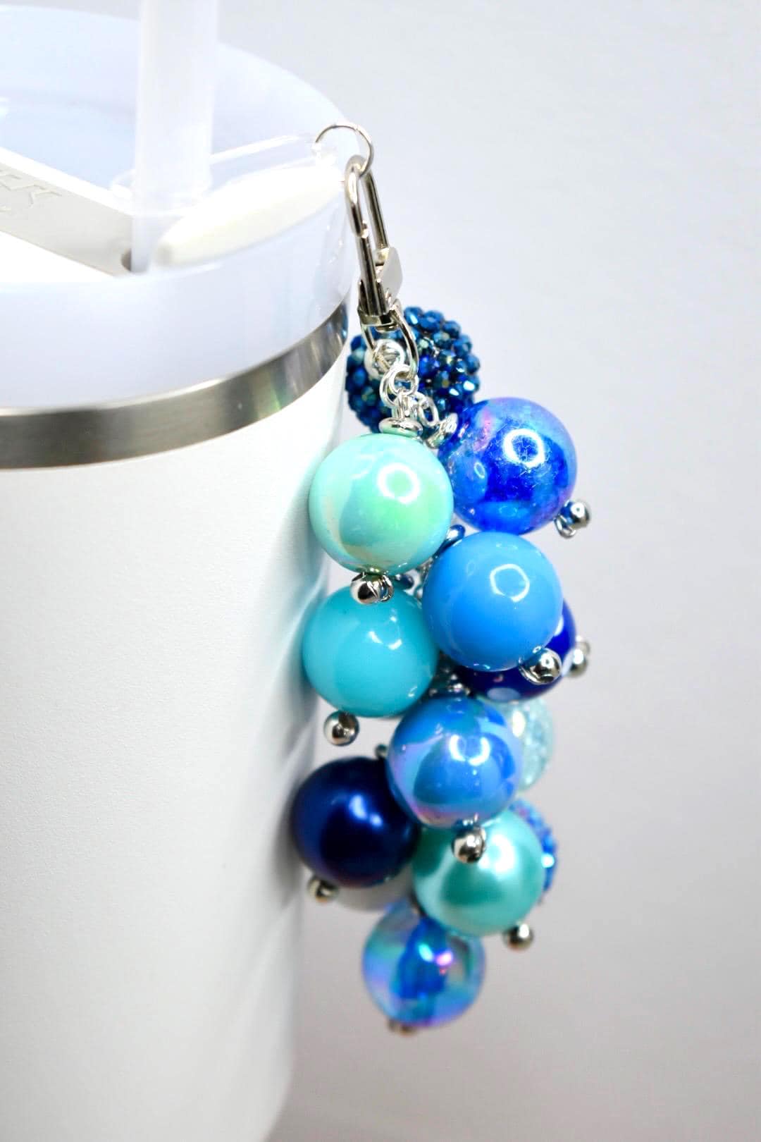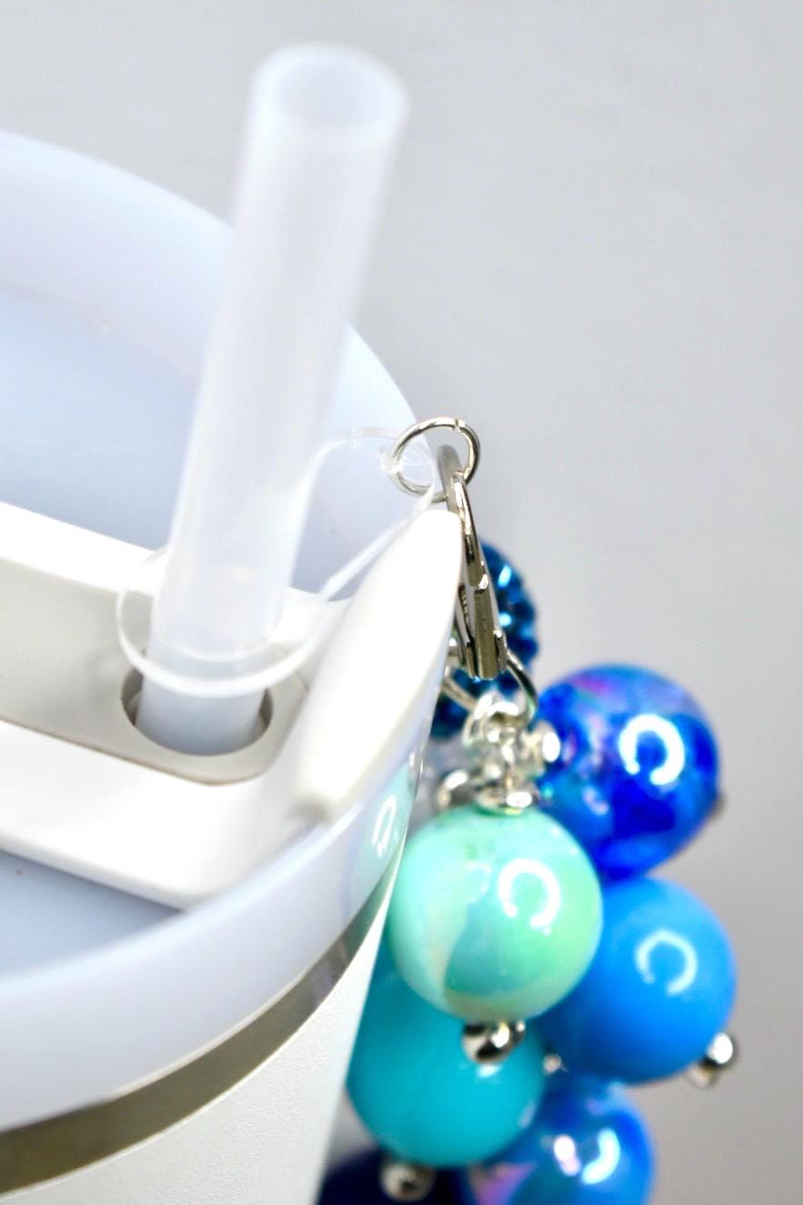 Add a pop of sparkle to your daily hydration with this stunning beaded straw charm! This gorgeous accessory features a beautiful cluster of blue and turquoise beads in various patterns and finishes, including dazzling blue rhinestone pave balls that catch the light beautifully.
