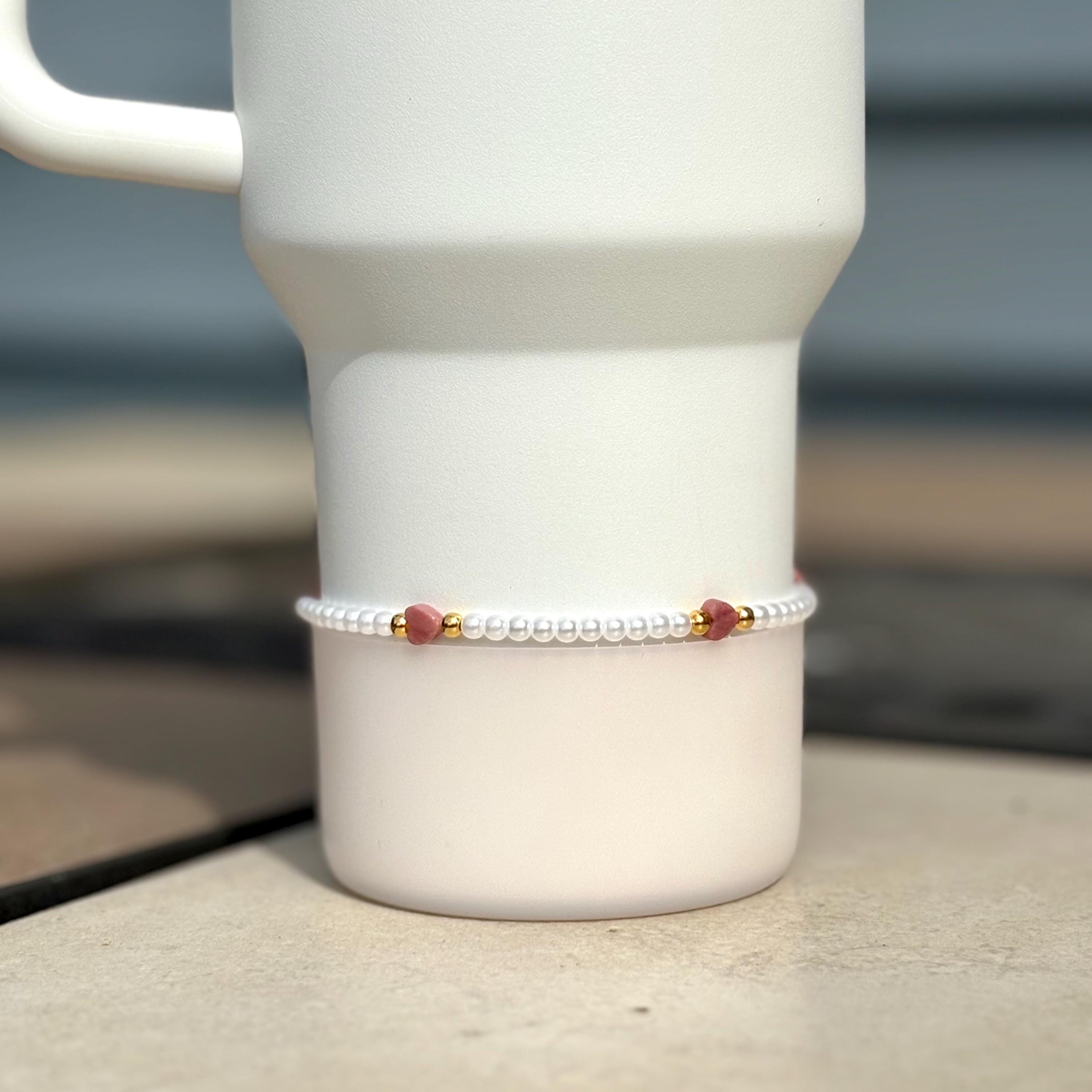 Sometimes simple is best! This elegant single bracelet features soft pink glass beads paired with dainty gold accents for a look that’s delicate, feminine, and effortlessly chic.