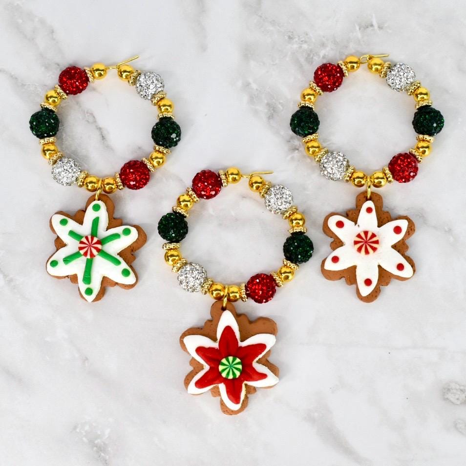 Choose from three delightful gingerbread cookie designs, each with its own unique icing pattern! The classic Christmas colors of red, green, and white combined with gleaming gold beads create a festive look that's perfect for the holiday season.