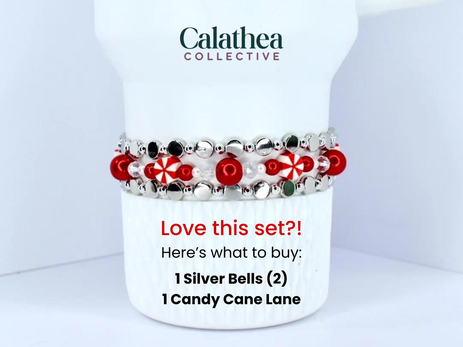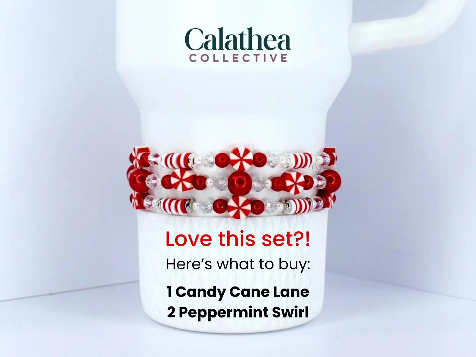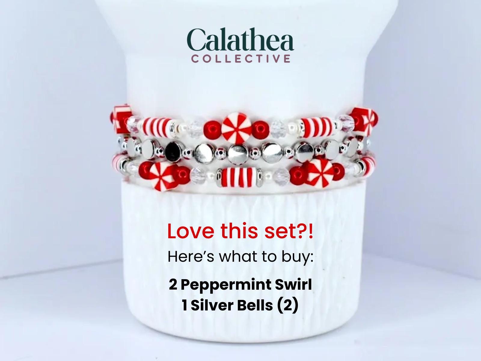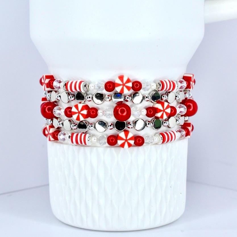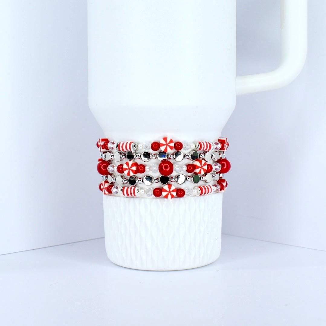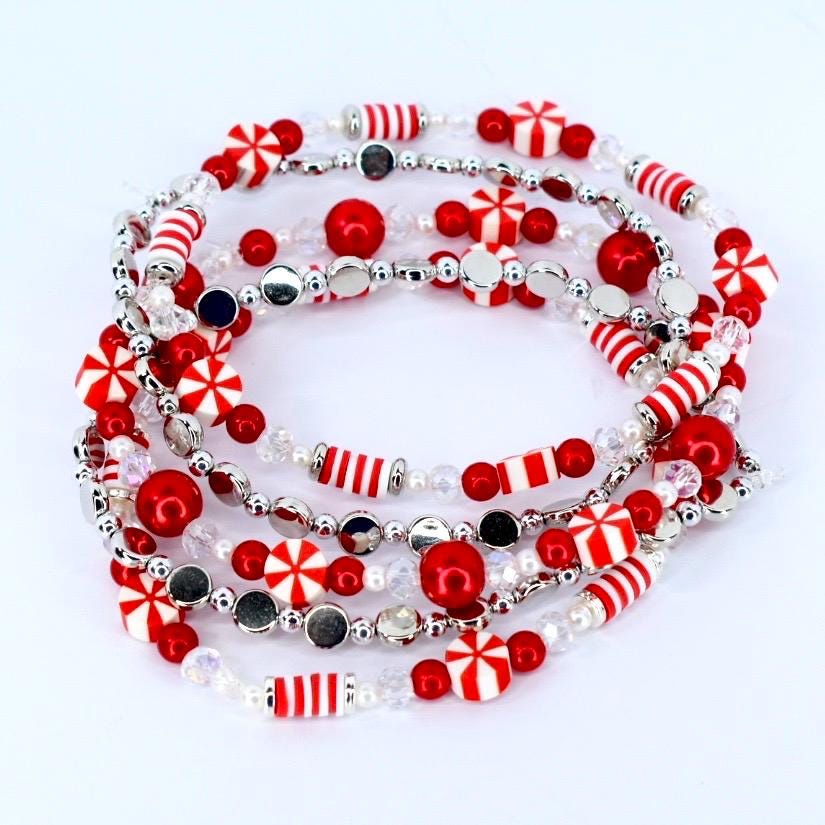 This festive 5-piece bracelet collection captures all the charm of peppermint candy with its cheerful red and white color palette. Featuring adorable peppermint swirl beads, striped candy cane patterns, and sparkling silver accents for a look that's pure Christmas magic!