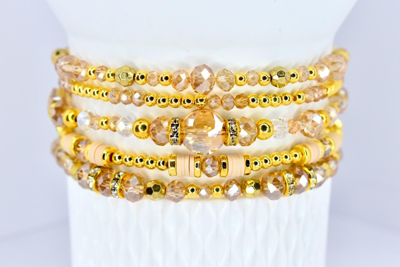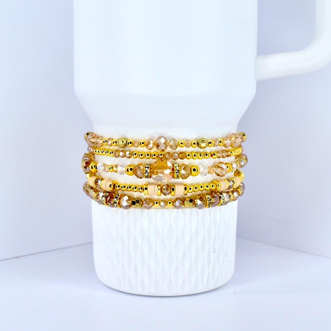 Pop the champagne! These sparkling bracelets are sold individually, allowing you to create your own celebratory stack. Each bracelet captures the effervescence and elegance of your favorite bubbly with shimmering champagne crystals and golden accents.