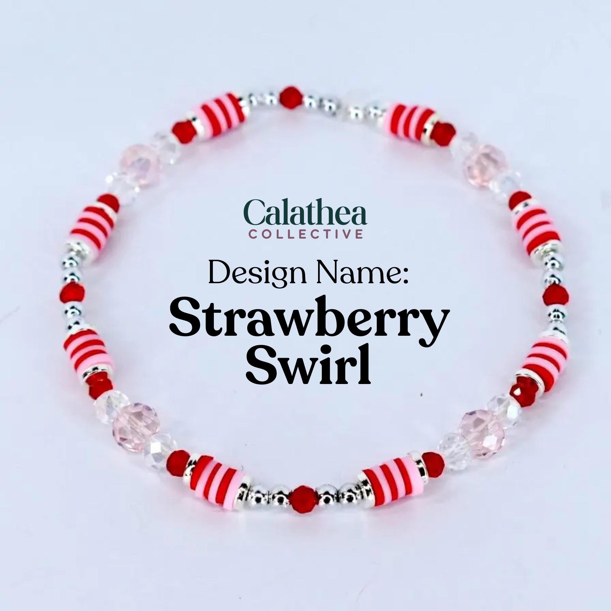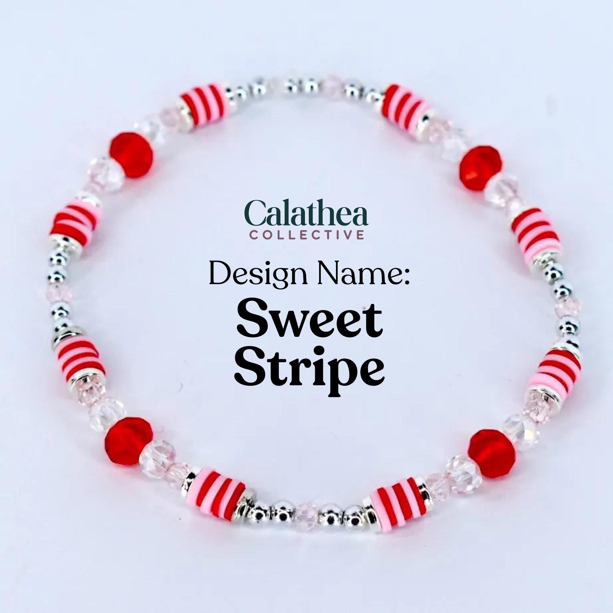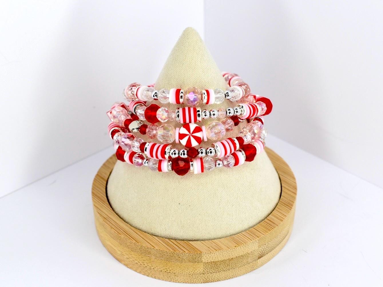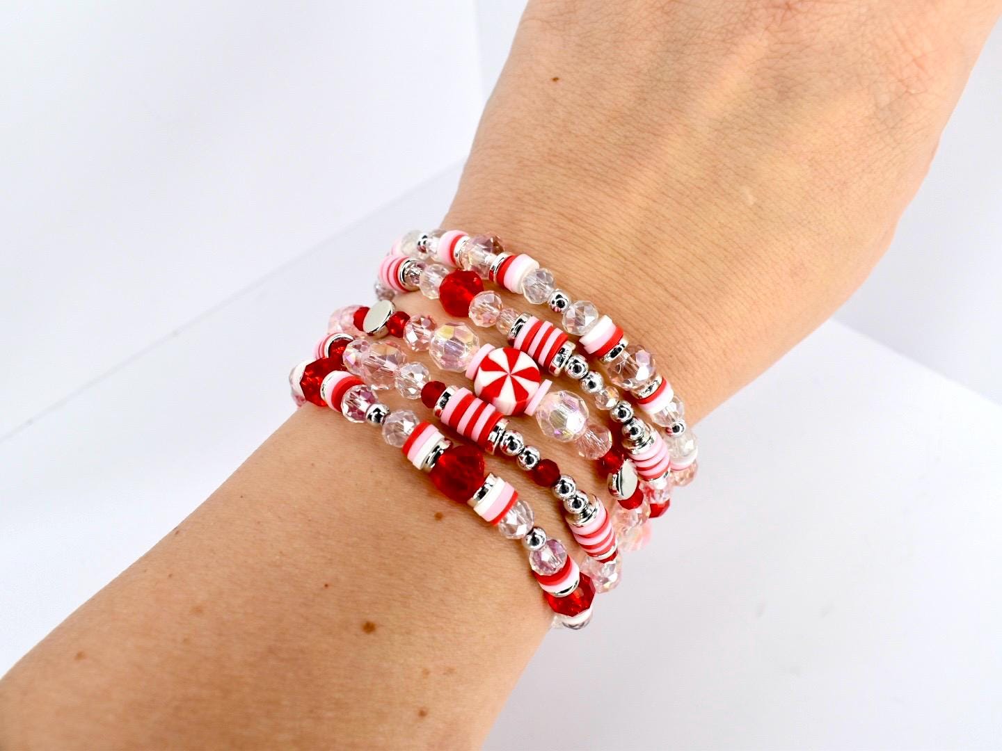 • What you'll get: Candy-inspired elastic stretch beaded bracelet(s) with strawberry twist and peppermint stripe pattern
