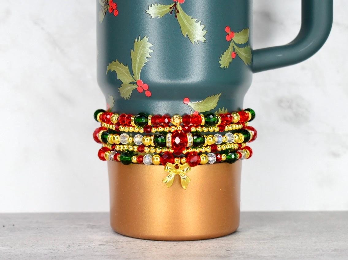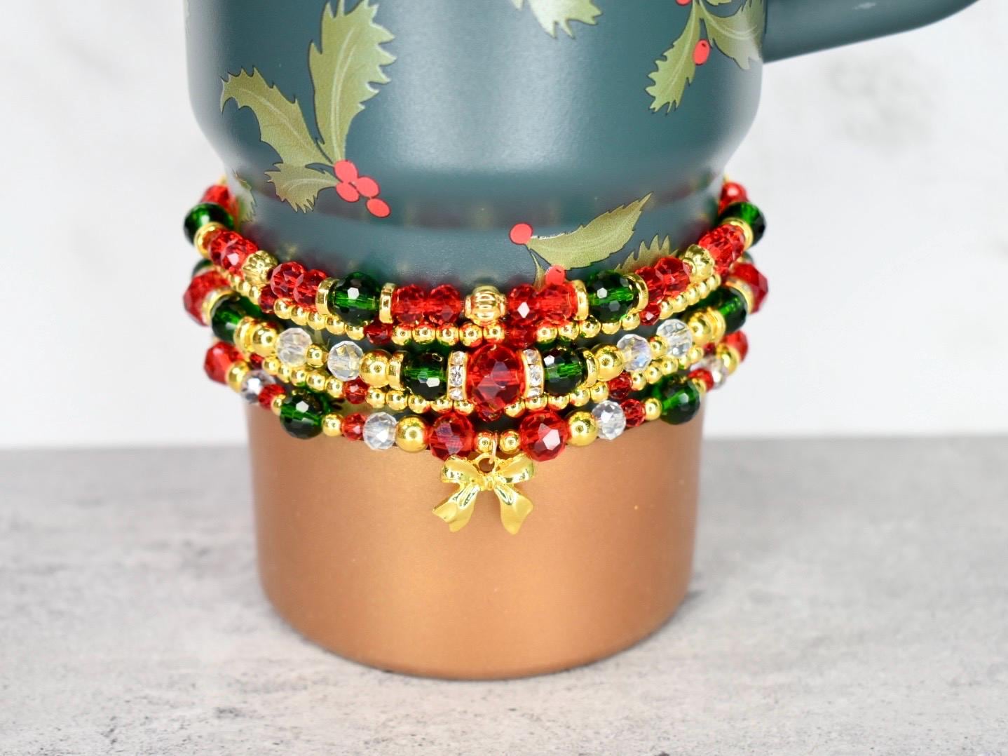 Wear it as a bracelet for a layered, modern jewelry style—or wrap it around your favorite holiday tumbler for a coordinated seasonal vibe. Bright, clean, and youthful, this versatile accessory makes every sip (and every outfit) feel a little more festive.