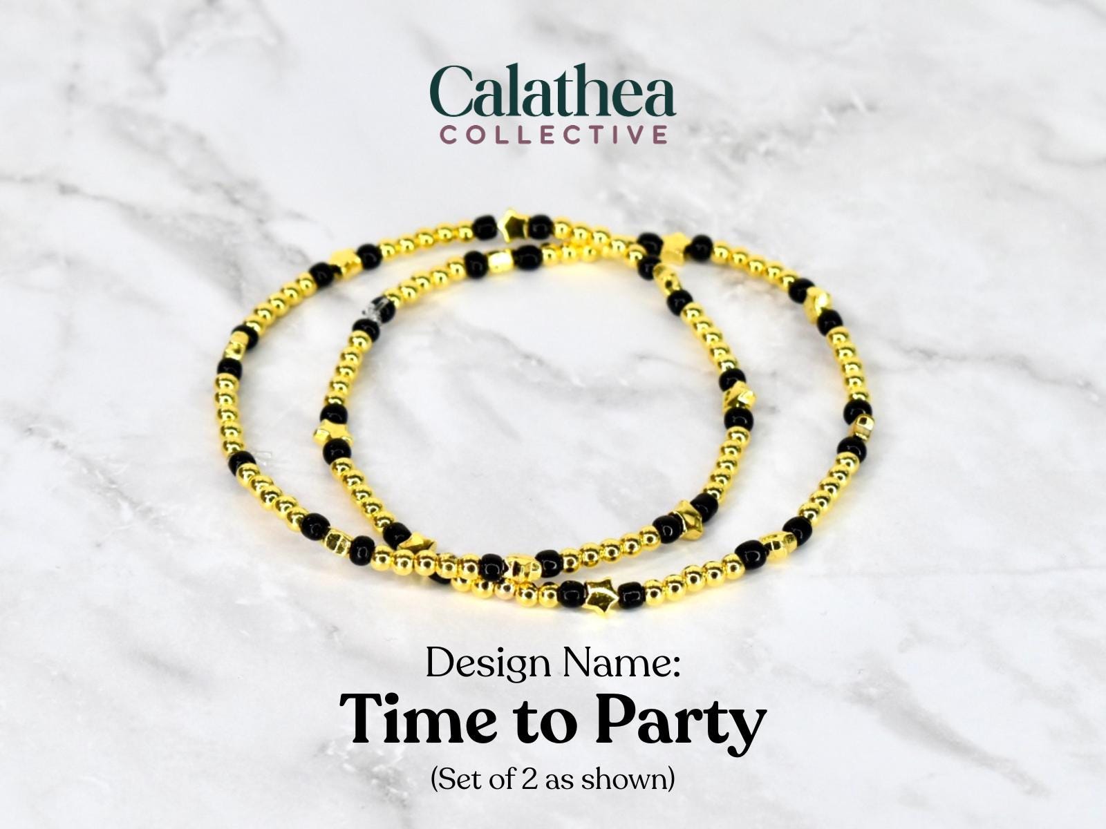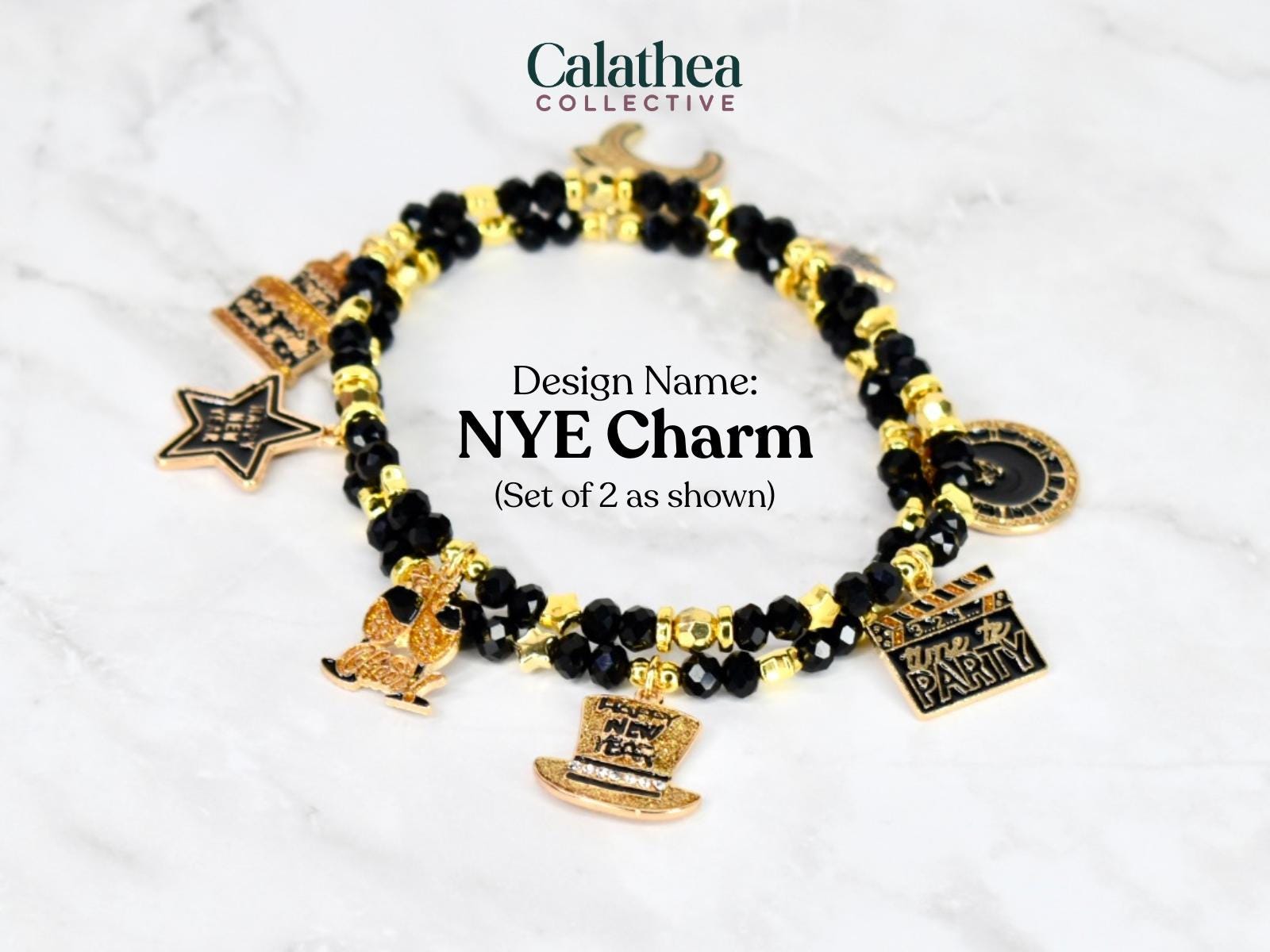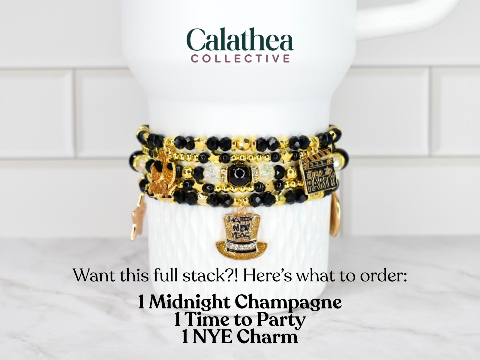 Celebrate the countdown in style with this festive beaded stack, designed to dazzle on your wrist or your favorite tumbler! Whether you're accessorizing your party outfit or adding flair to your drinkware, this versatile stack brings the glam.