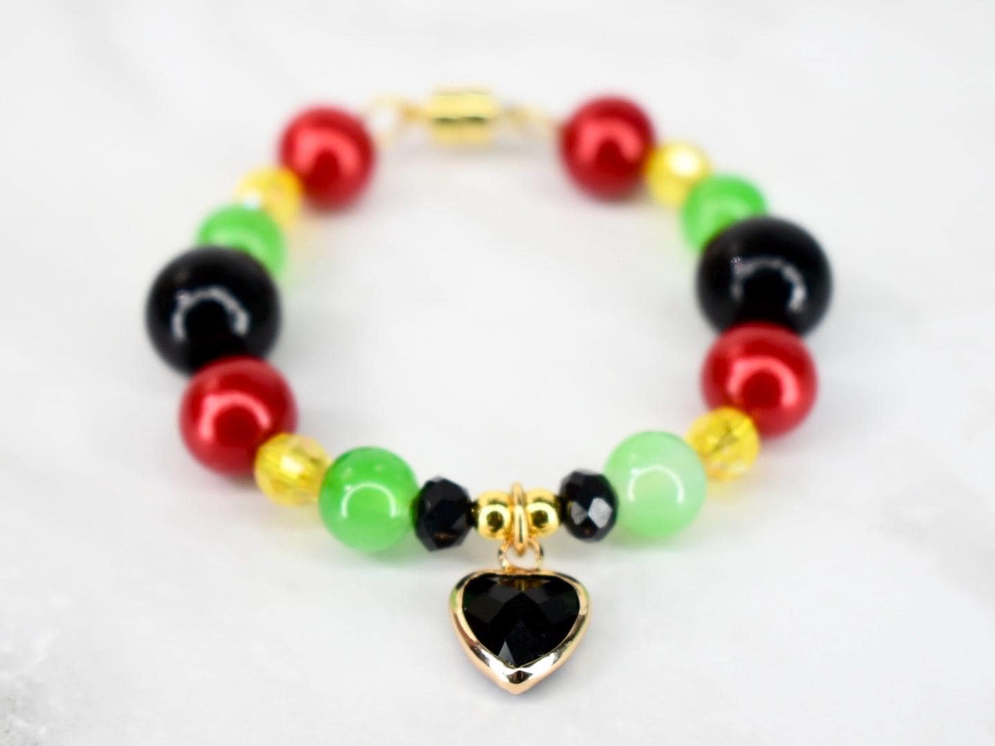 The matching bracelet set is available here: https://www.etsy.com/listing/4404866958/black-history-celebration-bracelets-red