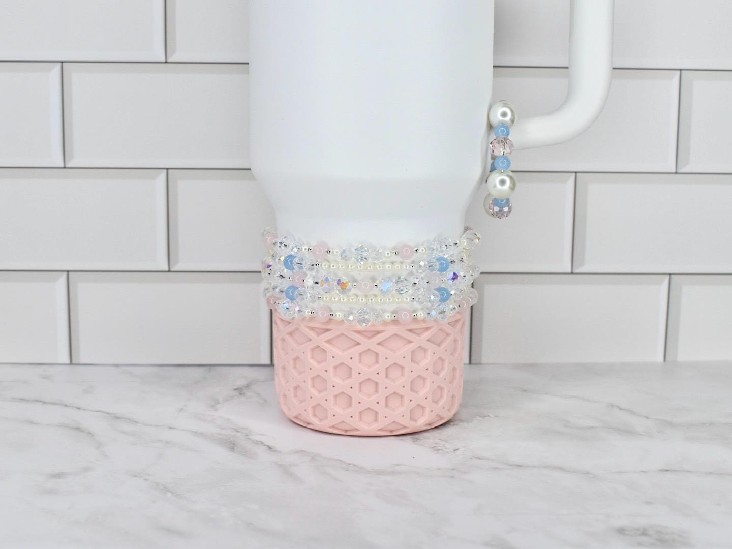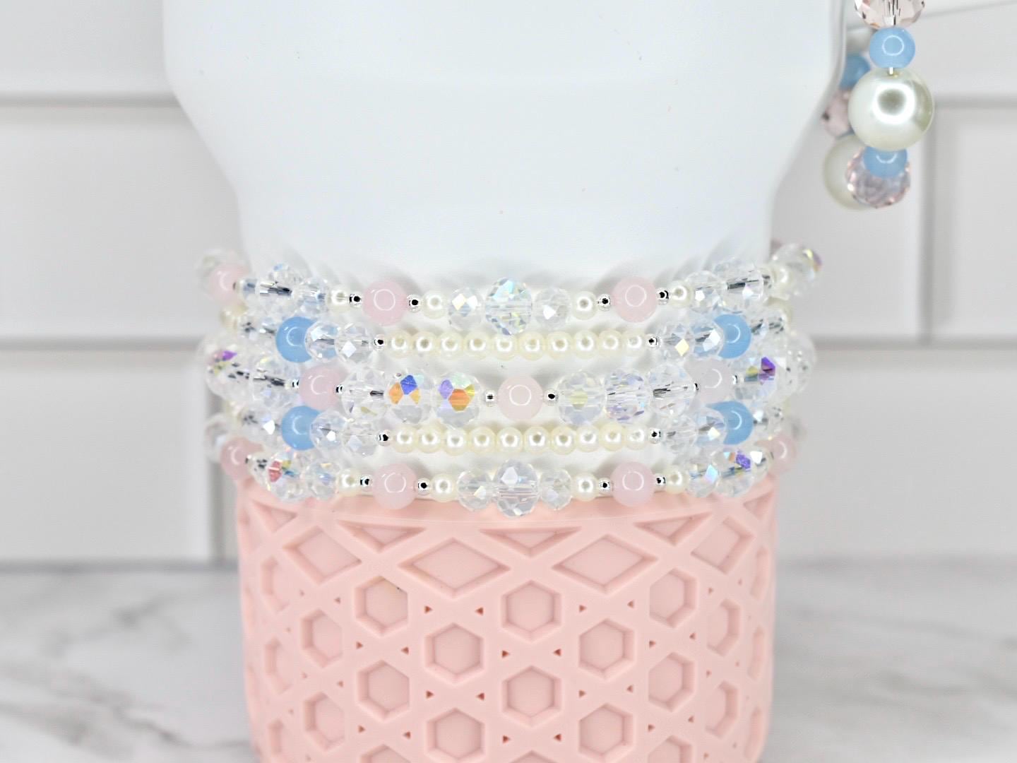 Calathea Collective’s tumbler bracelets are designed to fit the base of cup holder-friendly tumblers with a 3 inch base. If you're unsure about sizing or want to request a custom size, just send me a message—I’m happy to help!