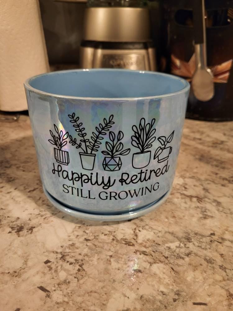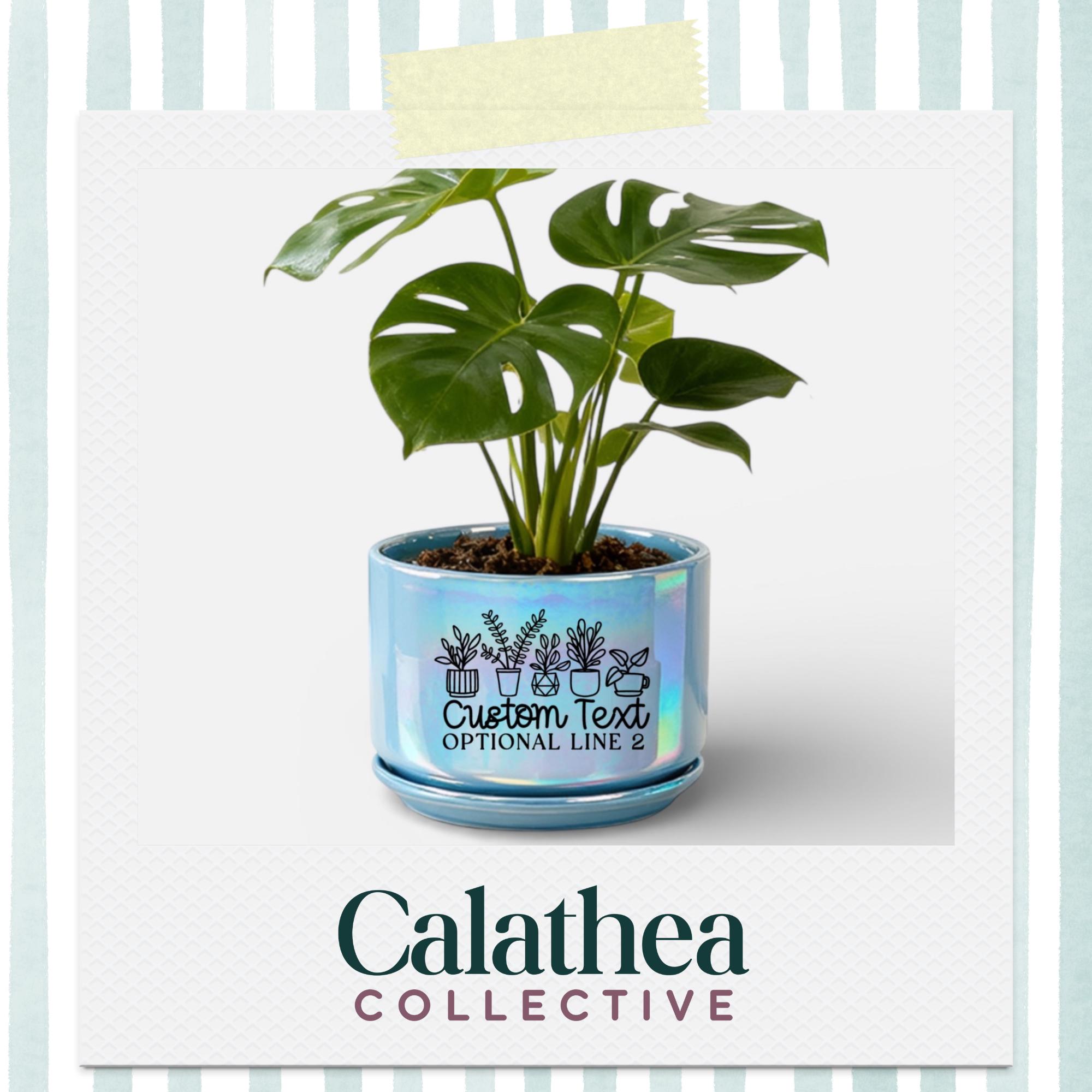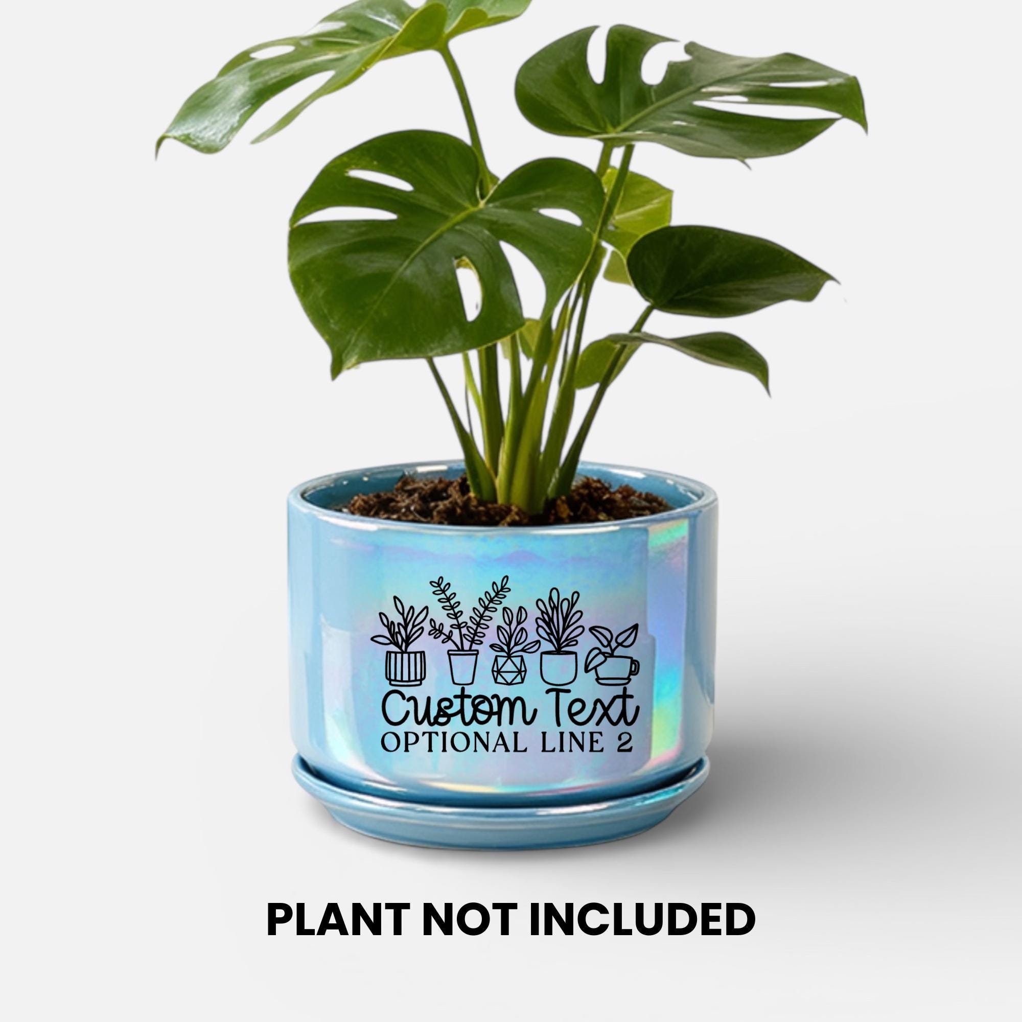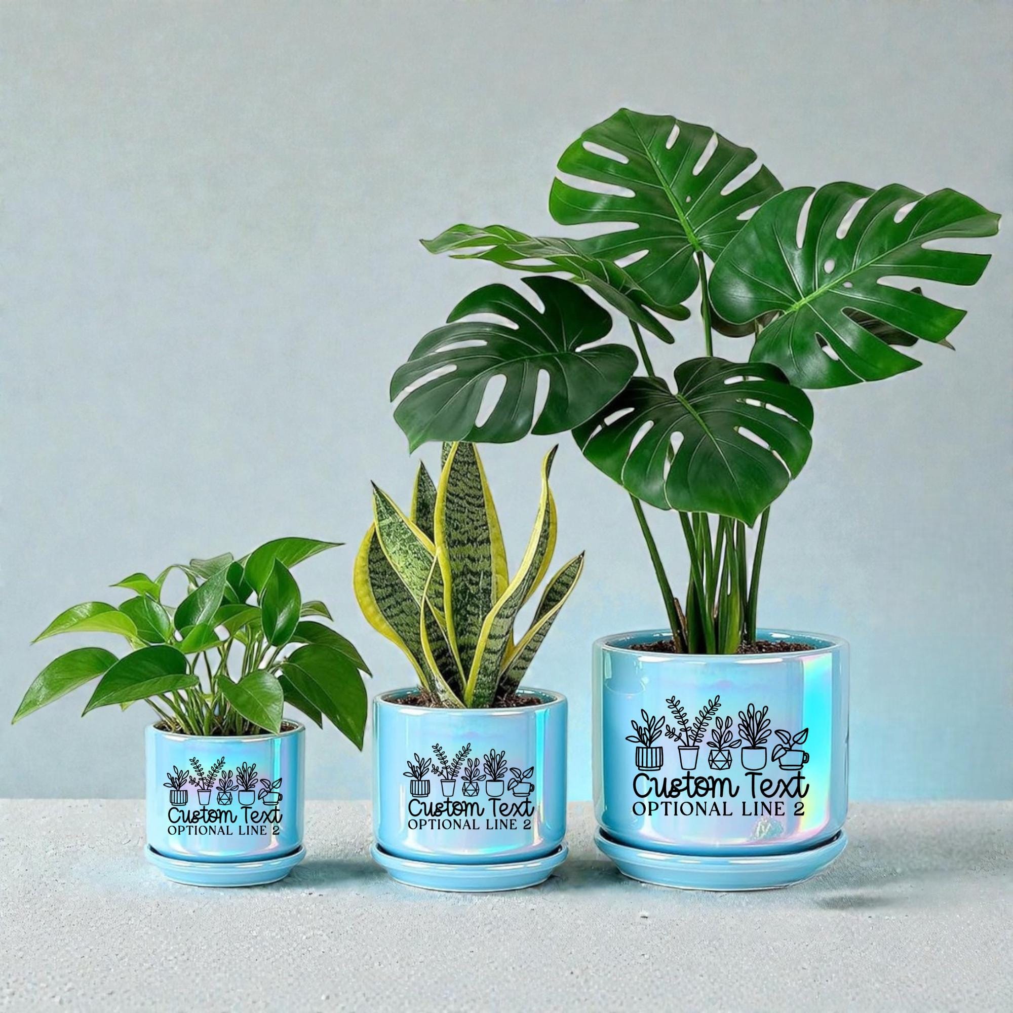 Give your plants a home as unique as they are! This stunning iridescent blue ceramic planter features a dreamy rainbow shimmer finish and your custom text, making it the perfect personalized gift for any plant parent or a special treat for your own green sanctuary.