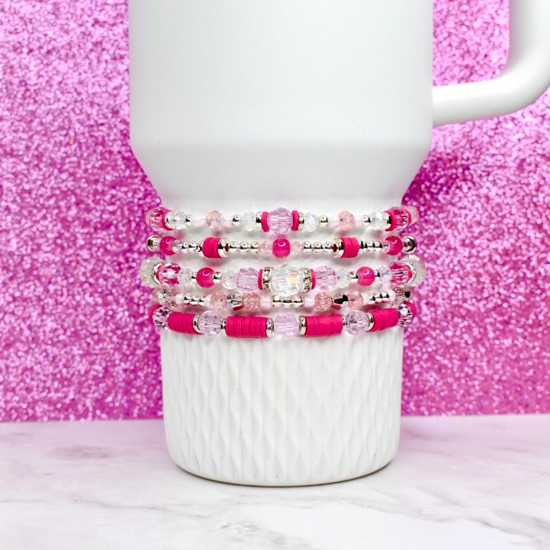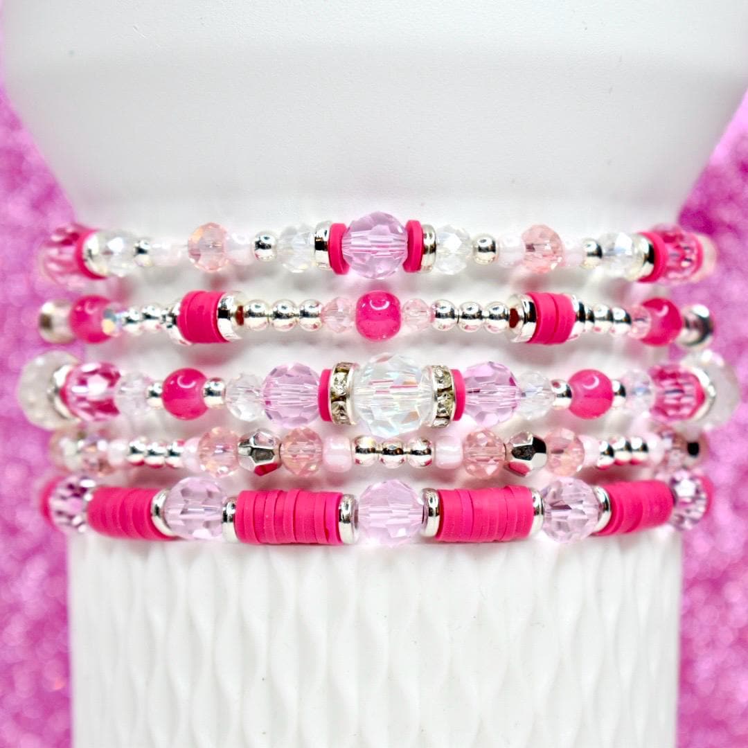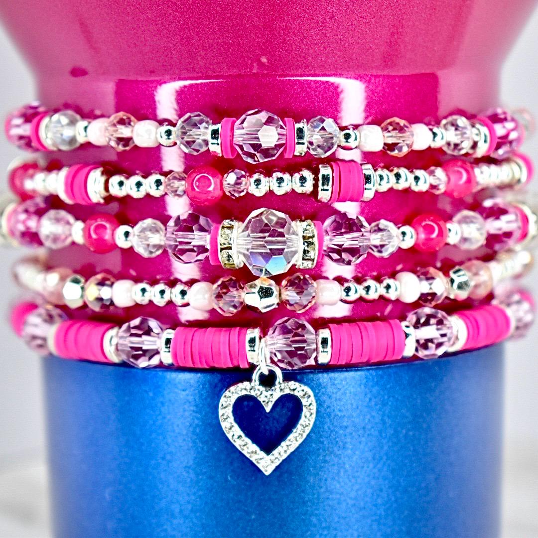 Embrace the sweetness of love with this elegant Valentine’s bracelet stack! This sophisticated 5-piece collection features beautiful pink crystals, raspberry pink heishi beads, and silver accents that create a romantic yet refined look perfect for Valentine’s Day and beyond.