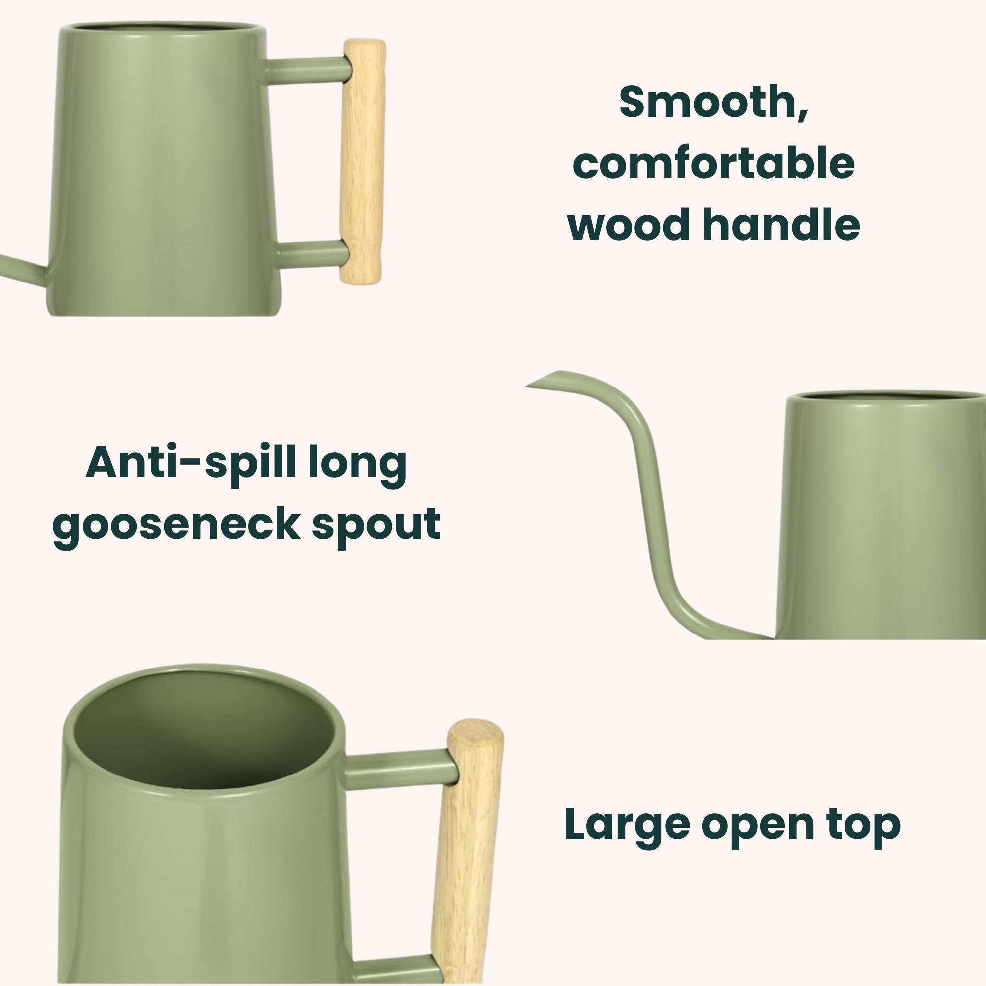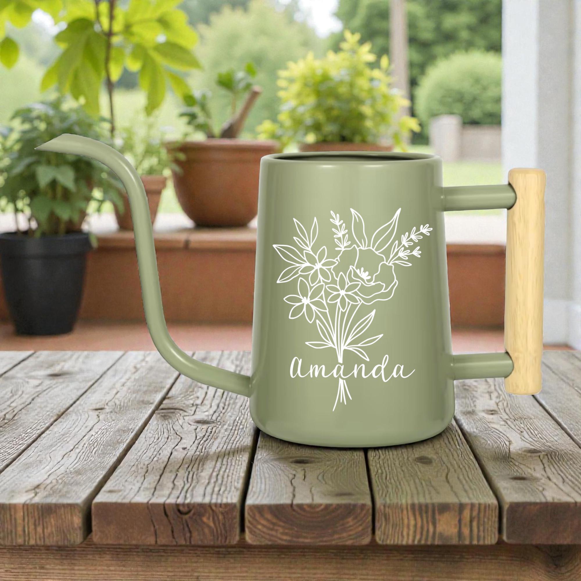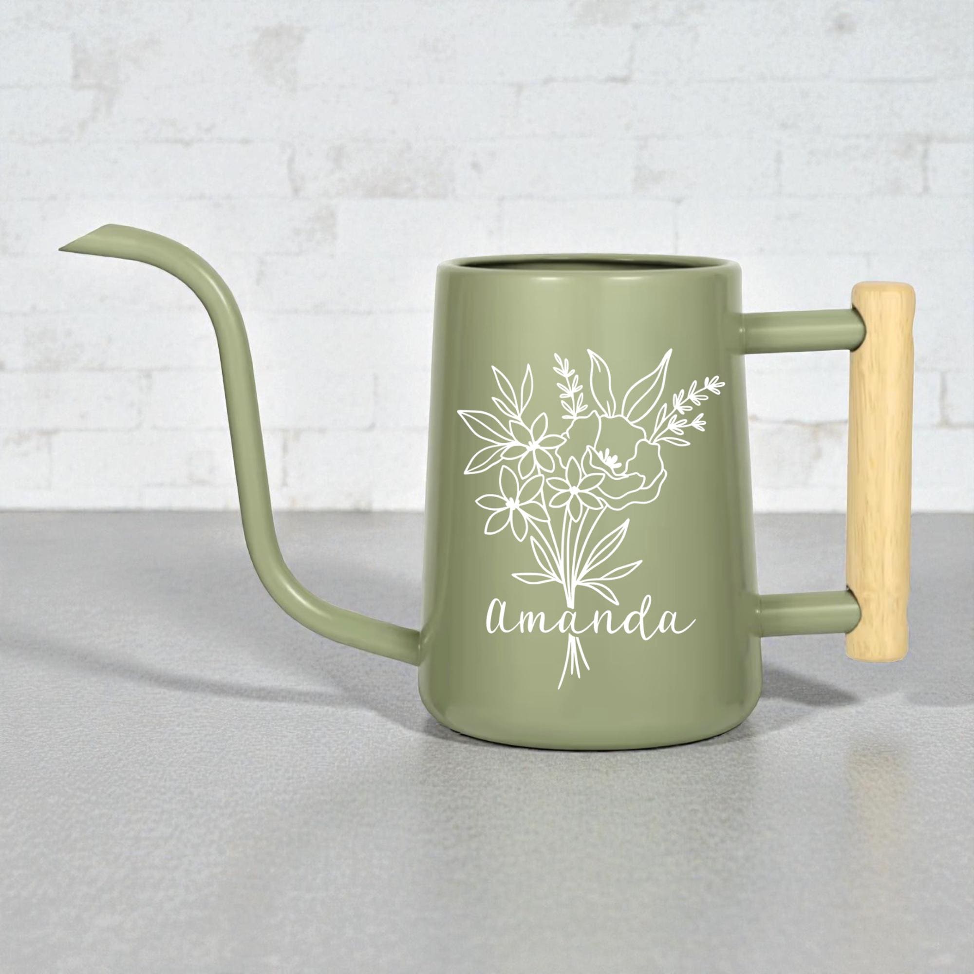 Perfect for watering houseplants, patio blooms, or kitchen herbs, this customizable sage green watering can also makes a meaningful gift for Mother's Day, birthdays, or any plant-loving person.