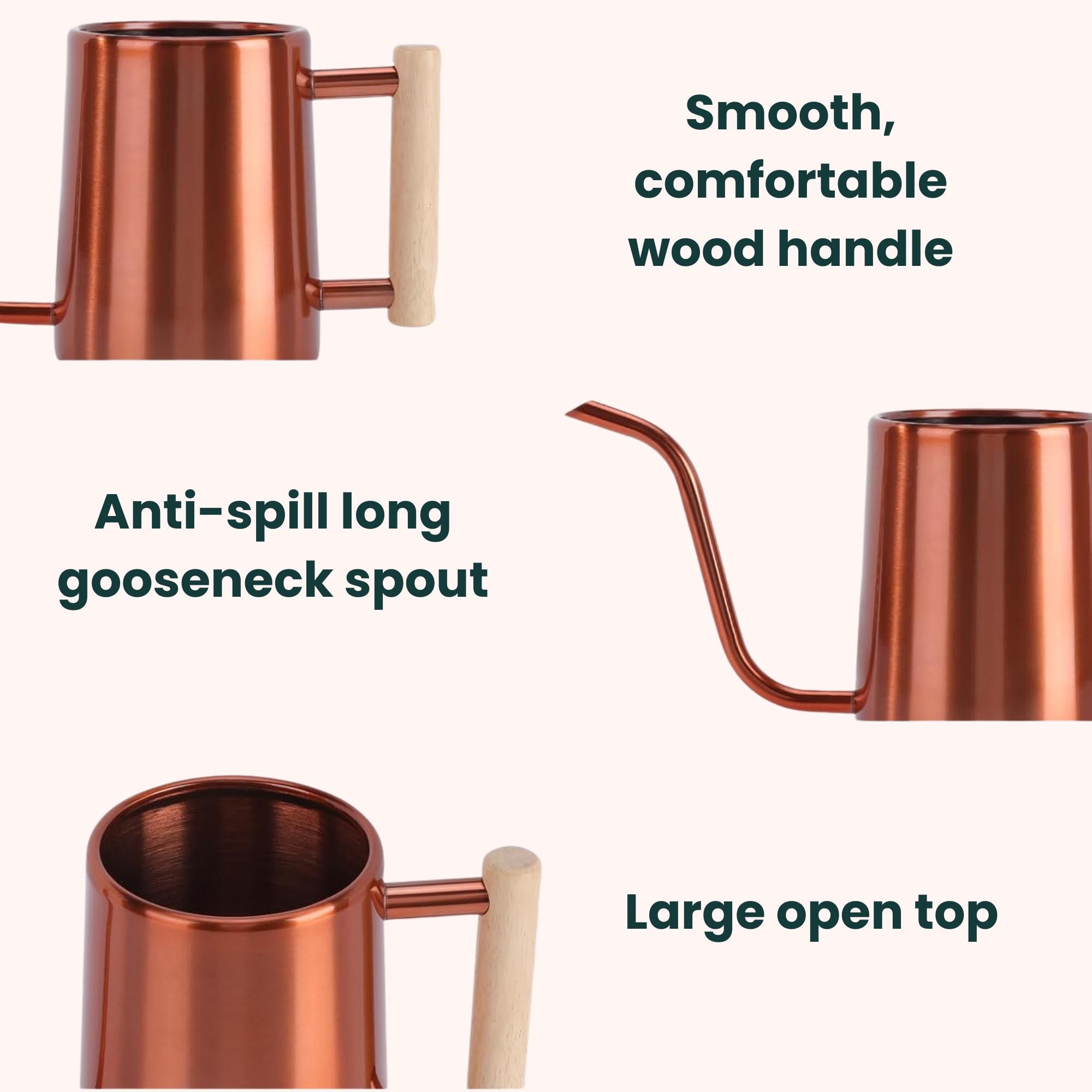 Perfect for watering houseplants, patio blooms, or kitchen herbs, this customizable copper watering can also makes a meaningful gift for Mother's Day, birthdays, or any plant-loving person.