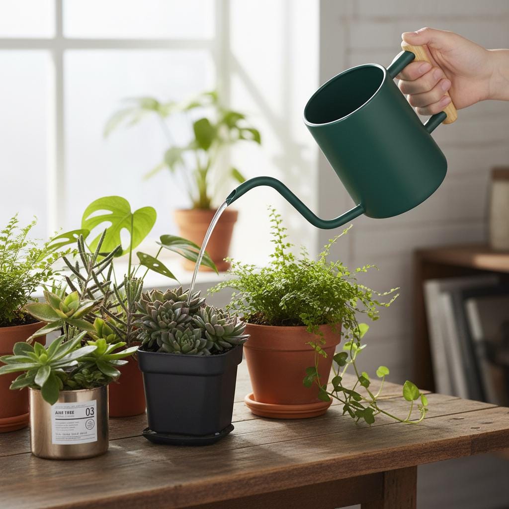 Perfect for watering houseplants, patio blooms, or kitchen herbs, this customizable emerald green watering can also makes a meaningful gift for Mother's Day, birthdays, or any plant-loving person.