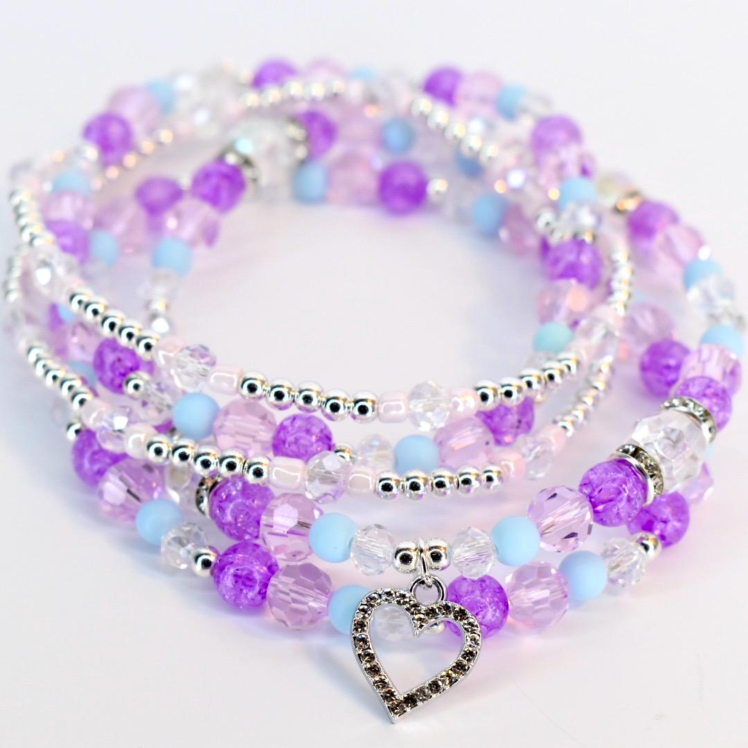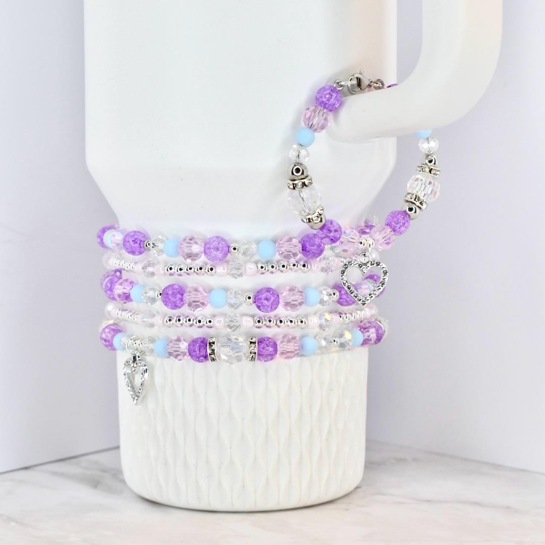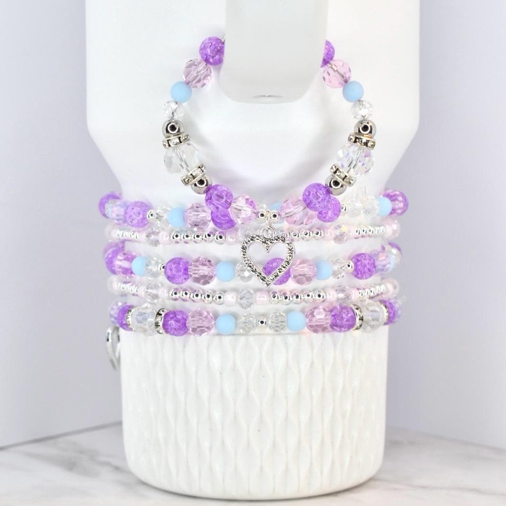 Celebrate love in lovely lavender! This romantic 5-piece Valentine’s collection features dreamy purple and pink tones with soft blue accents, sparkling crystals, and a beautiful rhinestone heart charm that captures the sweet essence of Valentine’s Day.
