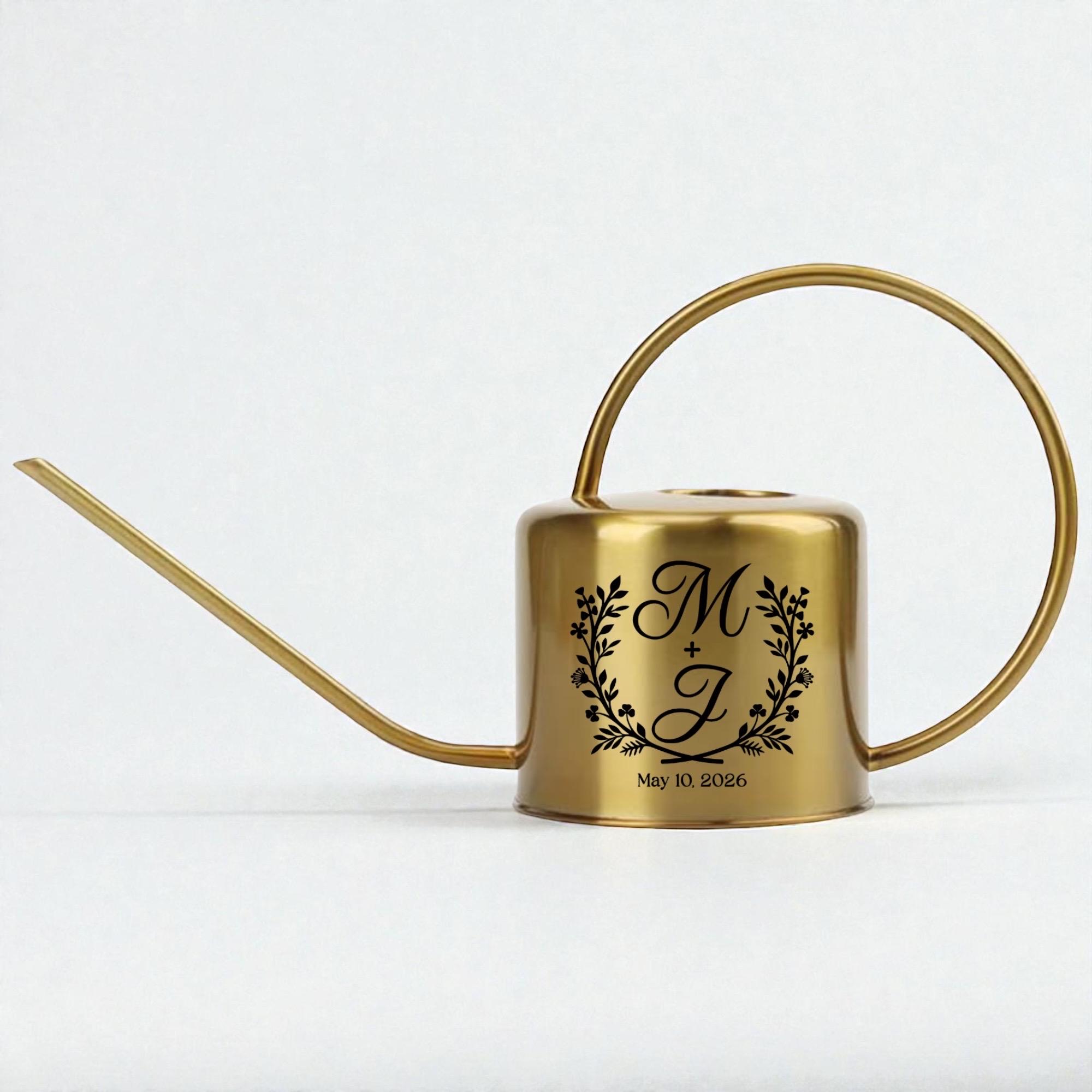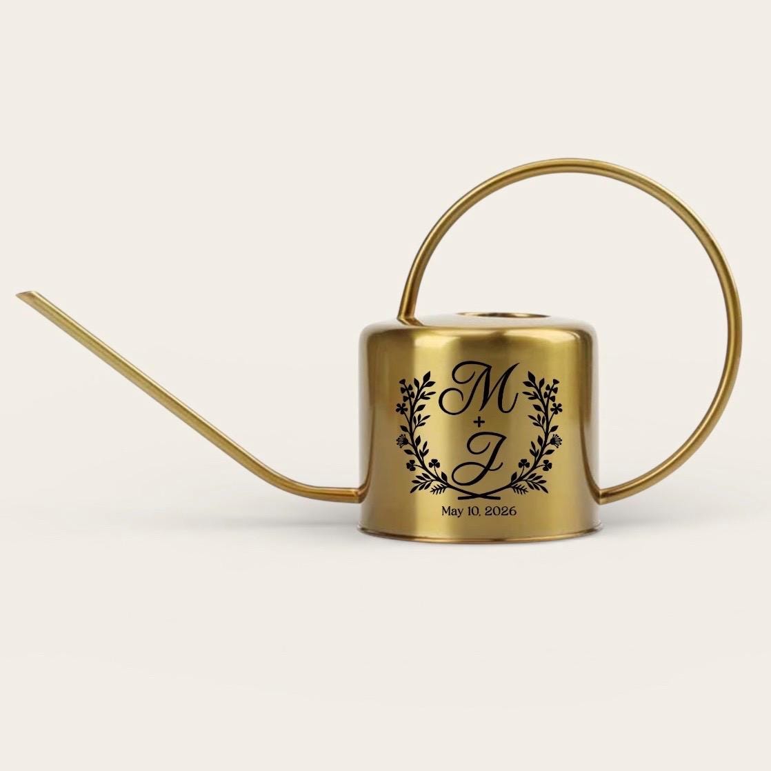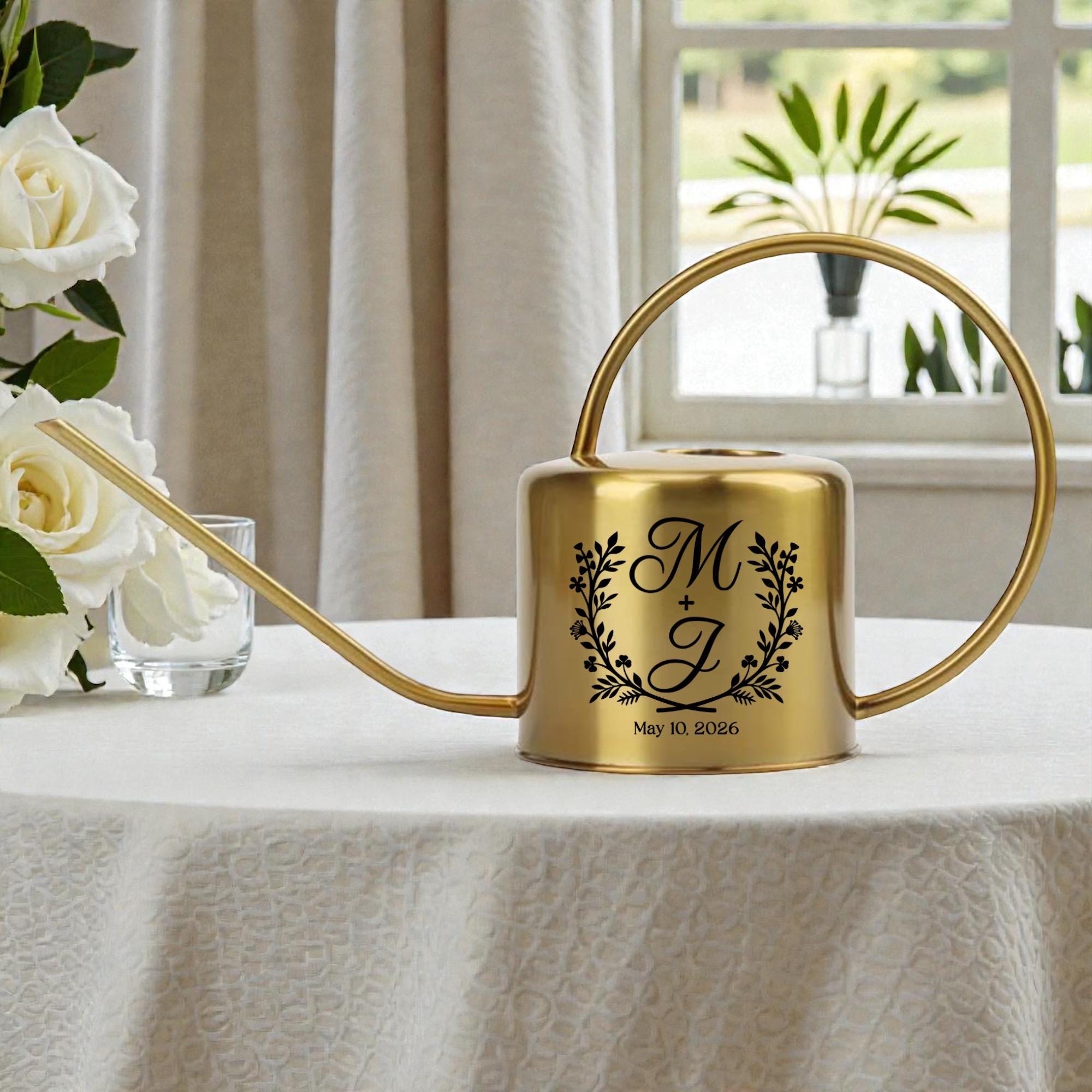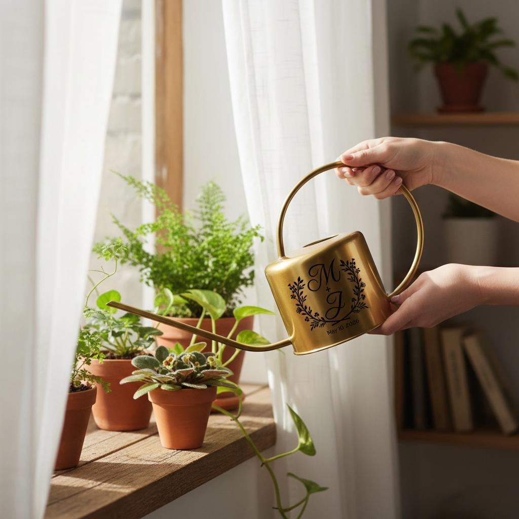 Perfect for watering houseplants, patio blooms, or kitchen herbs, this customizable gold watering can also makes a meaningful gift for weddings, anniversaries, or any plant-loving person.