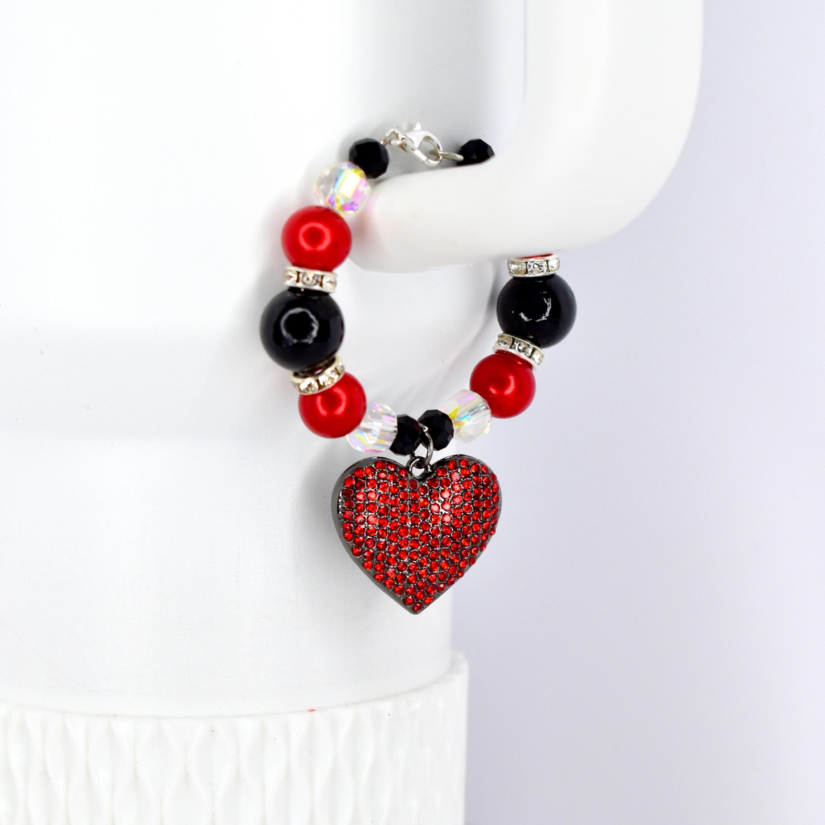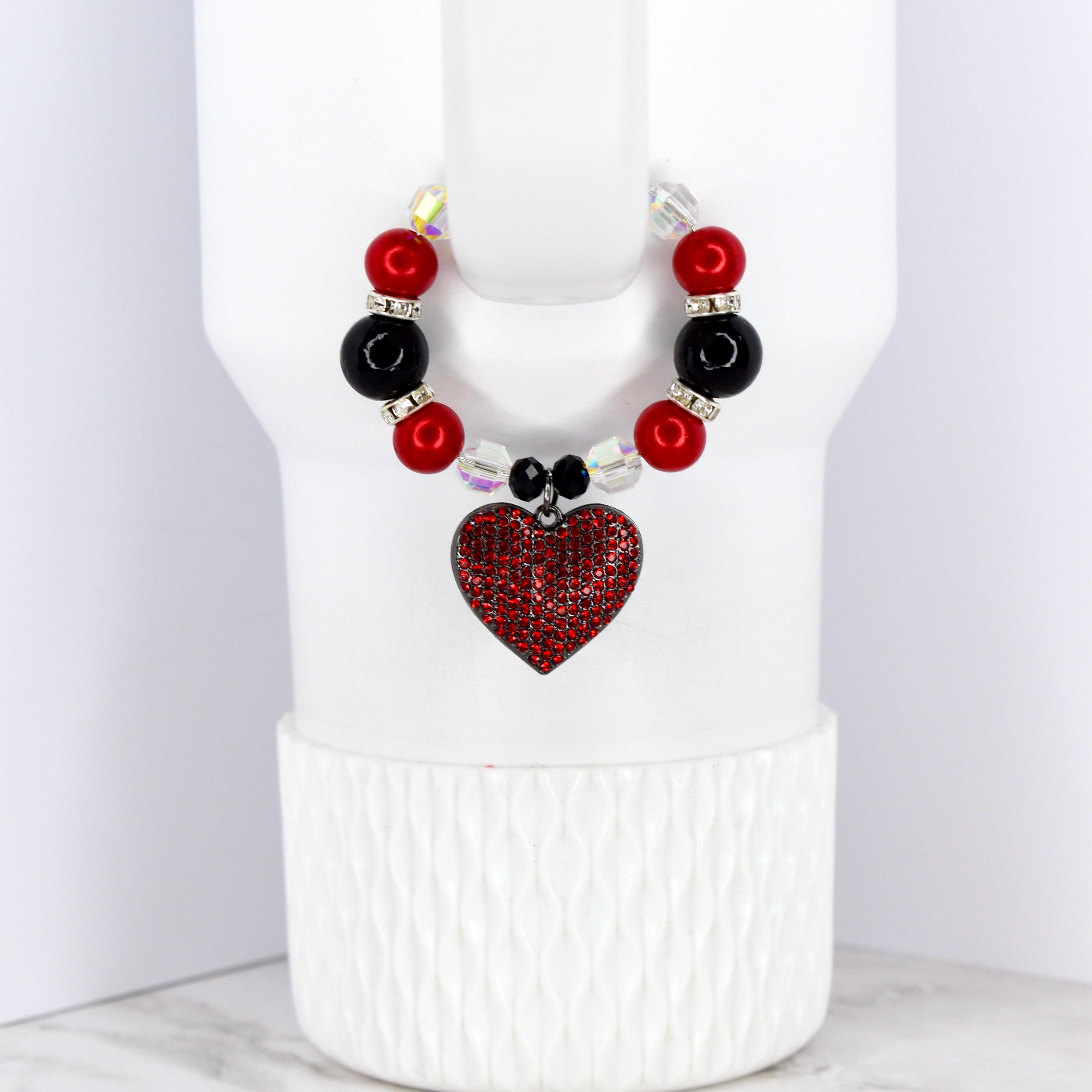 Make a bold statement of love with this stunning tumbler handle bracelet! Featuring a show-stopping red rhinestone-encrusted heart pendant, this elegant accessory combines classic Valentine colors with sparkling glamour for your favorite drinkware.
