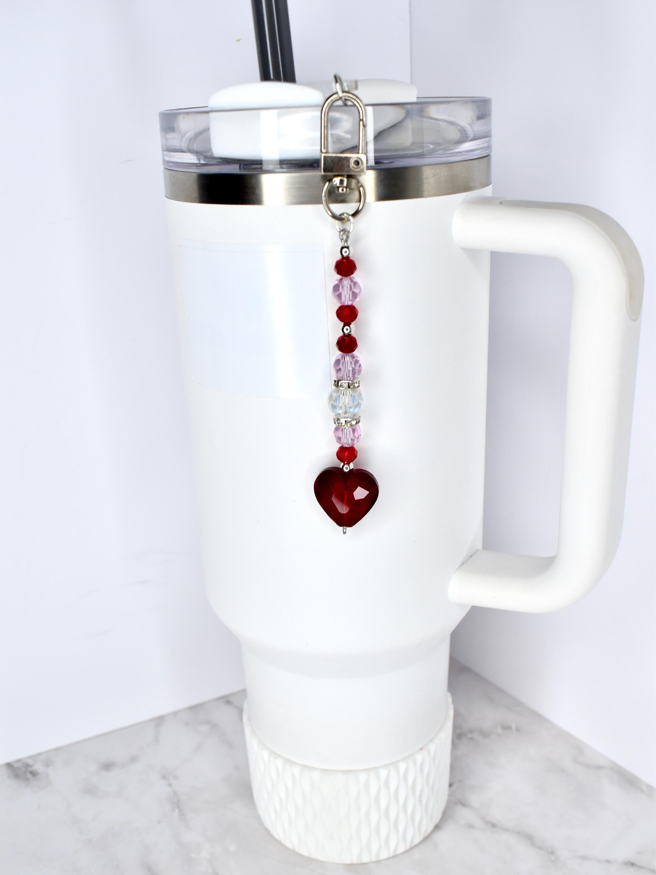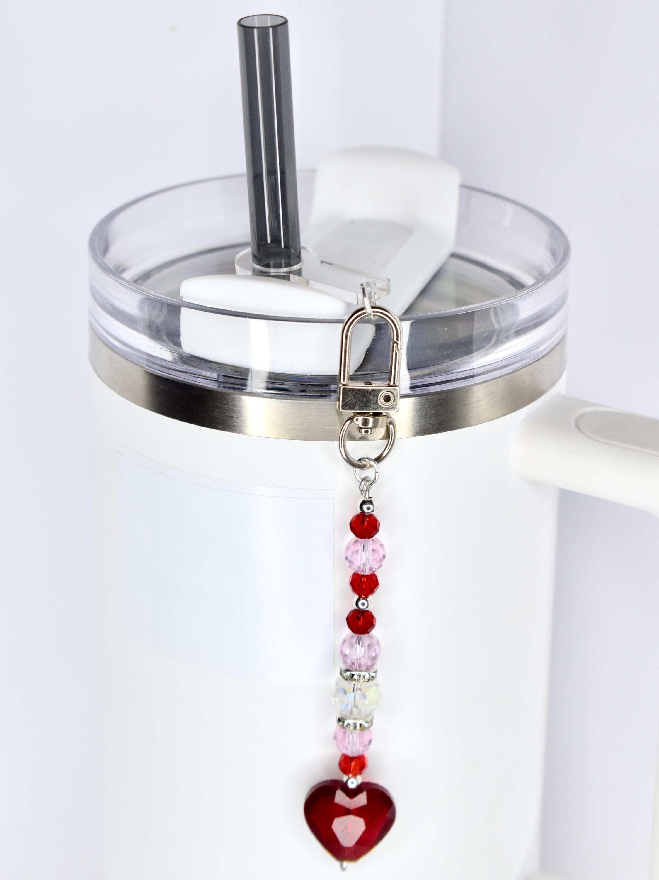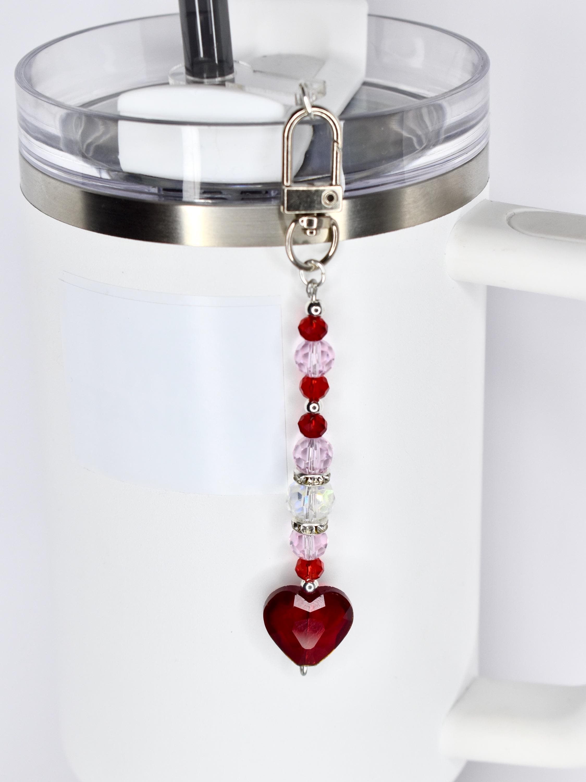 Add a touch of romance wherever you go with this versatile Valentine’s charm! Featuring a gorgeous deep red crystal heart pendant and delicate pink and red beads, this elegant accessory can beautify your favorite bag or tumbler straw with equal charm.