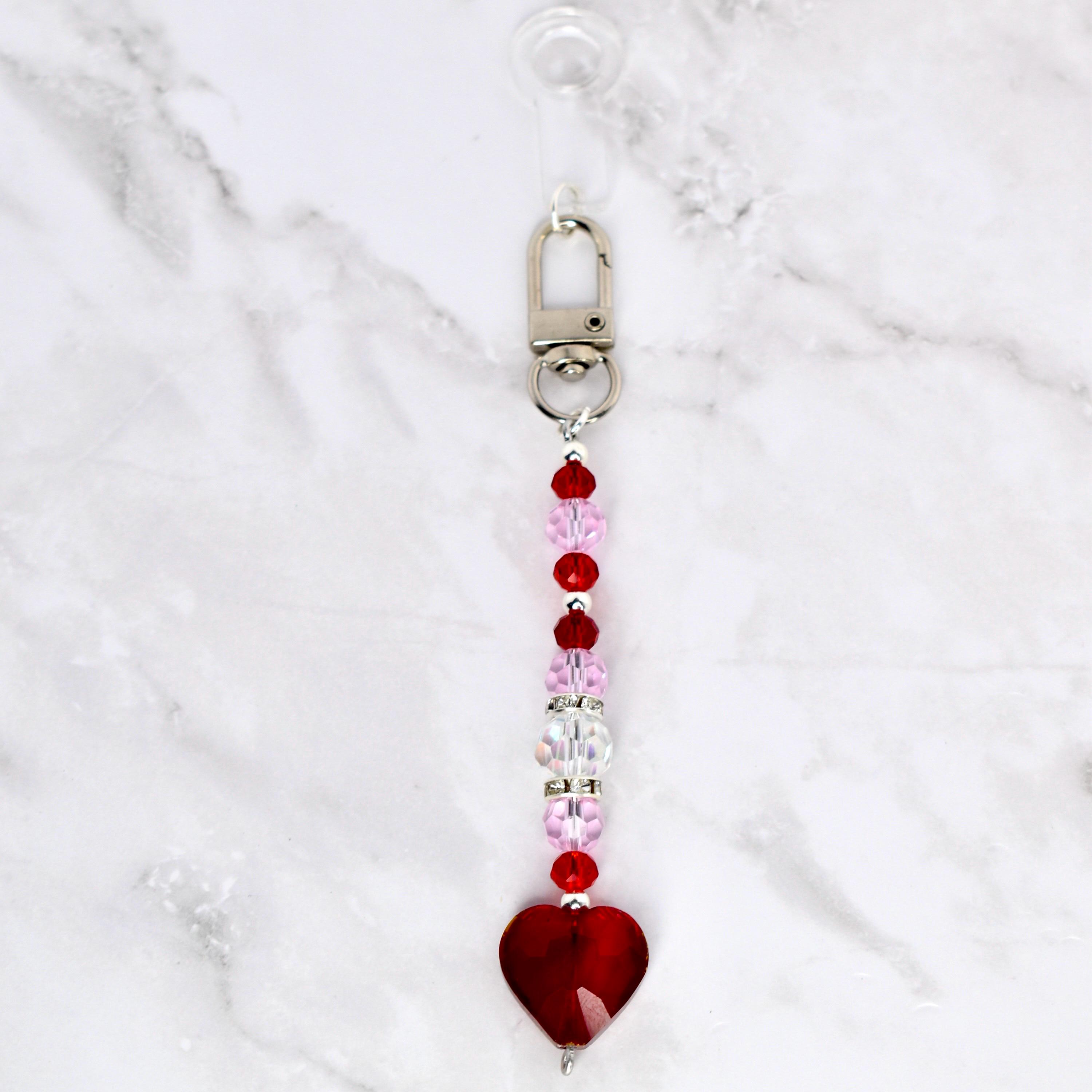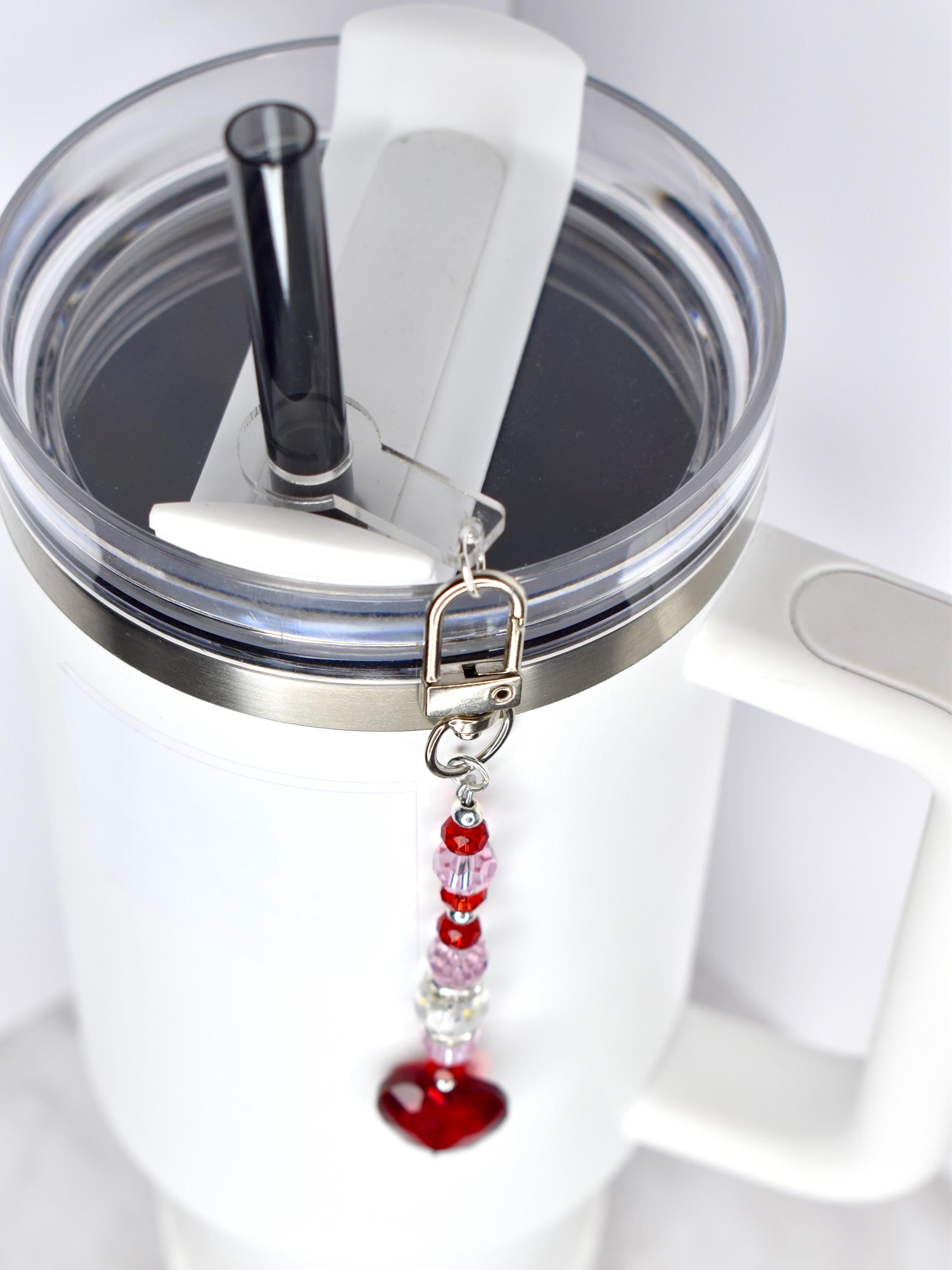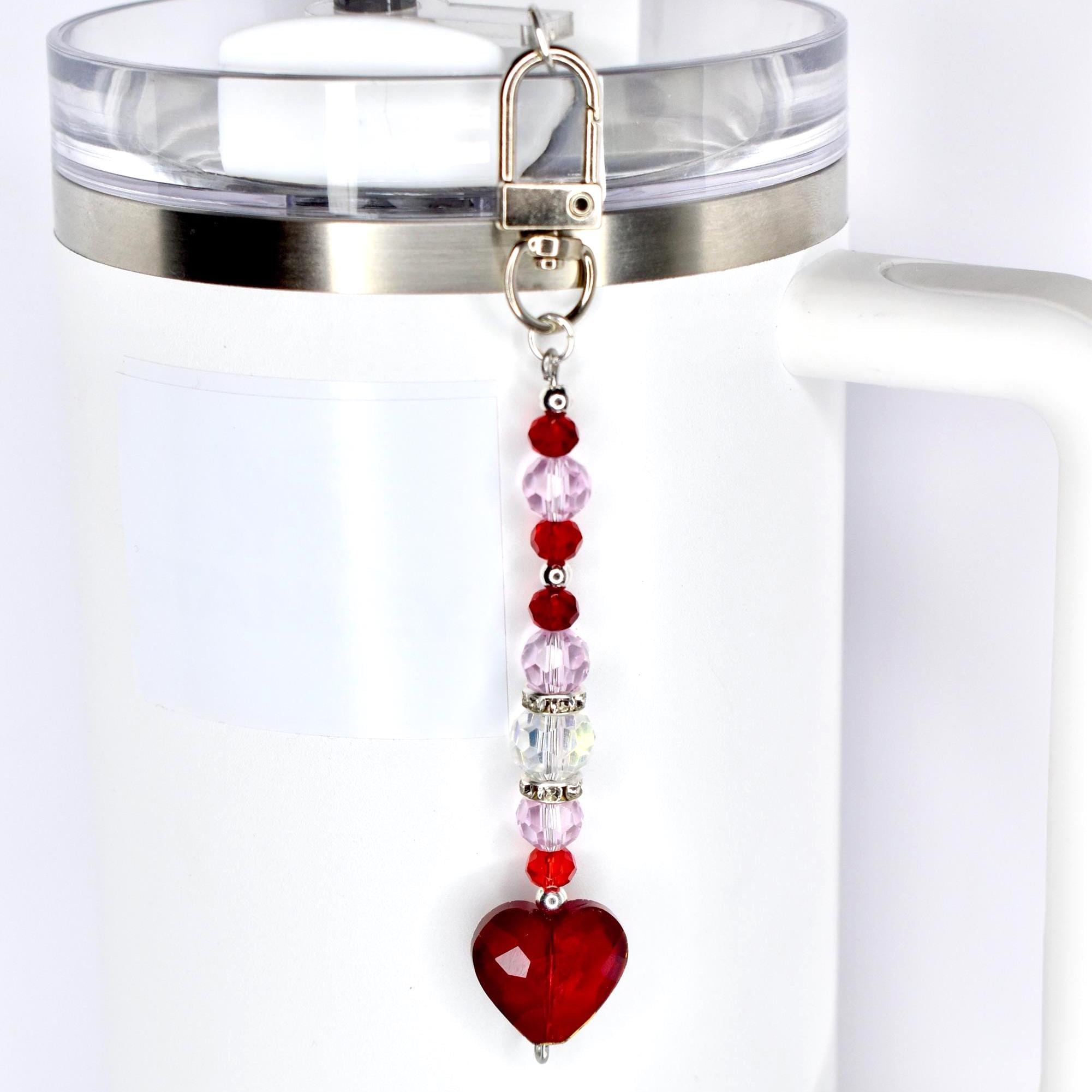 Add a touch of romance wherever you go with this versatile Valentine’s charm! Featuring a gorgeous deep red crystal heart pendant and delicate pink and red beads, this elegant accessory can beautify your favorite bag or tumbler straw with equal charm.