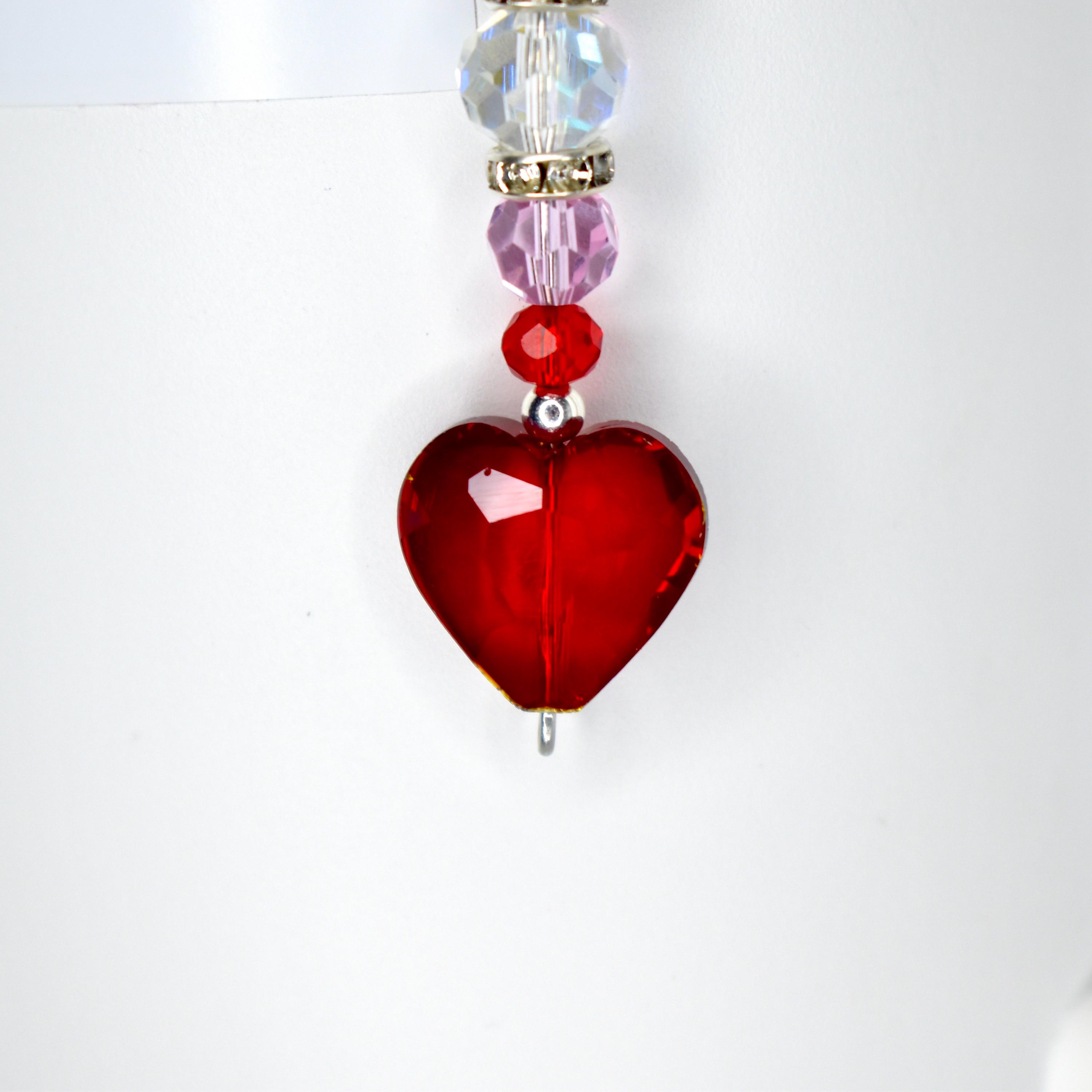 - Red faceted crystal heart pendant (approximately 1 inch)