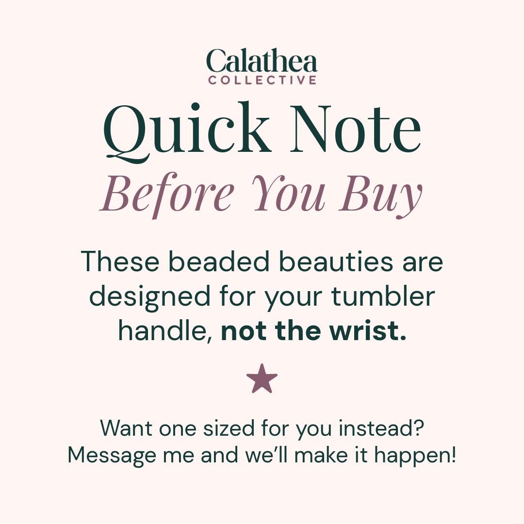 Calathea Collective’s tumbler bracelets are designed to fit the base of cup holder-friendly tumblers with a 3 inch base. If you're unsure about sizing or want to request a custom size, just send me a message—I’m happy to help!