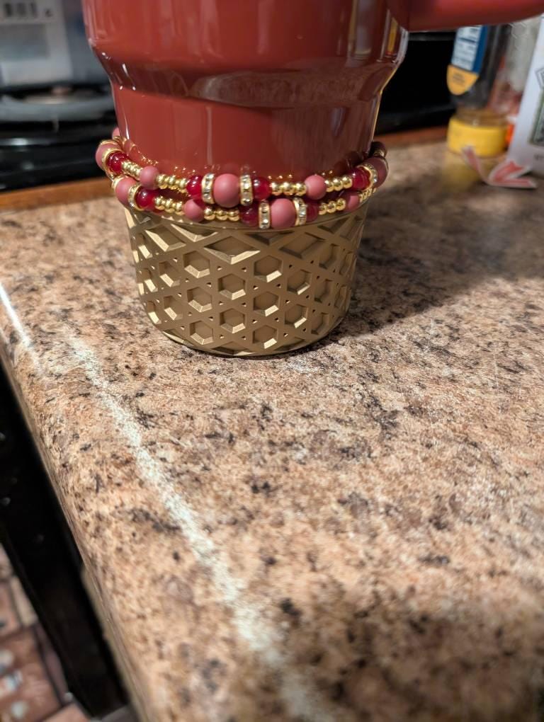 Calathea Collective’s tumbler bracelets are designed to fit the base of cup holder-friendly tumblers with a 3 inch base. If you're unsure about sizing or want to request a custom size, just send me a message—I’m happy to help!