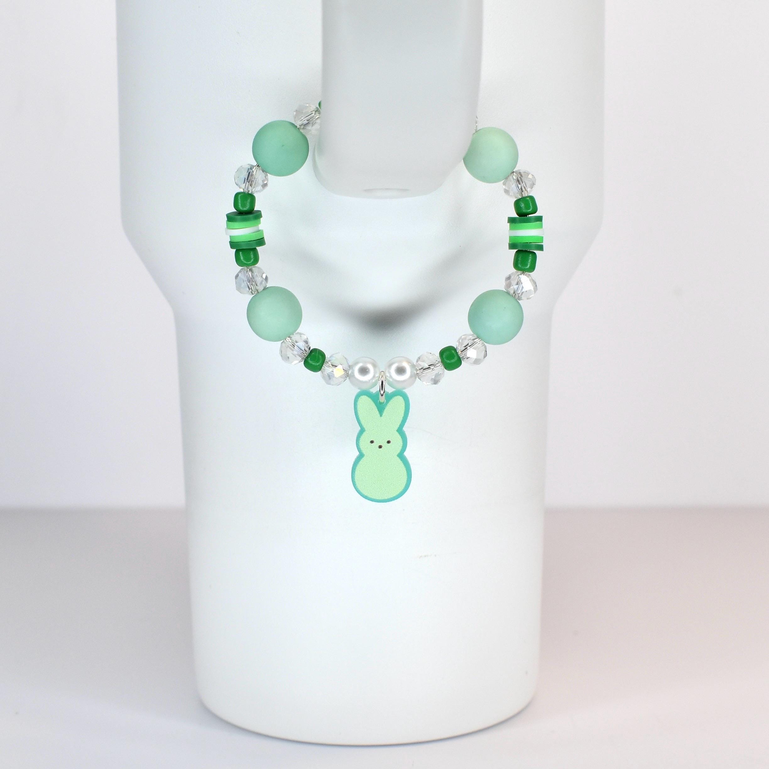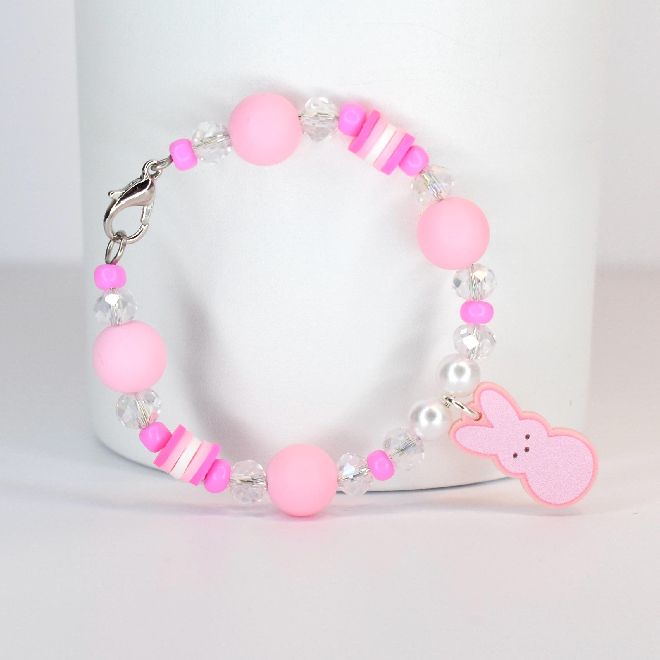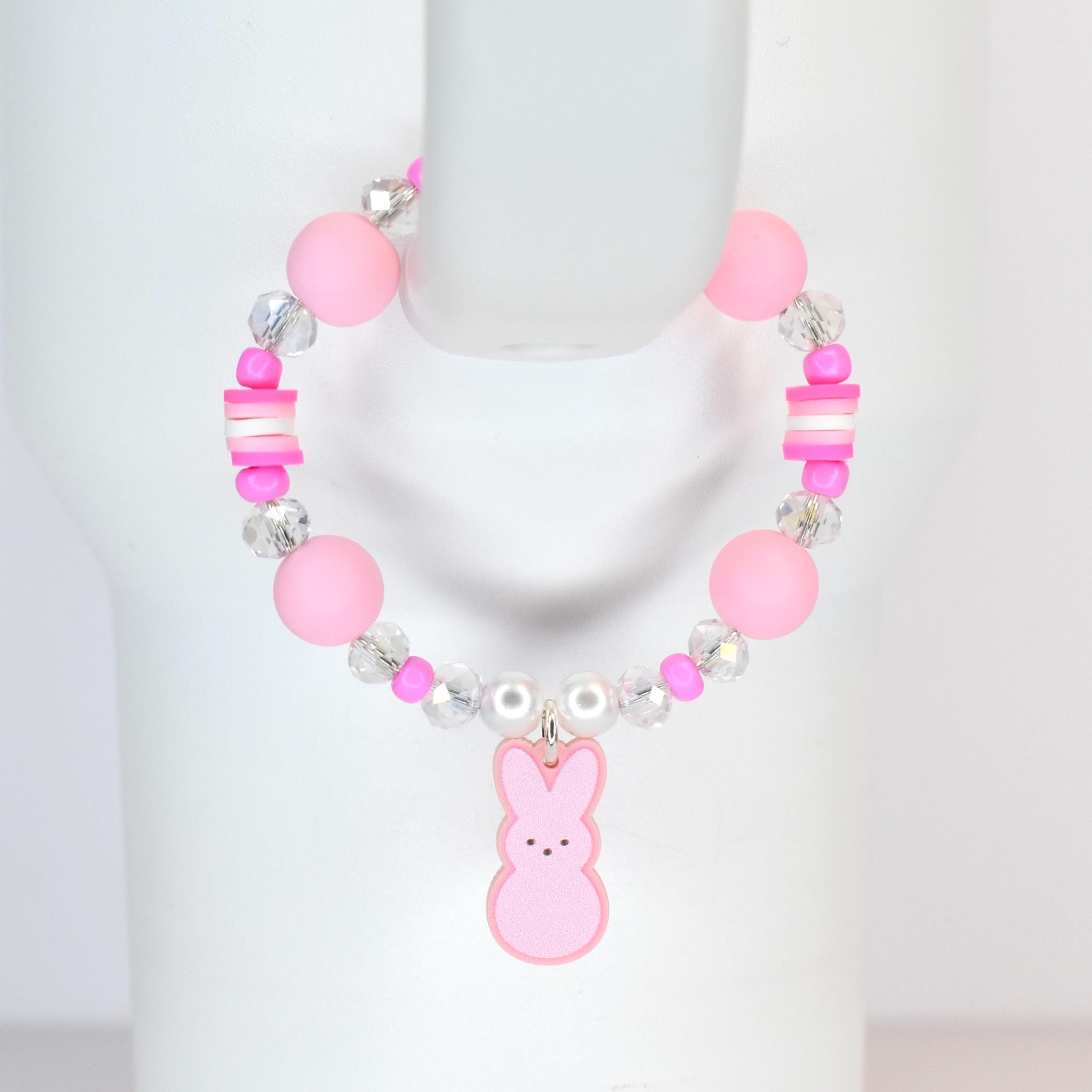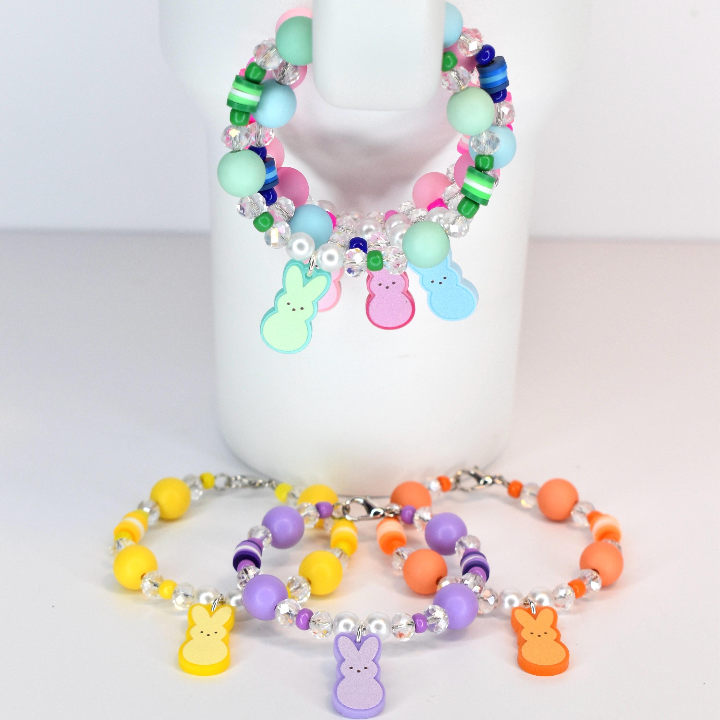 Hop into spring with these adorable PEEPS-inspired tumbler handle bracelets! Each mini bracelet features a charming bunny charm in coordinating colors, paired with pastel beads that capture the joy of Easter.