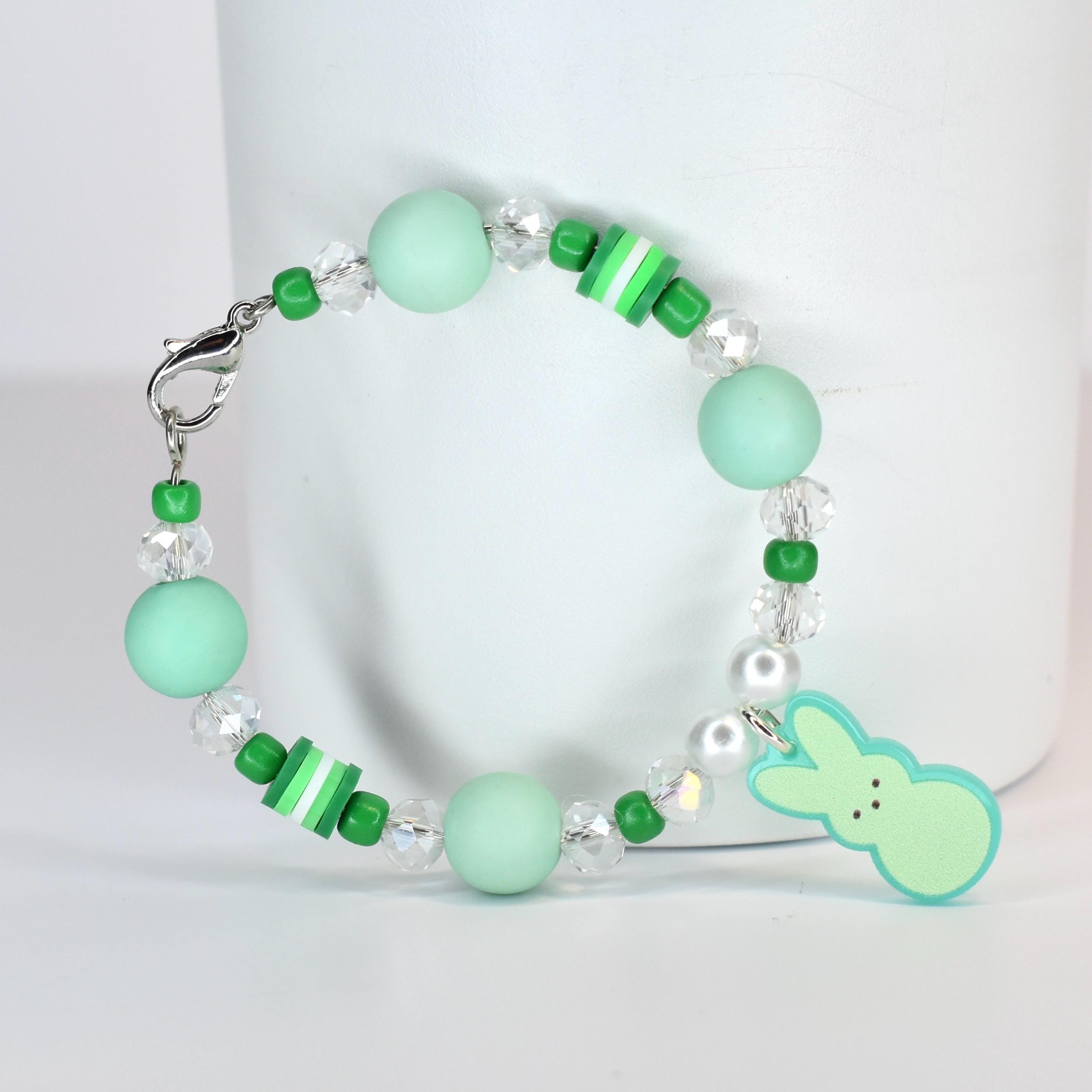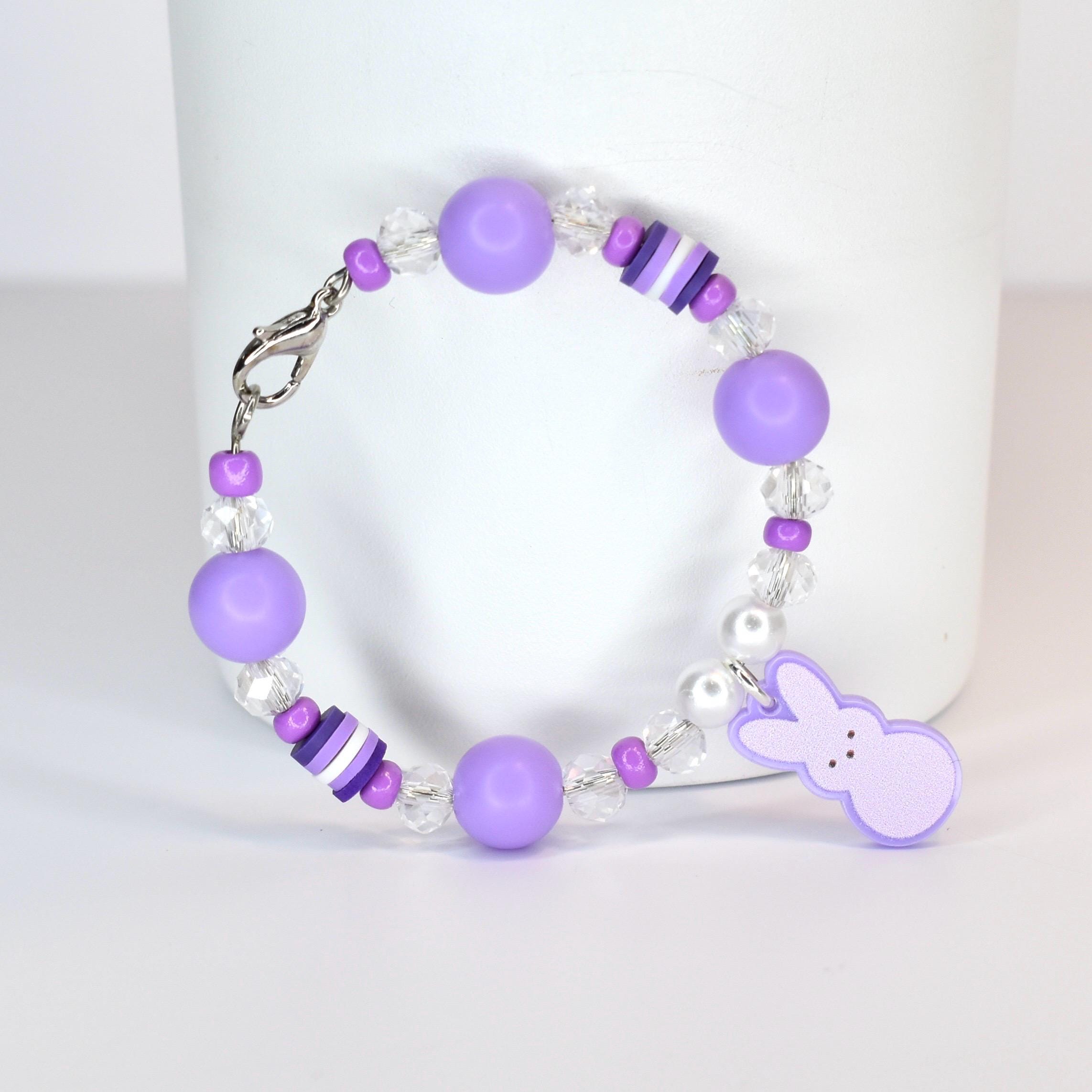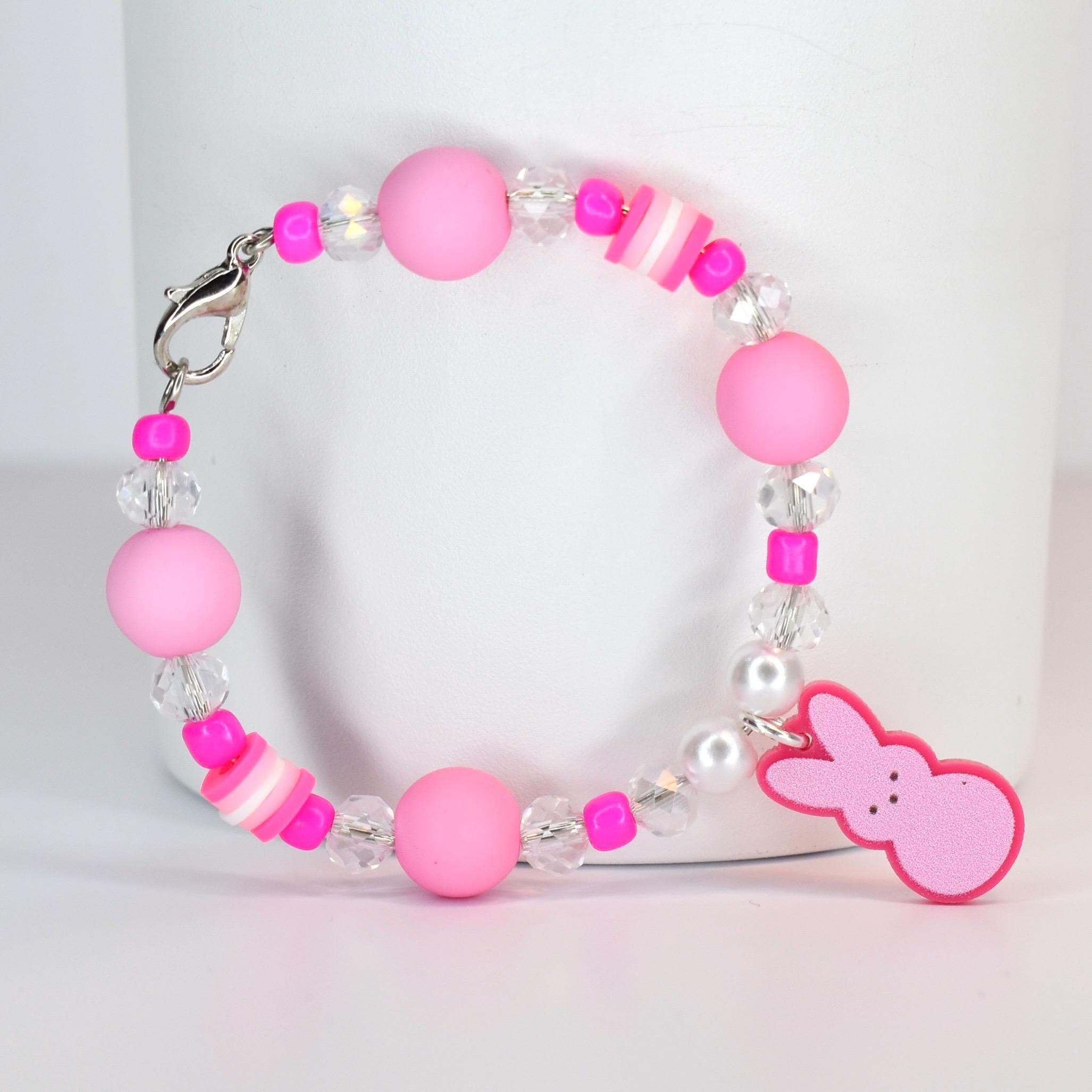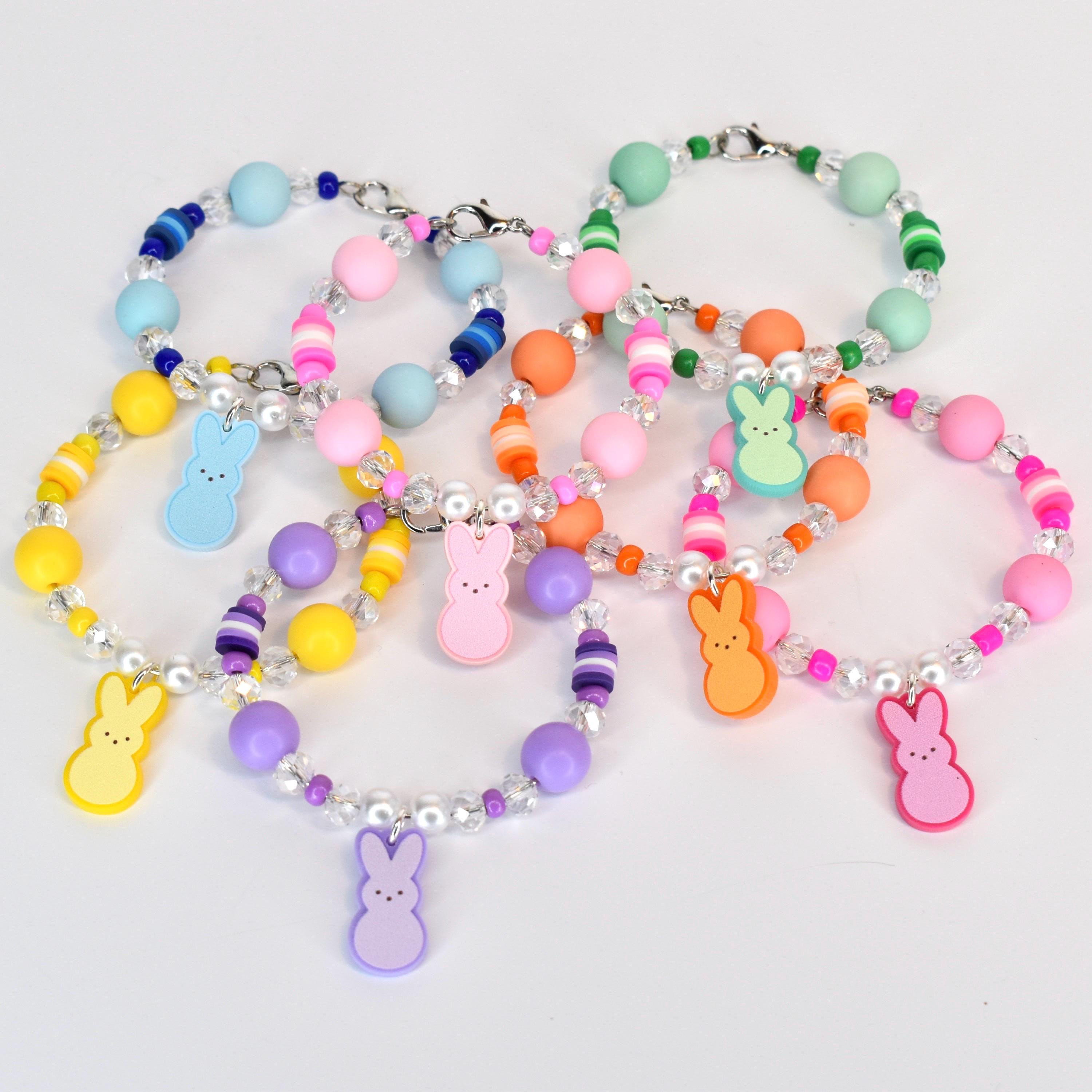 Hop into spring with these adorable PEEPS-inspired tumbler handle bracelets! Each mini bracelet features a charming bunny charm in coordinating colors, paired with pastel beads that capture the joy of Easter.