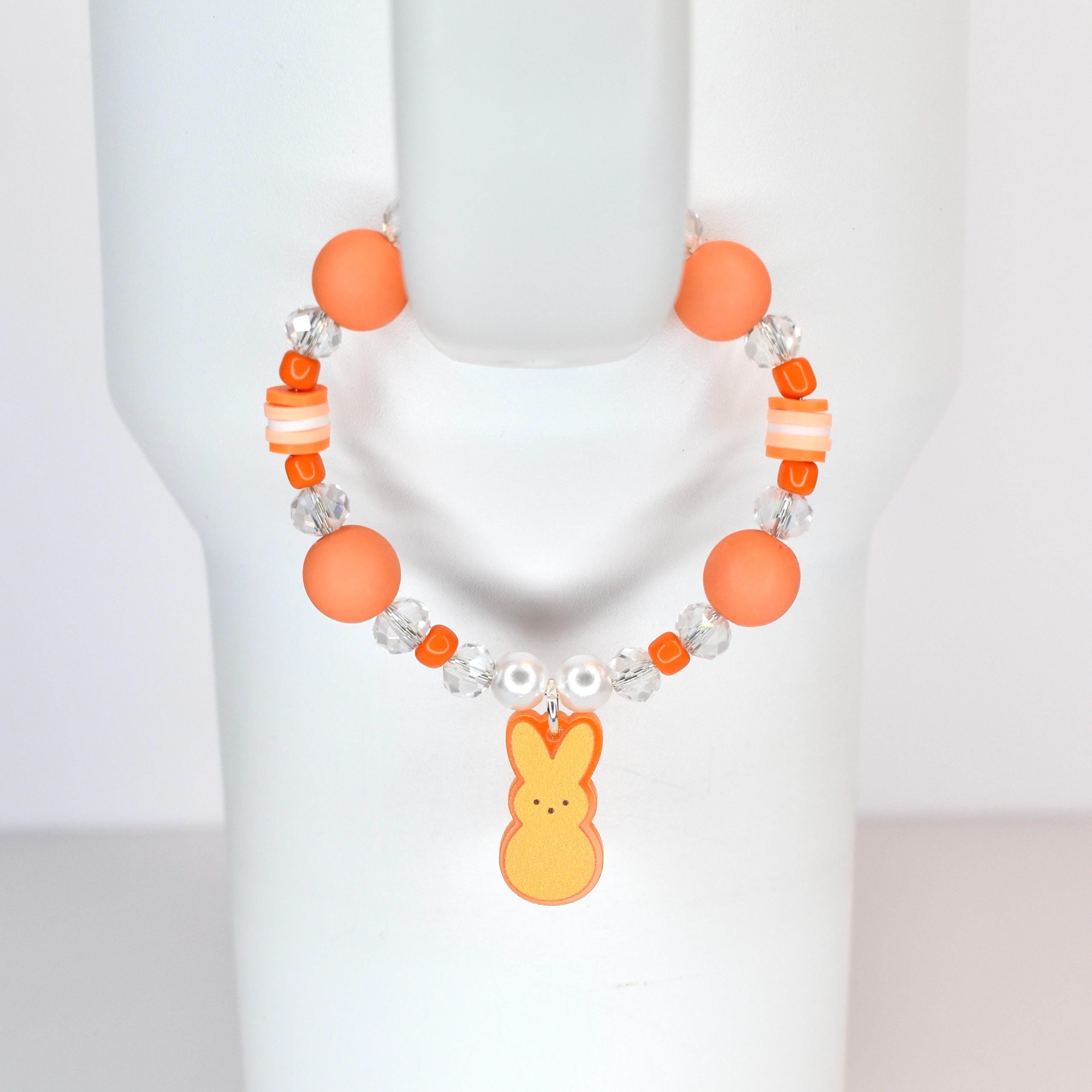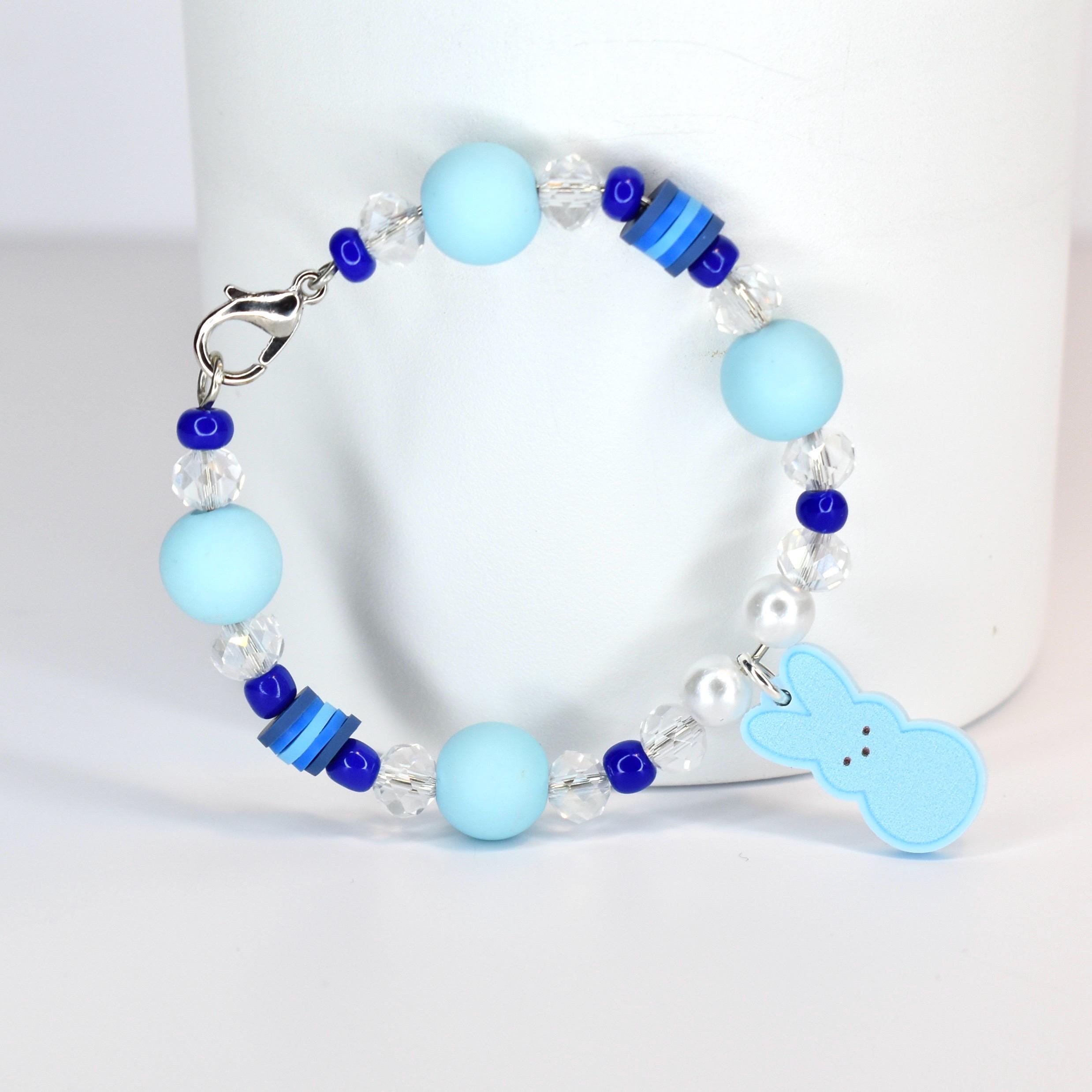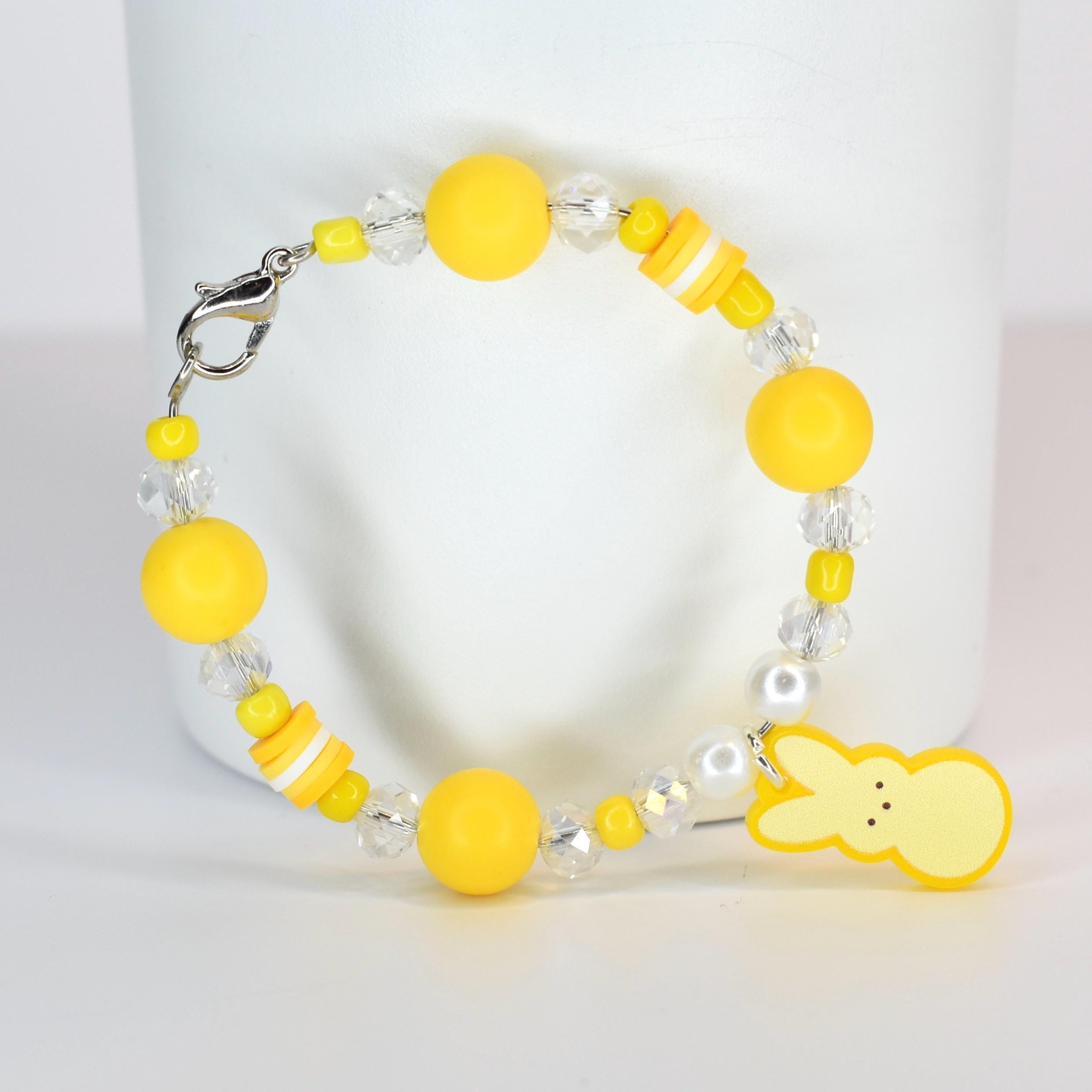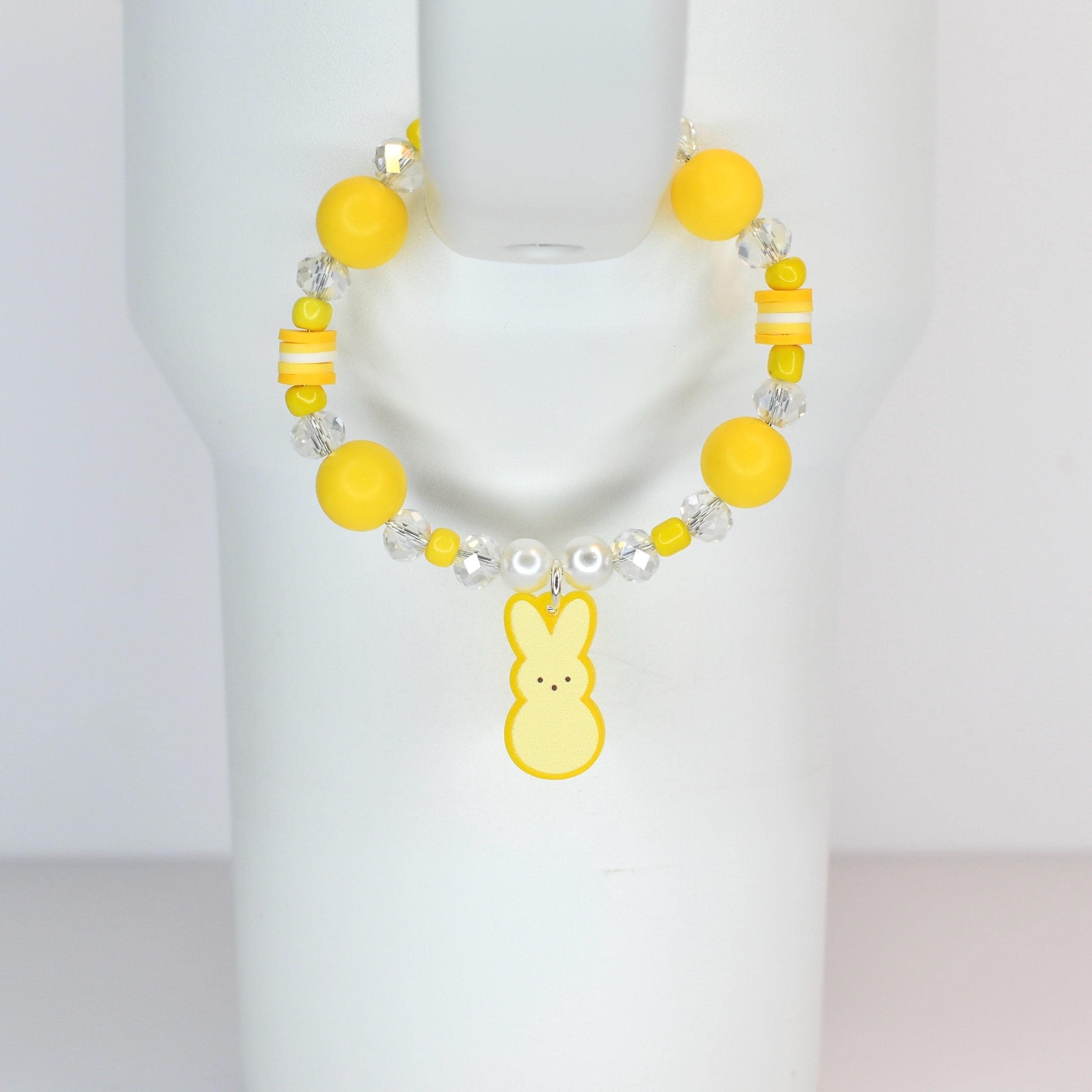 Hop into spring with these adorable PEEPS-inspired tumbler handle bracelets! Each mini bracelet features a charming bunny charm in coordinating colors, paired with pastel beads that capture the joy of Easter.