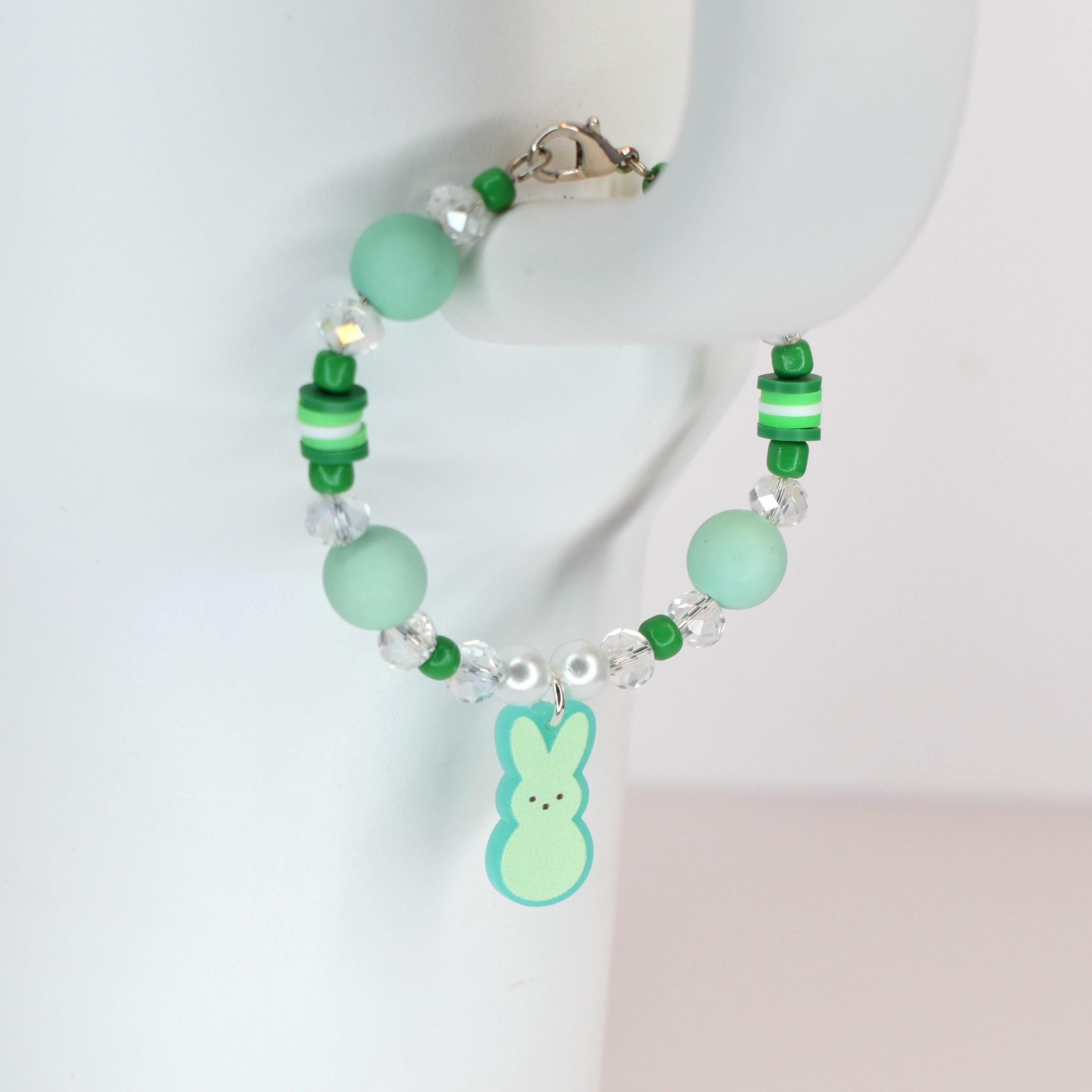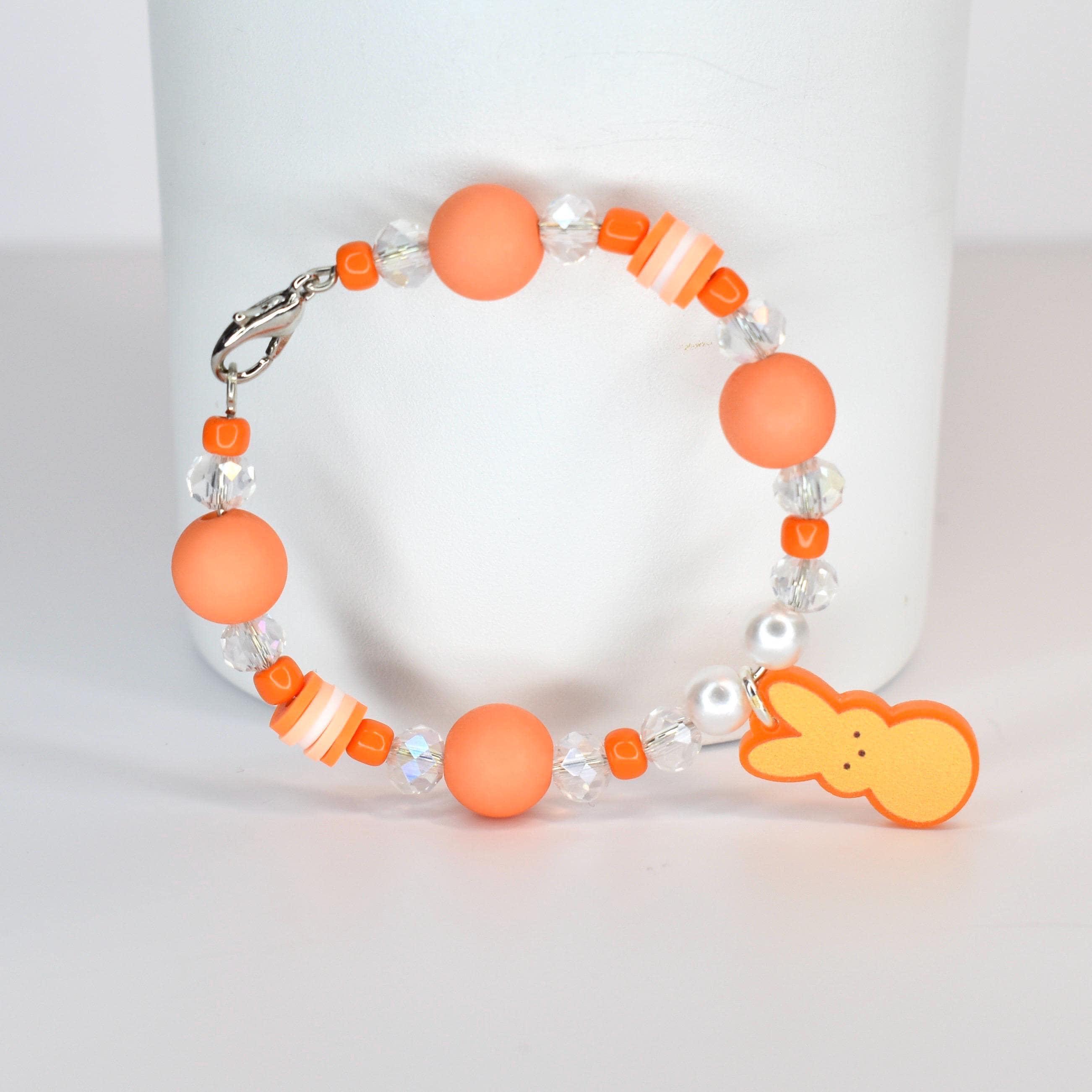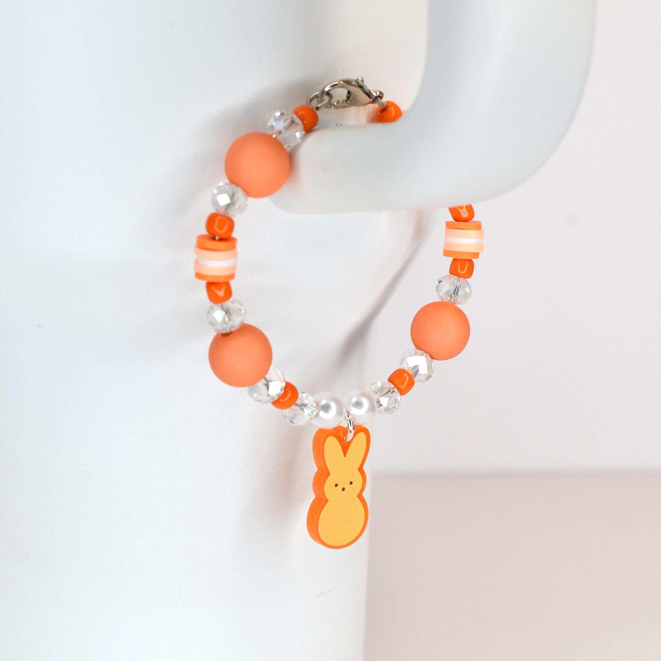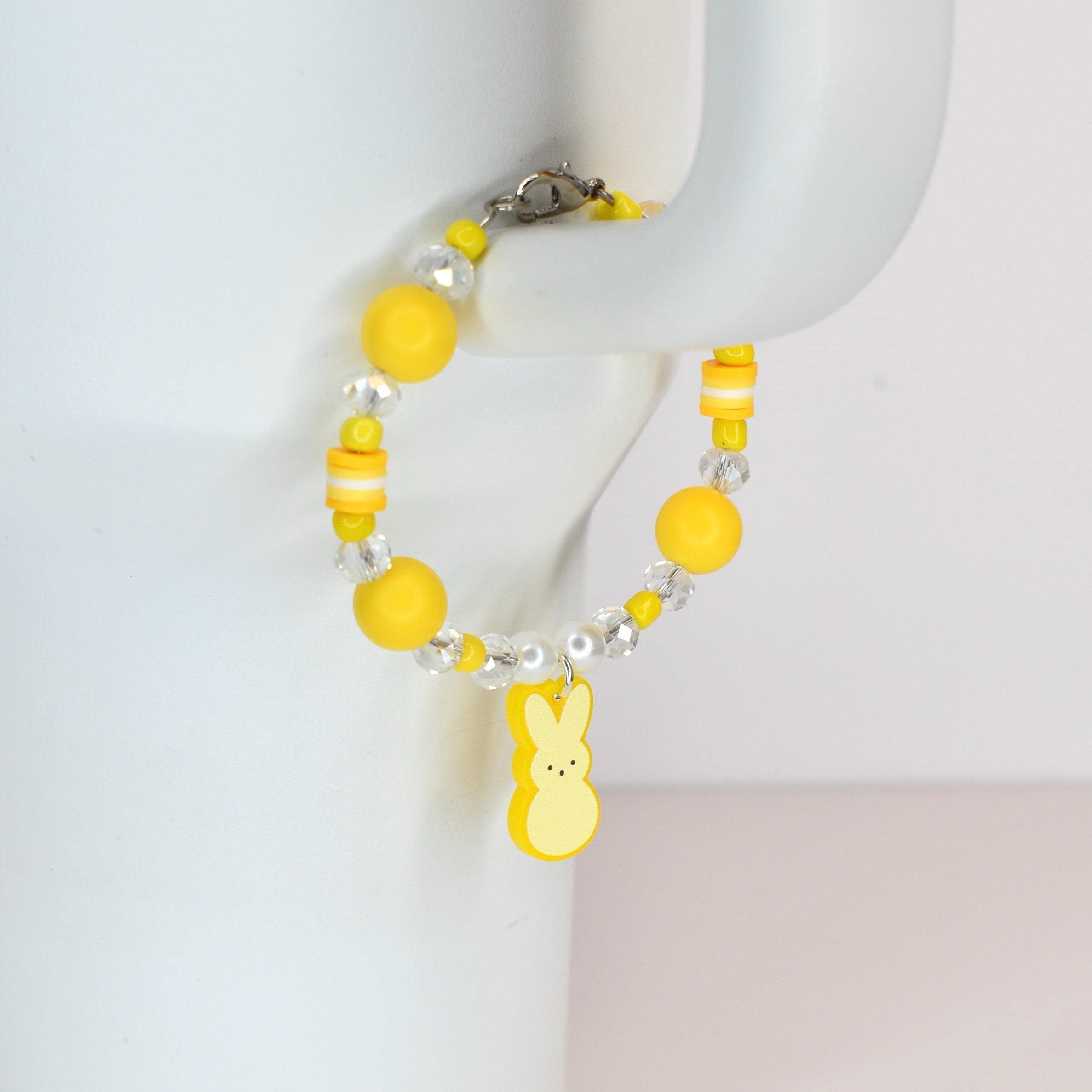 Hop into spring with these adorable PEEPS-inspired tumbler handle bracelets! Each mini bracelet features a charming bunny charm in coordinating colors, paired with pastel beads that capture the joy of Easter.