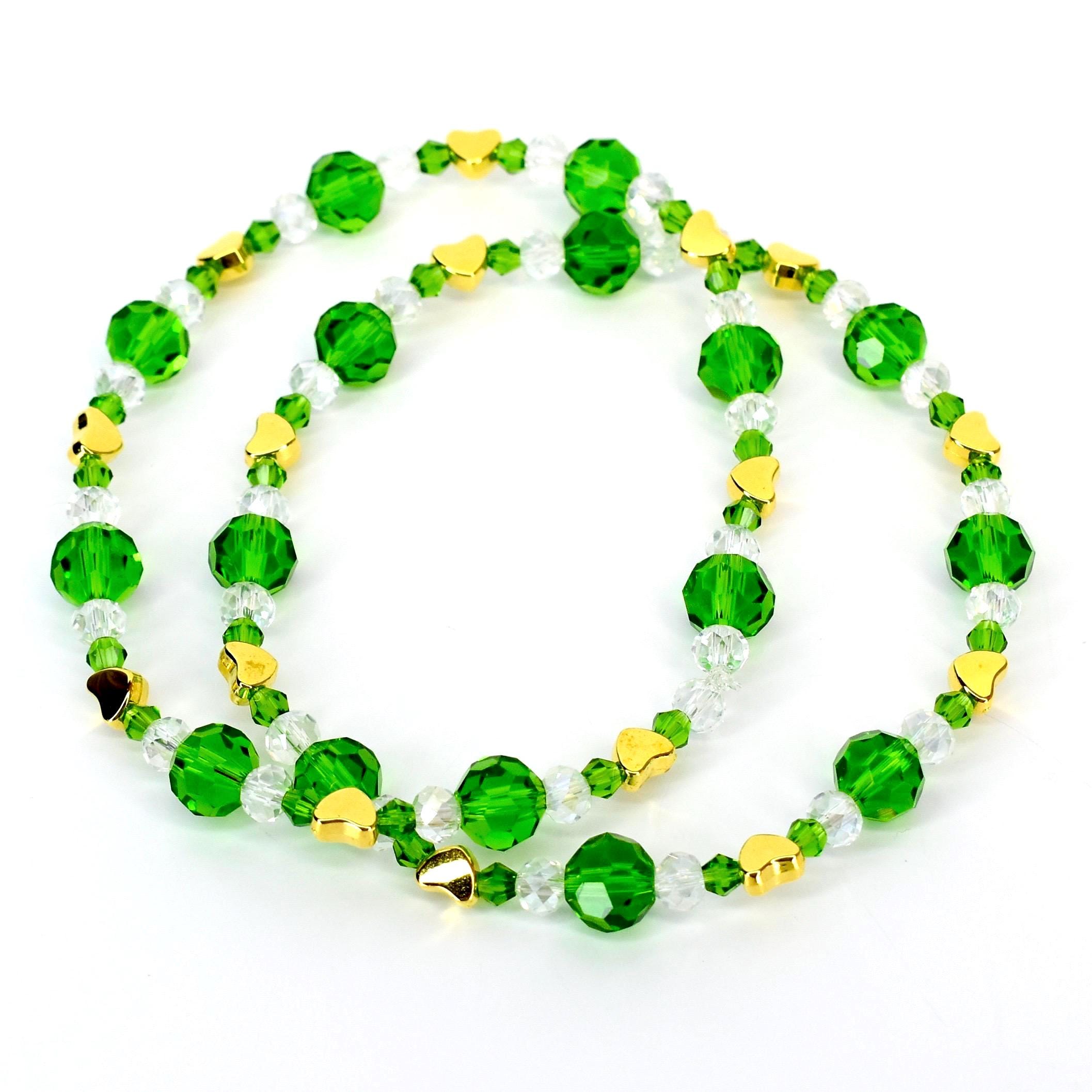 • Emerald green faceted crystal beads in varying sizes