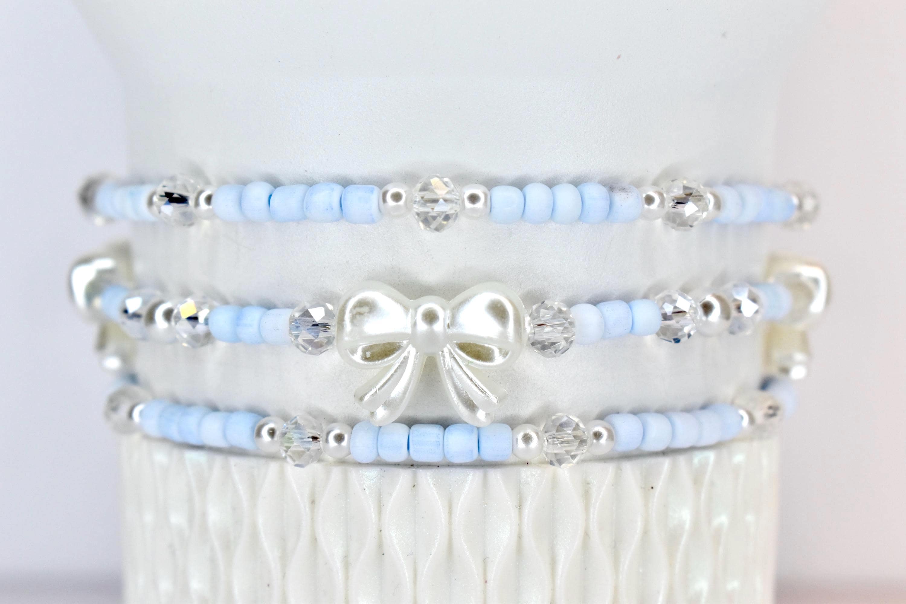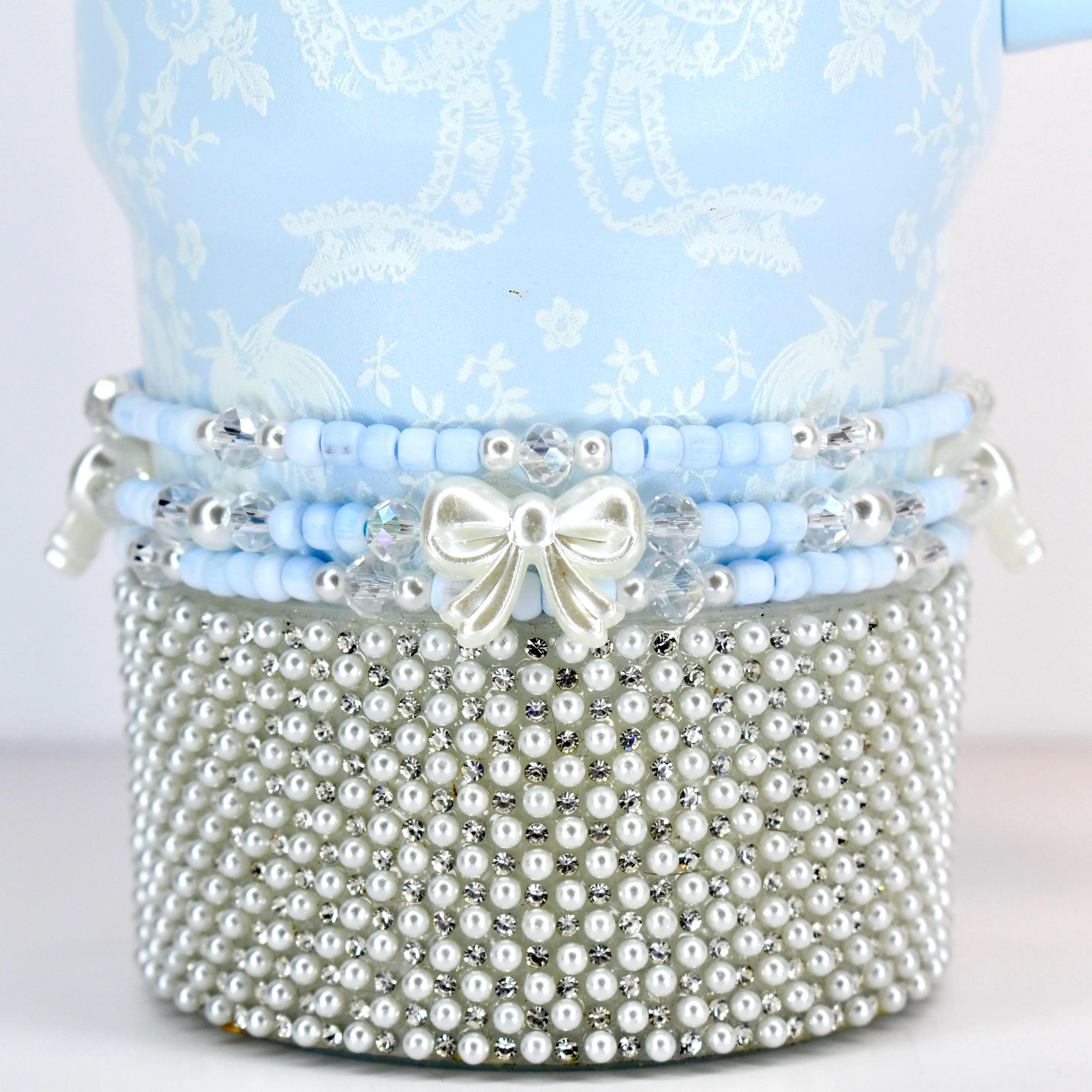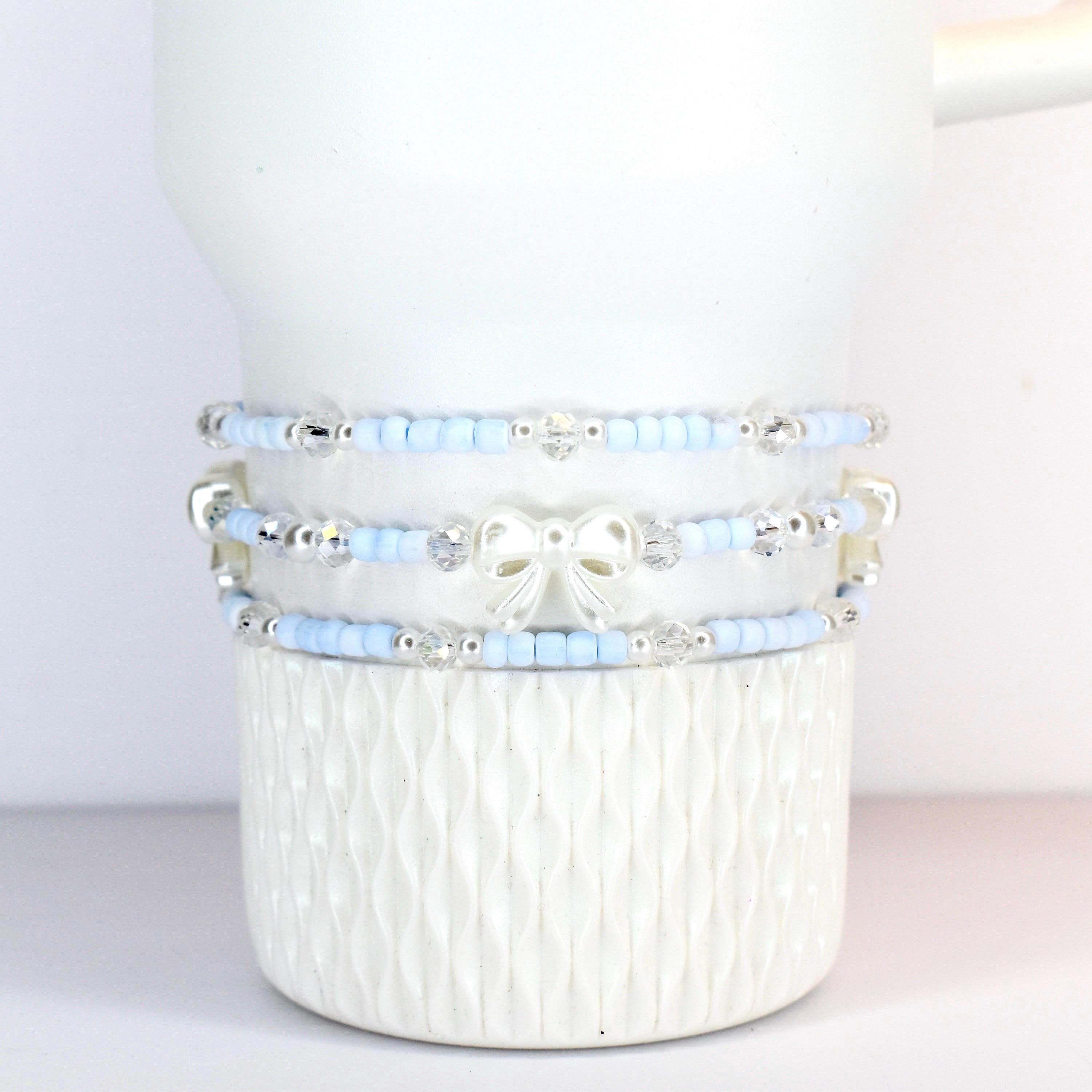 Beautiful bracelets! Got for my LSF blue tumbler and they fit perfectly. Love the pale blue and pearly bows with the subtle sparkles. Exactly what I was looking for, not too much, not too little, but the Goldie locks just right set!
