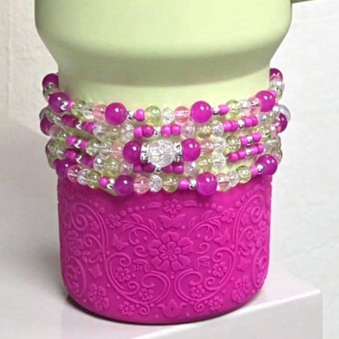 Calathea Collective’s tumbler bracelets are designed to fit the base of cup holder-friendly tumblers with a 3 inch base. If you're unsure about sizing or want to request a custom size, just send me a message—I’m happy to help!