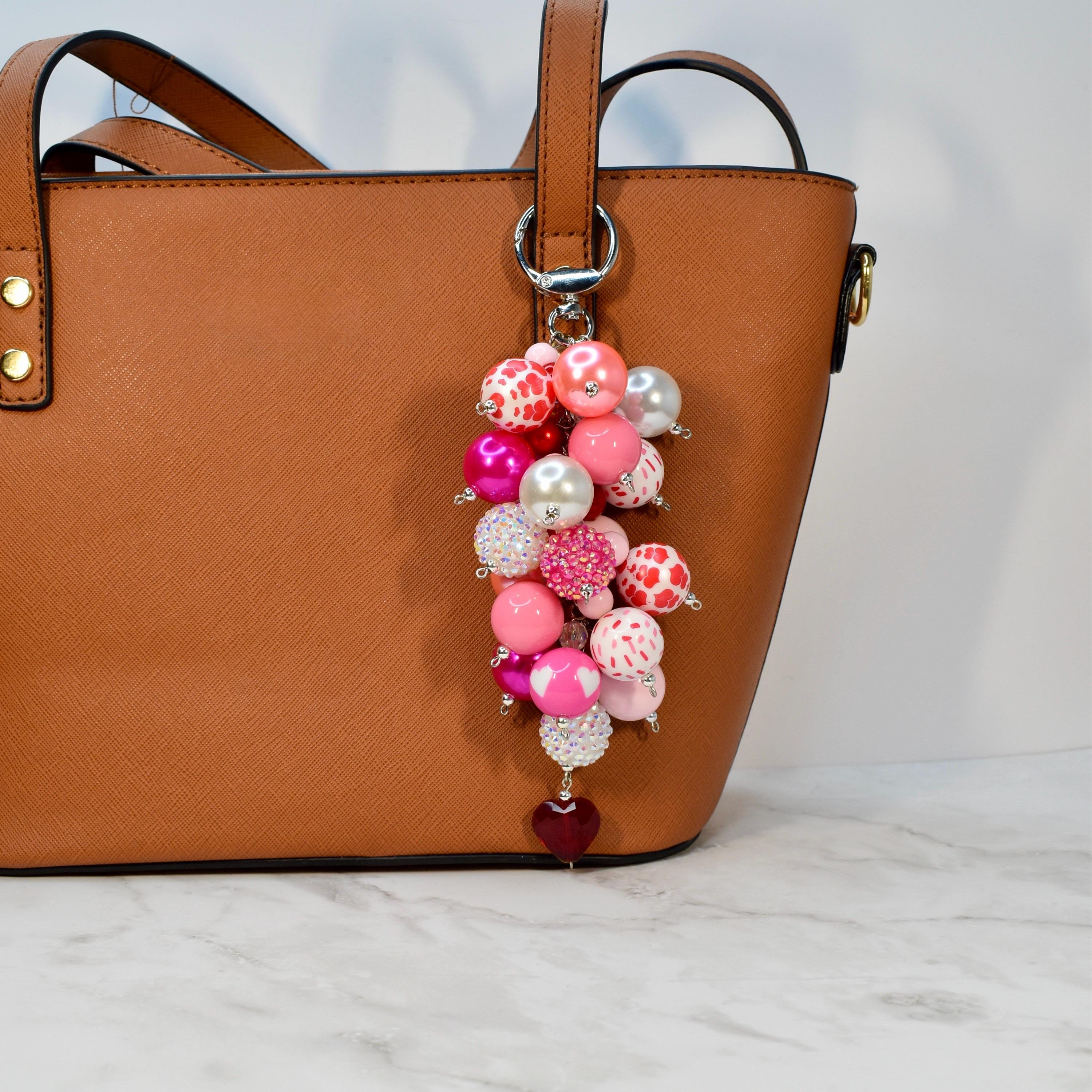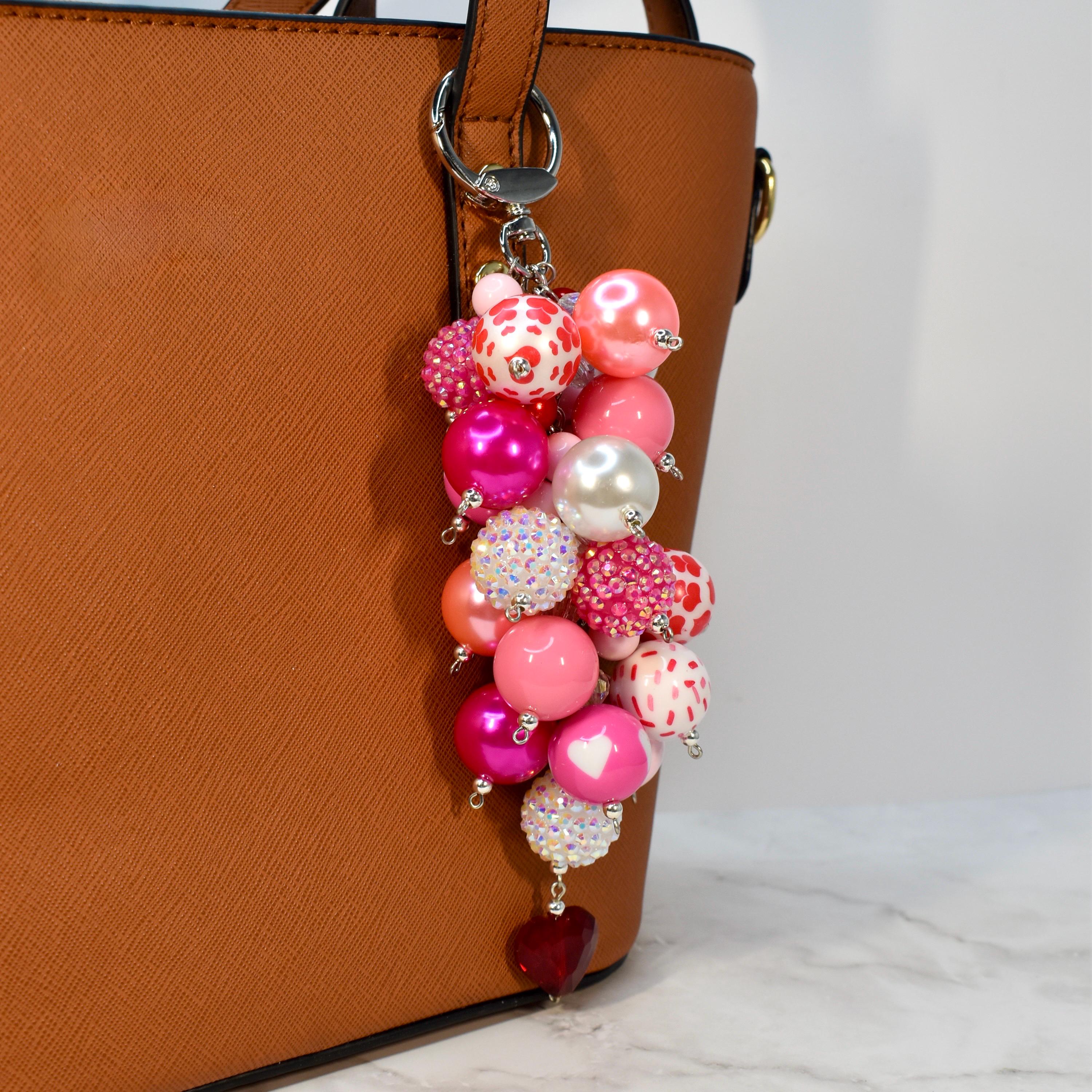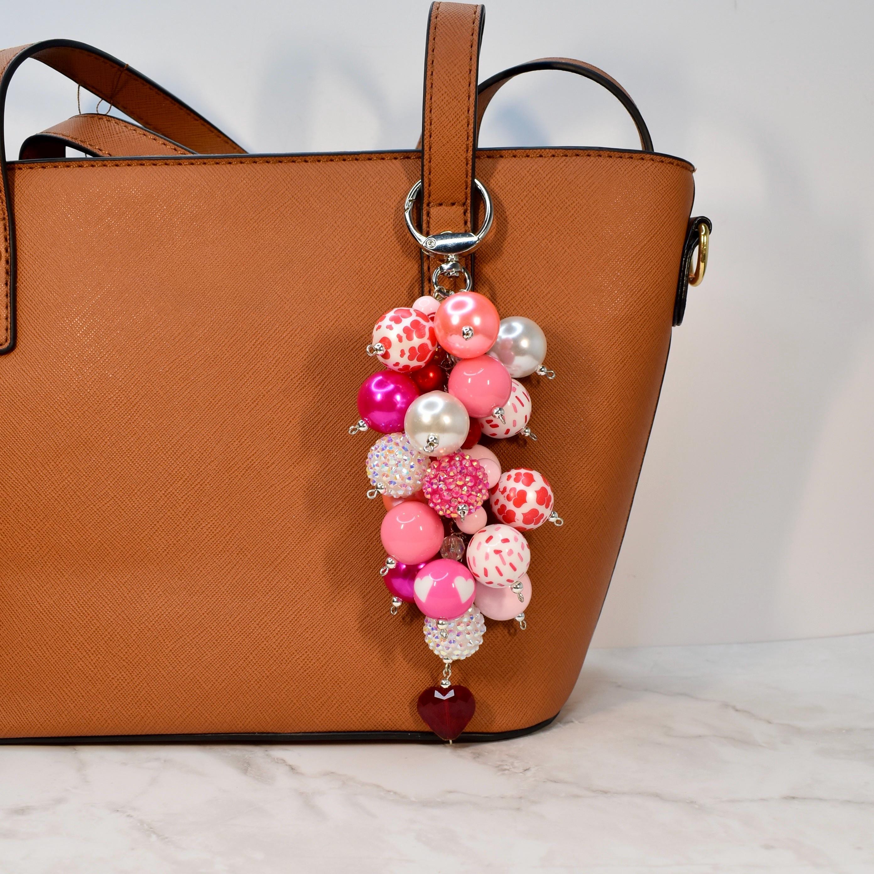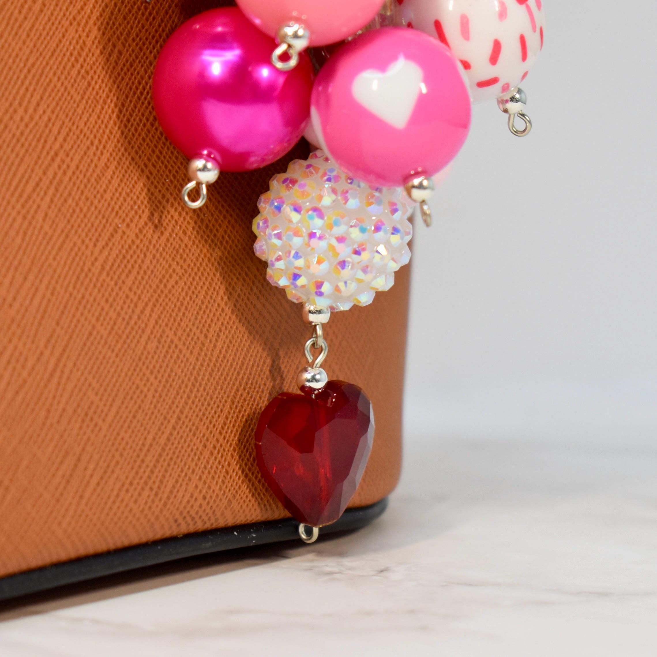 Celebrate love all year long with this gorgeous pink and red beaded bag charm! Perfect for Valentine’s Day, Galentine’s celebrations or everyday romance, this statement piece features a stunning mix of pink, hot pink and red beads with playful heart accents.