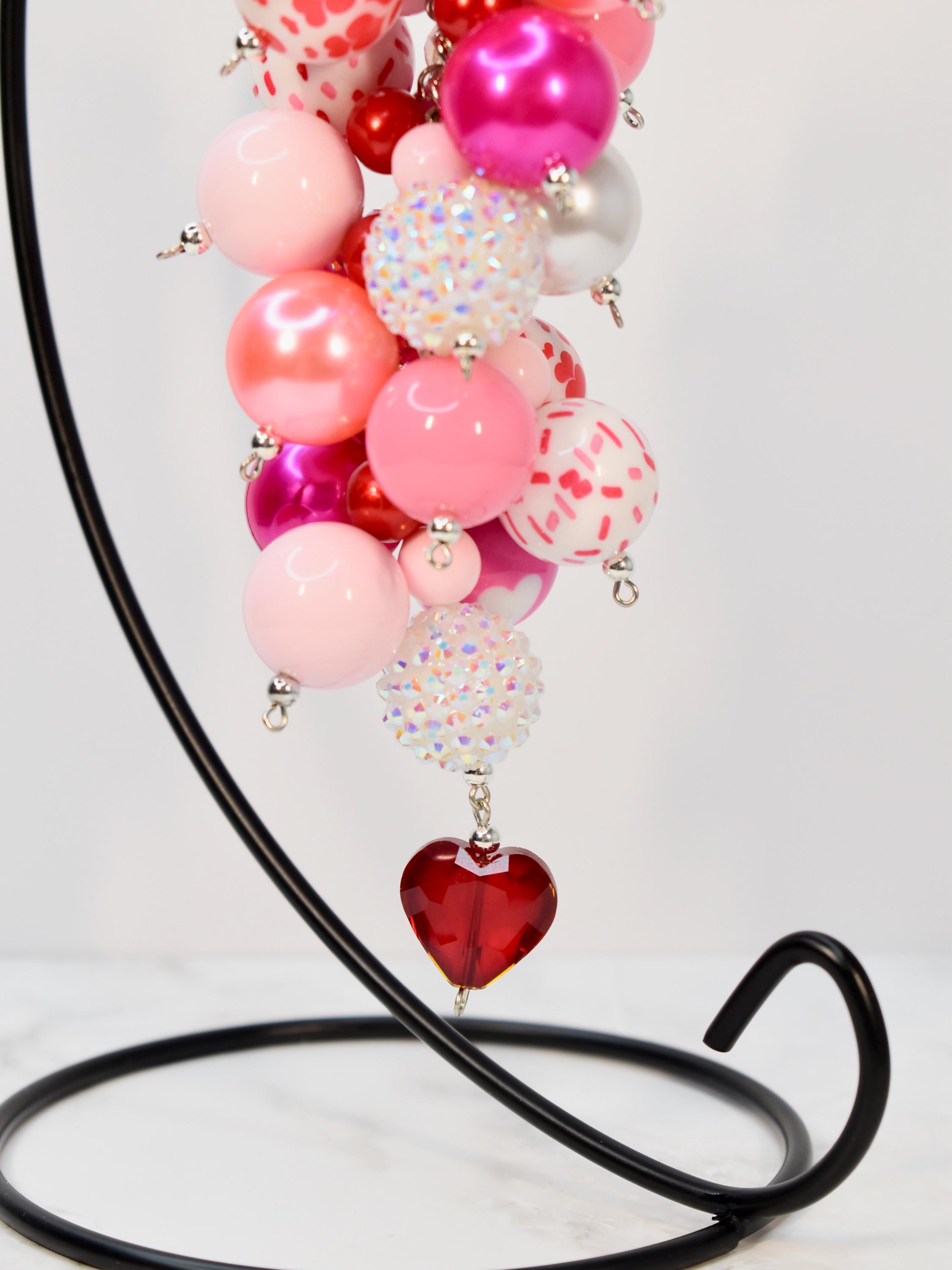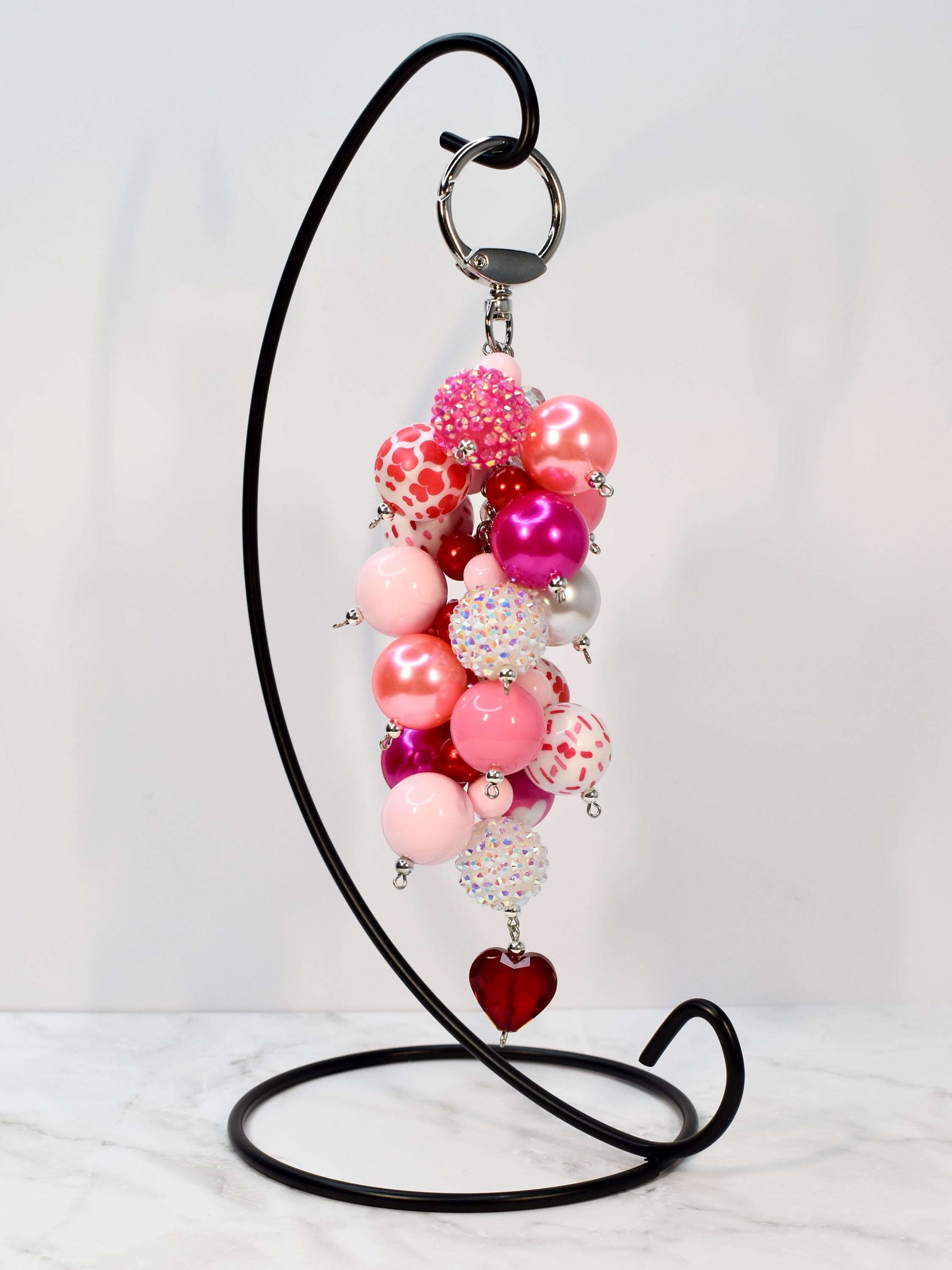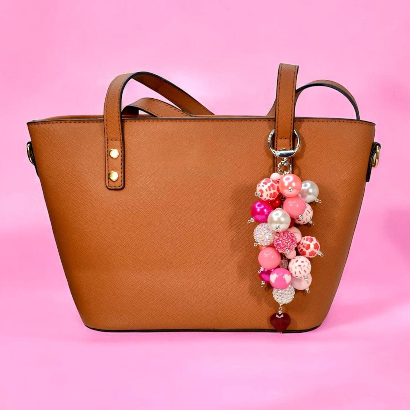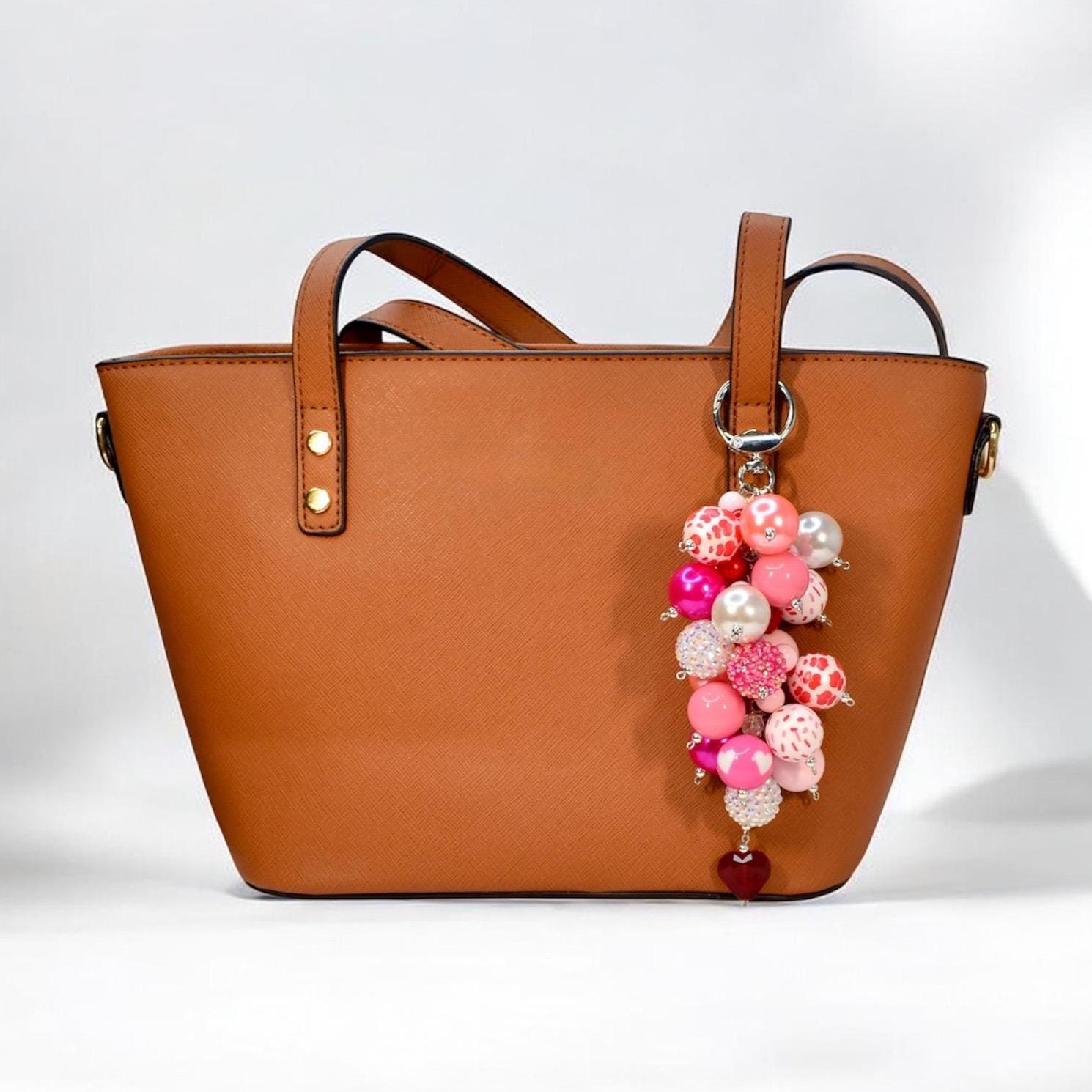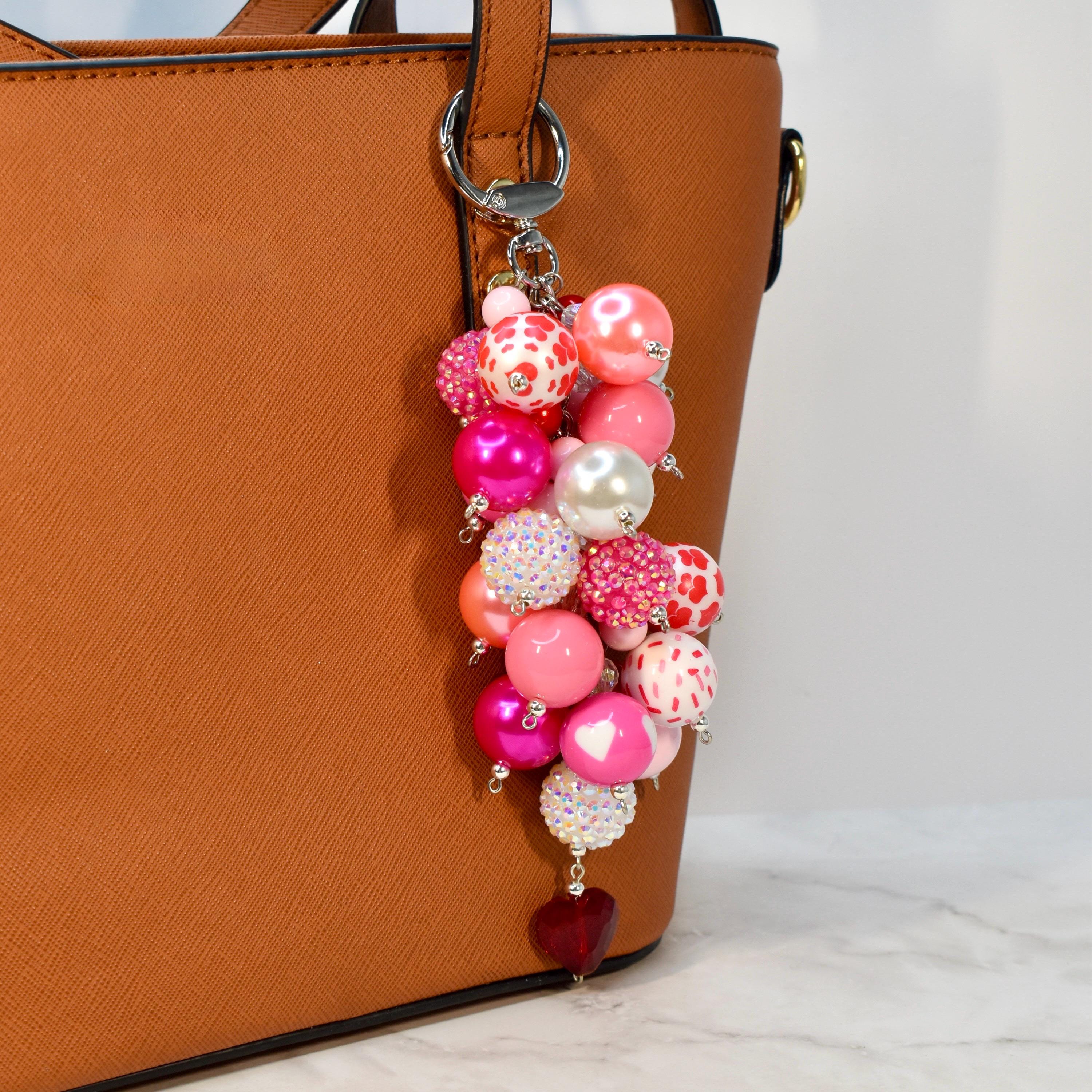 Celebrate love all year long with this gorgeous pink and red beaded bag charm! Perfect for Valentine’s Day, Galentine’s celebrations or everyday romance, this statement piece features a stunning mix of pink, hot pink and red beads with playful heart accents.