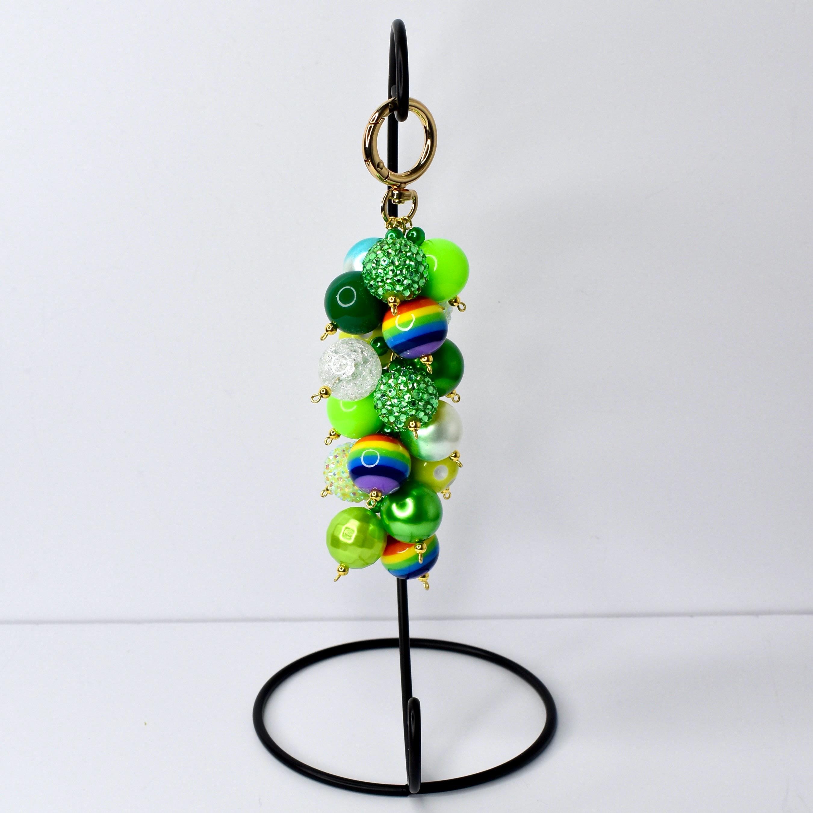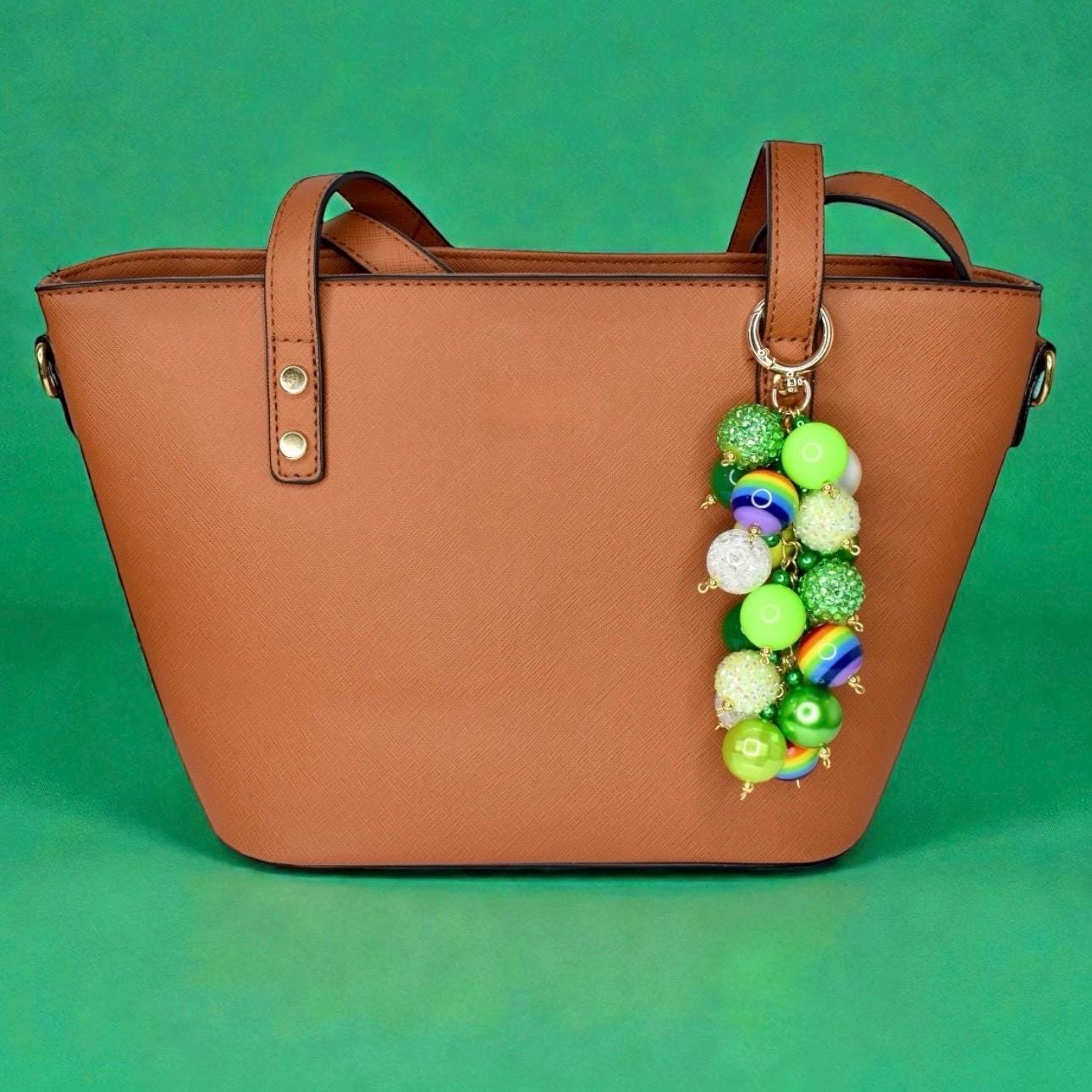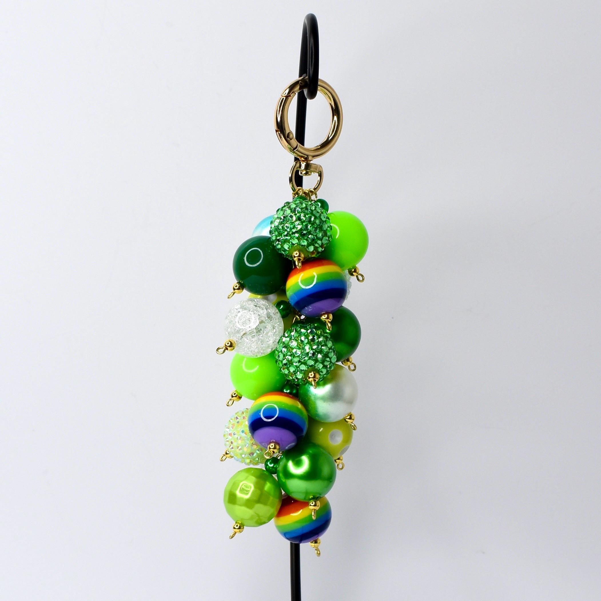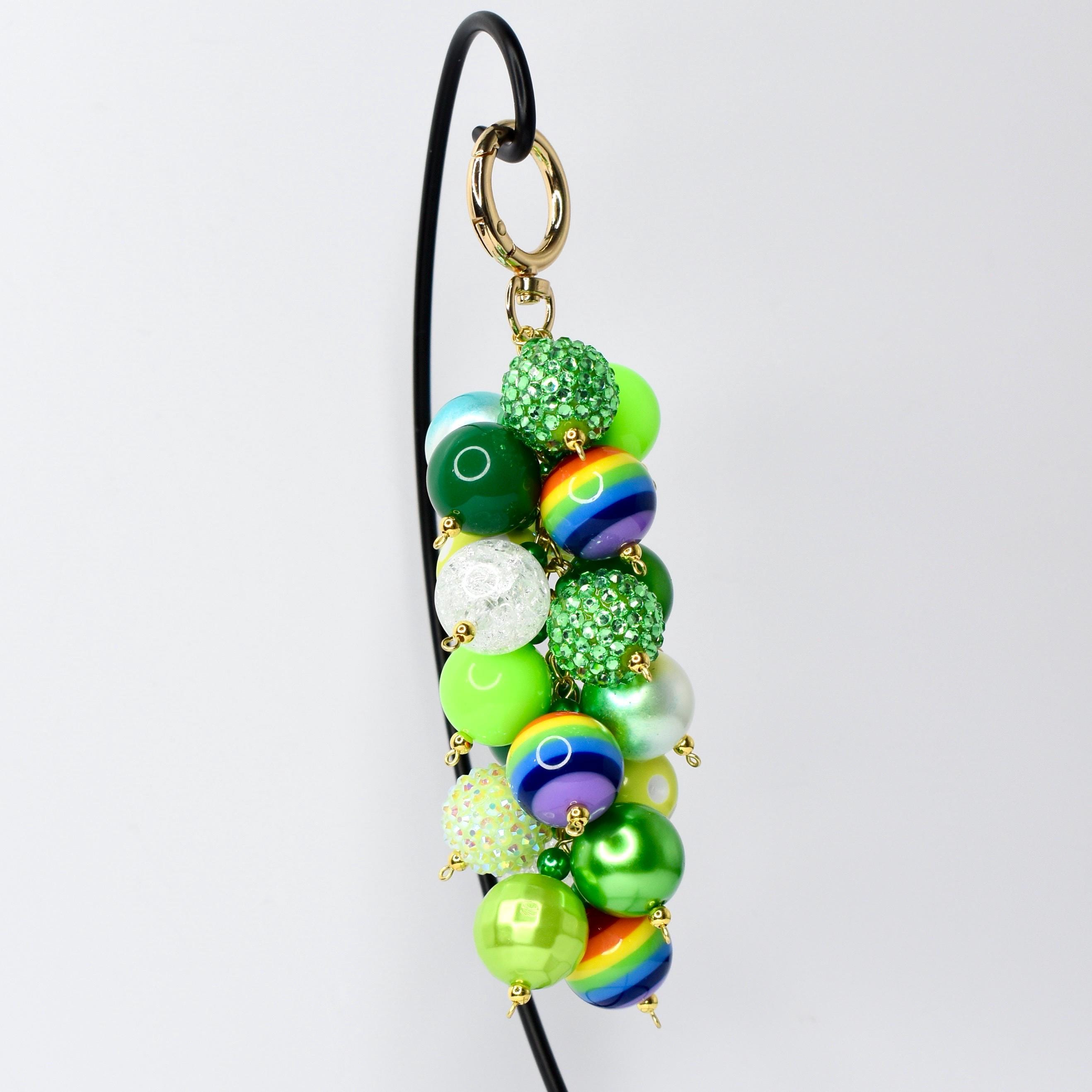 Bring the luck of the Irish to your everyday carry with this festive green beaded bag charm! Perfect for St. Patrick's Day celebrations or year-round Irish pride, this statement piece features a gorgeous mix of green and rainbow beads with gold accents.