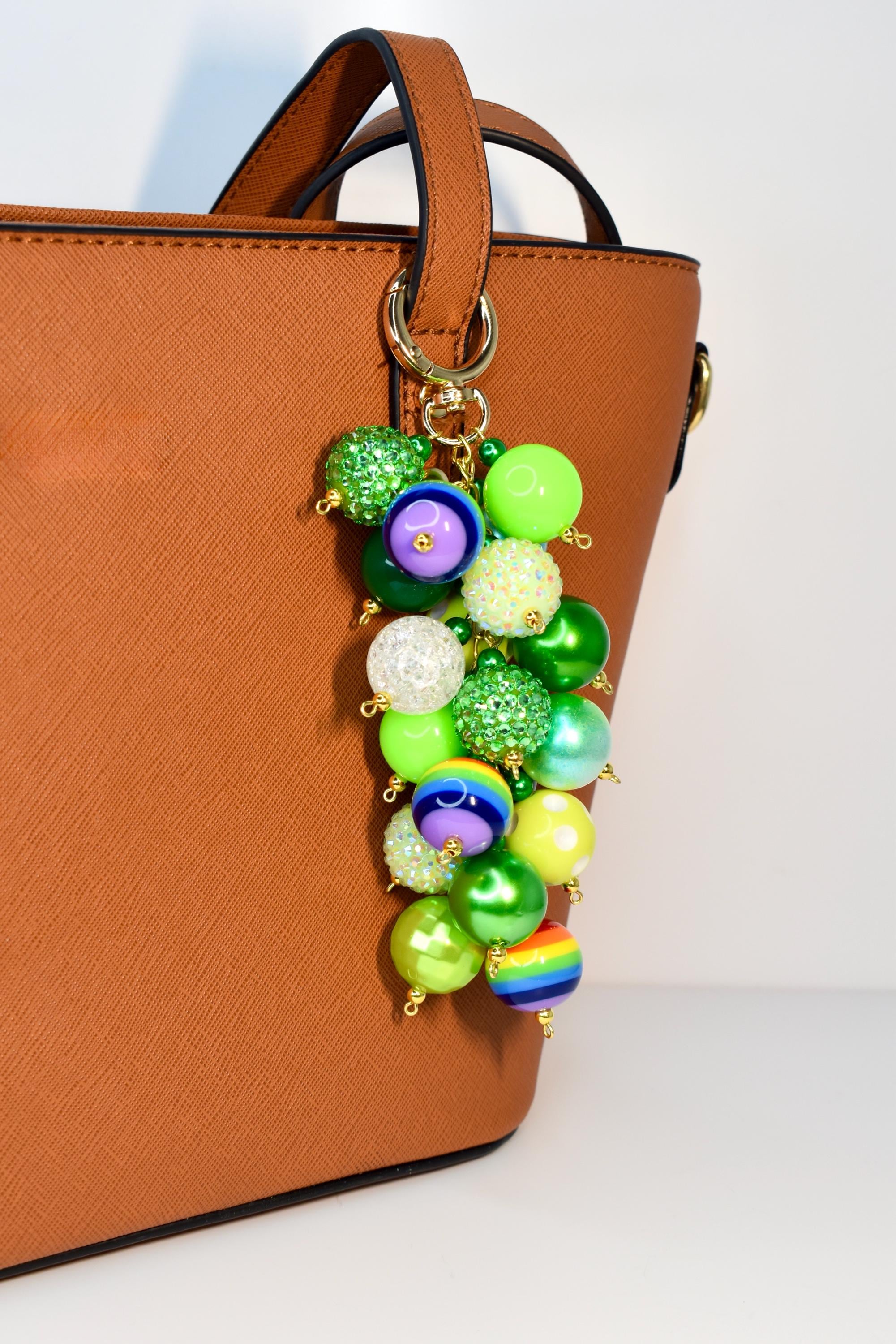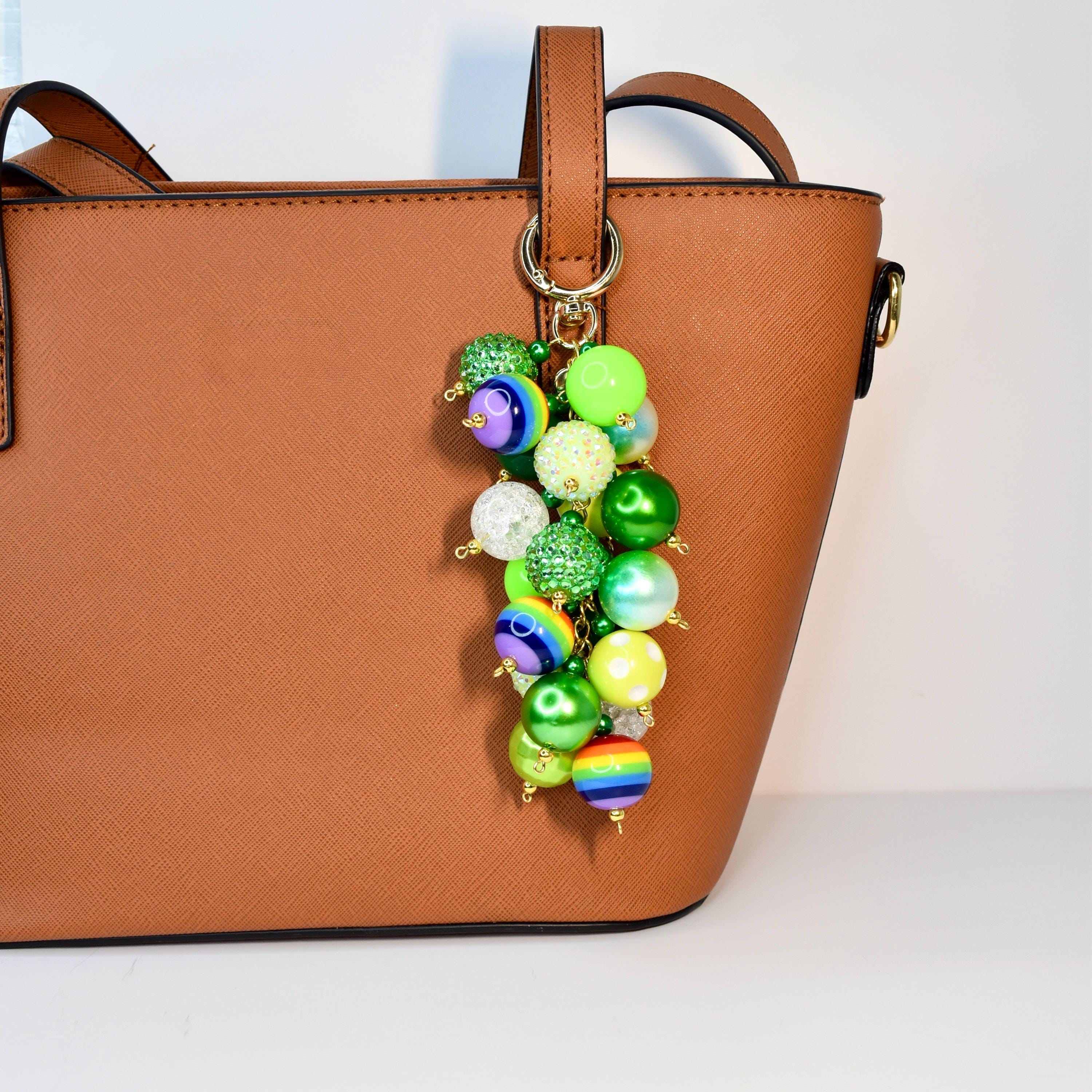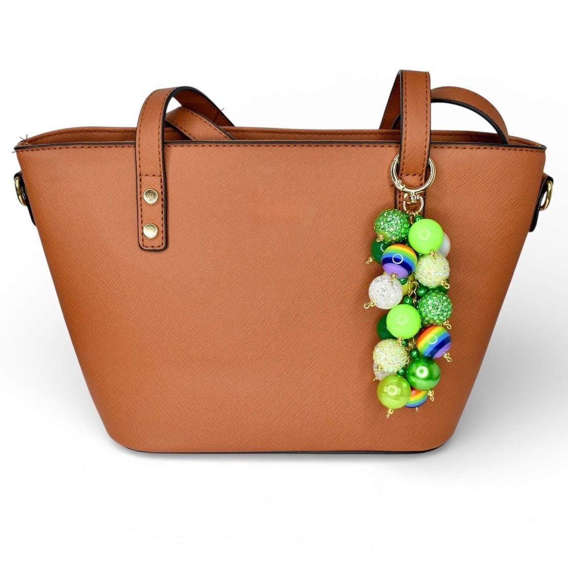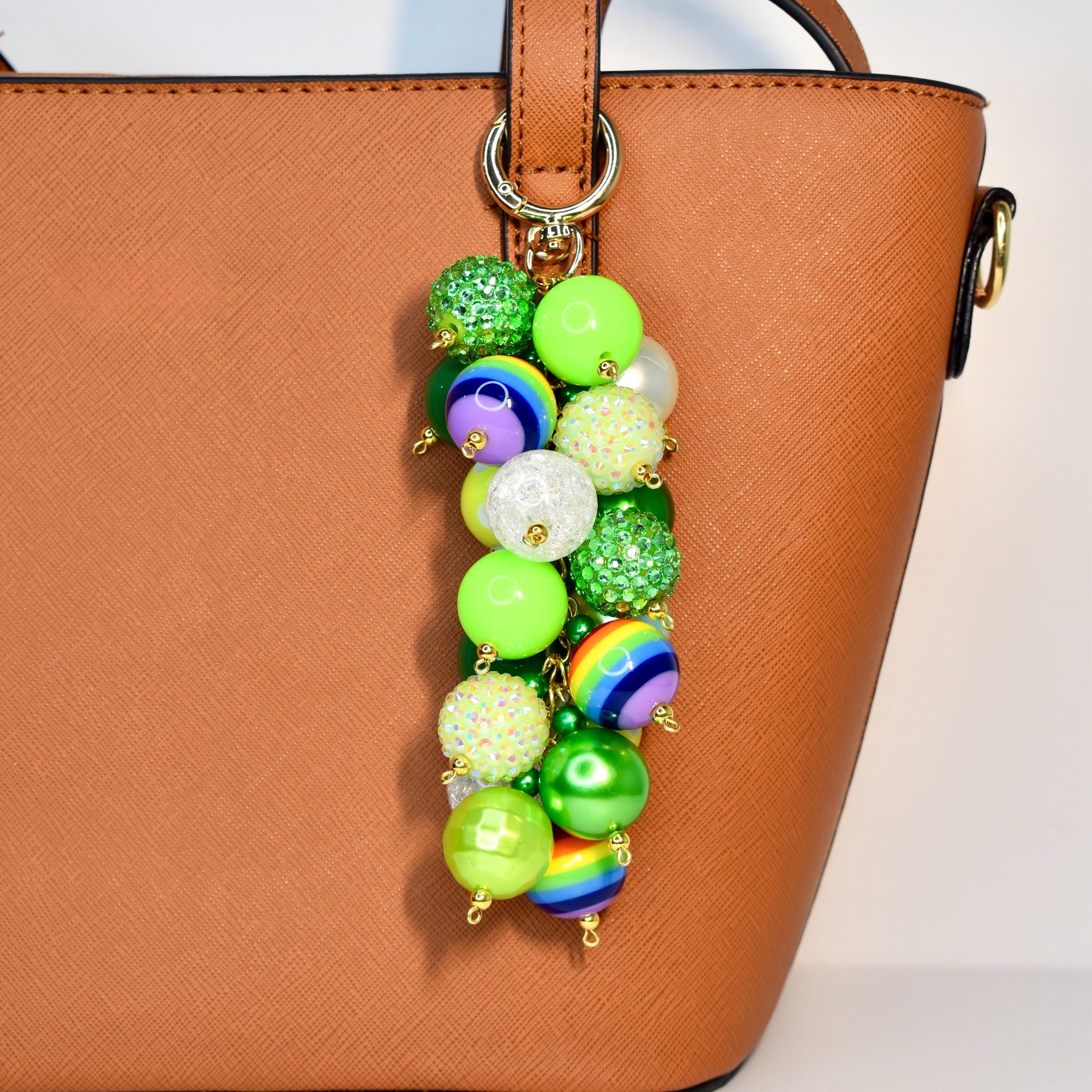 Bring the luck of the Irish to your everyday carry with this festive green beaded bag charm! Perfect for St. Patrick's Day celebrations or year-round Irish pride, this statement piece features a gorgeous mix of green and rainbow beads with gold accents.