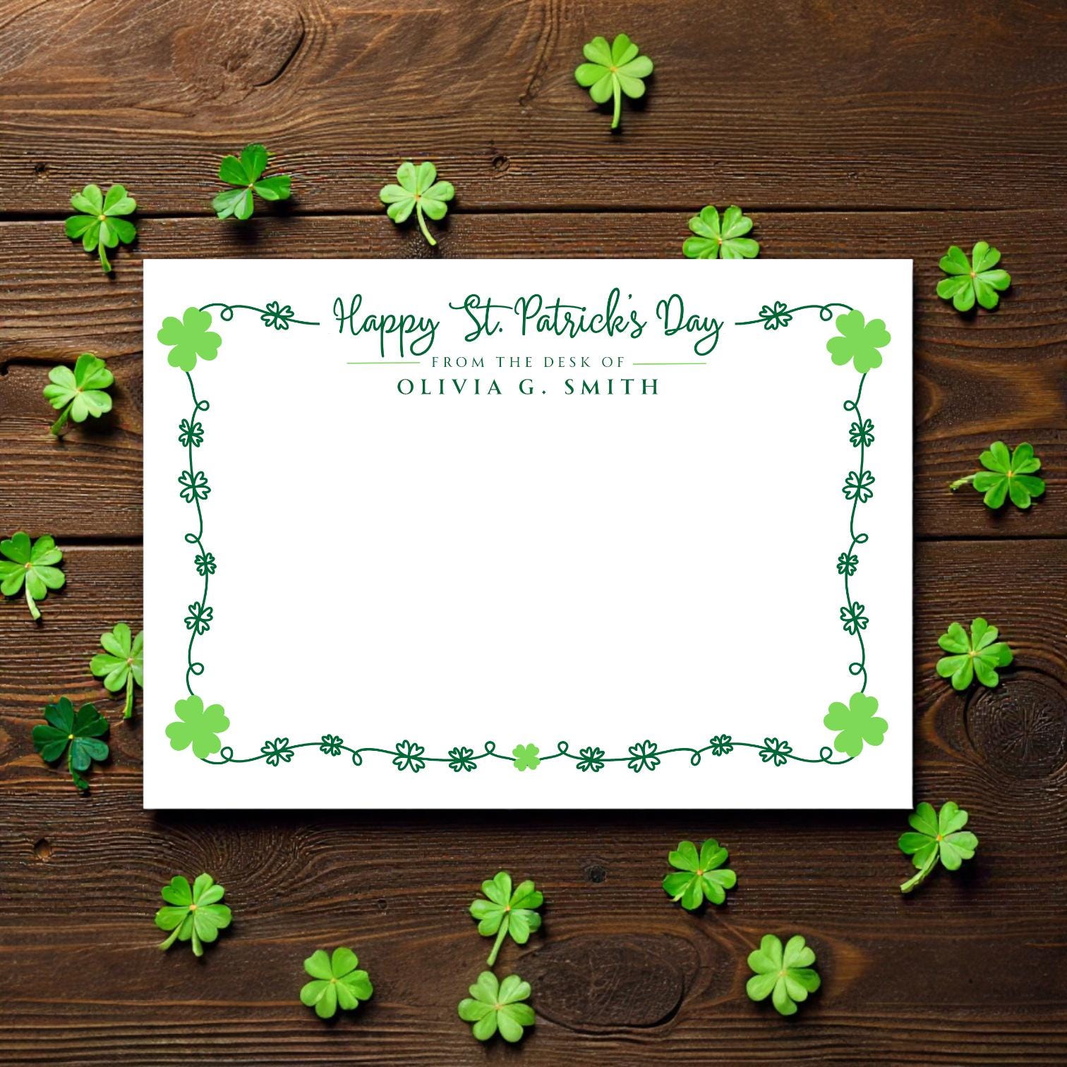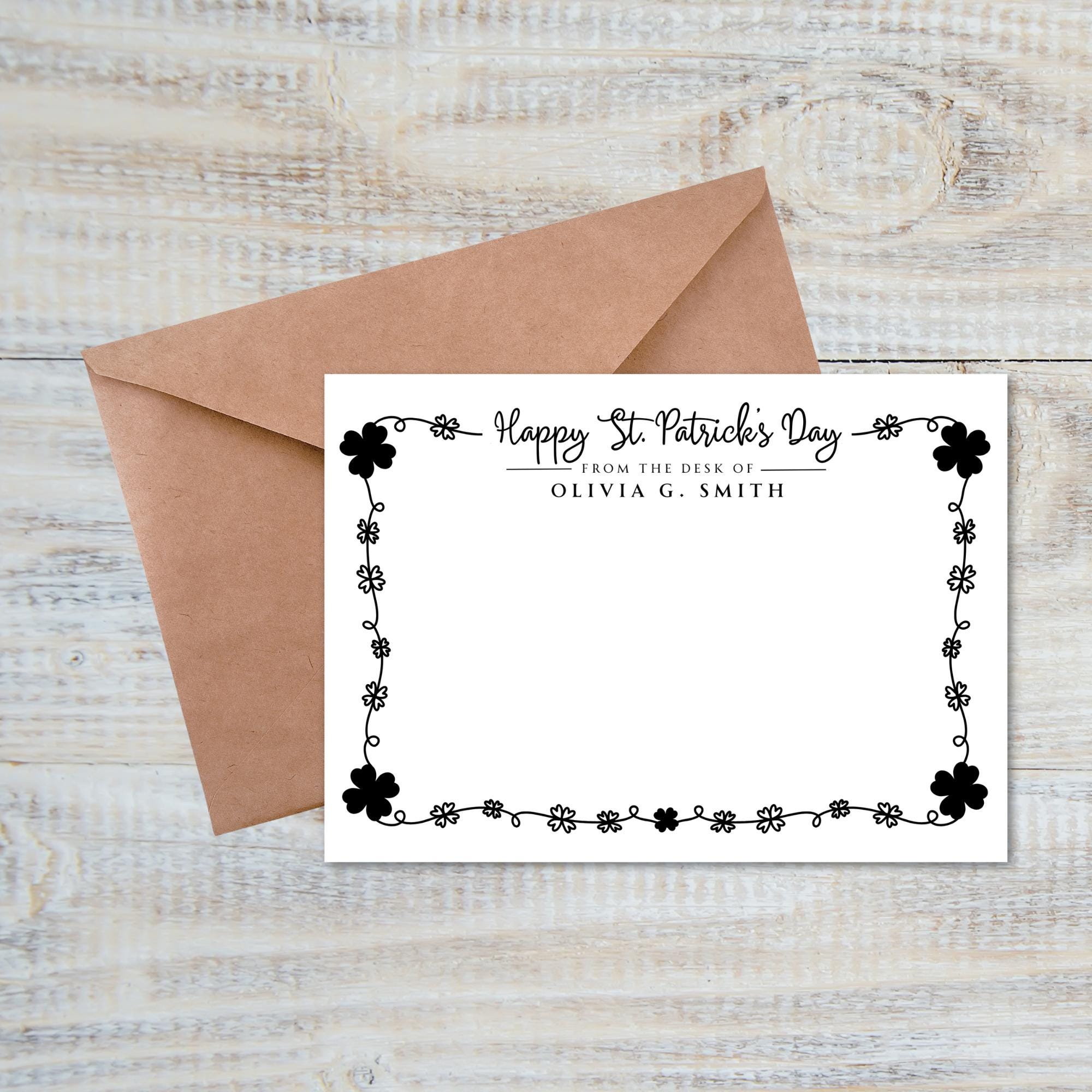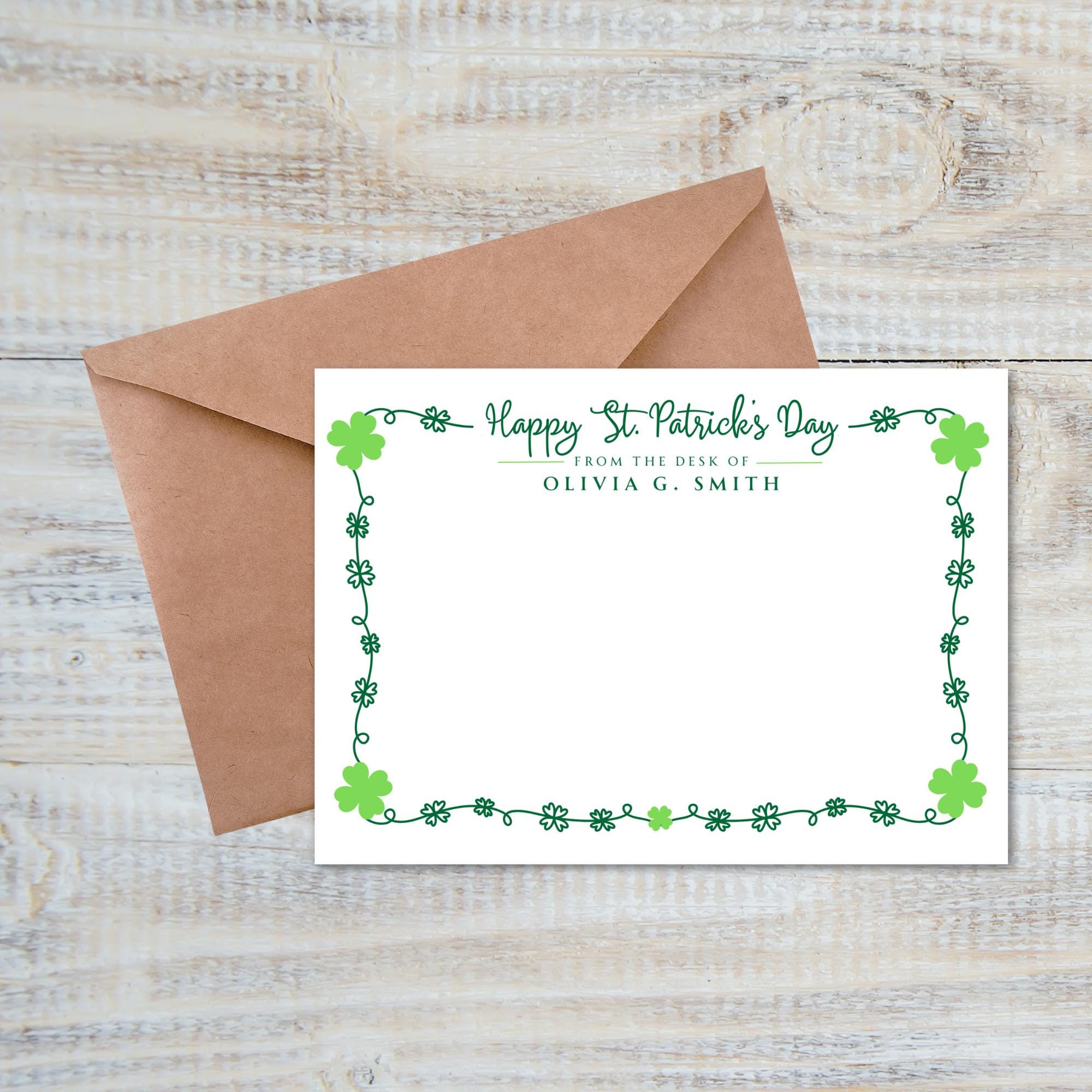 Elevate your handwritten notes with these elegant personalized St. Patrick's Day note cards that you can customize instantly in Canva! Perfect for thank you notes, personal stationary, business communications, or just because.