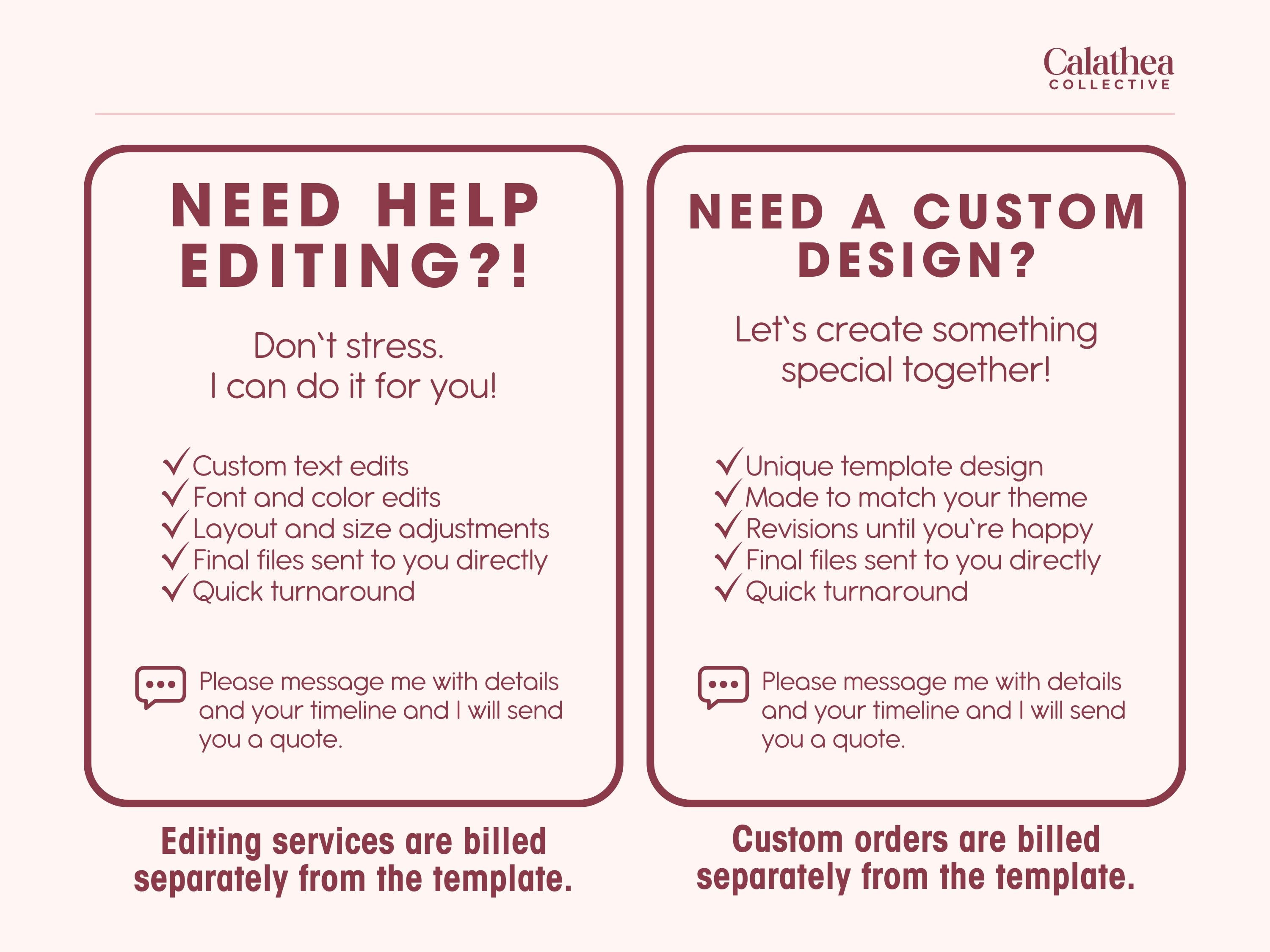 Most of Calathea Collective's products are handmade to order, which means they are created just for you! Because of the custom nature, we don't accept returns or exchanges. That said, if there’s ever an issue with your order—like damage during shipping or a mistake on our end—please reach out within 7 days. We want you to love your purchase and will always do our best to make it right.