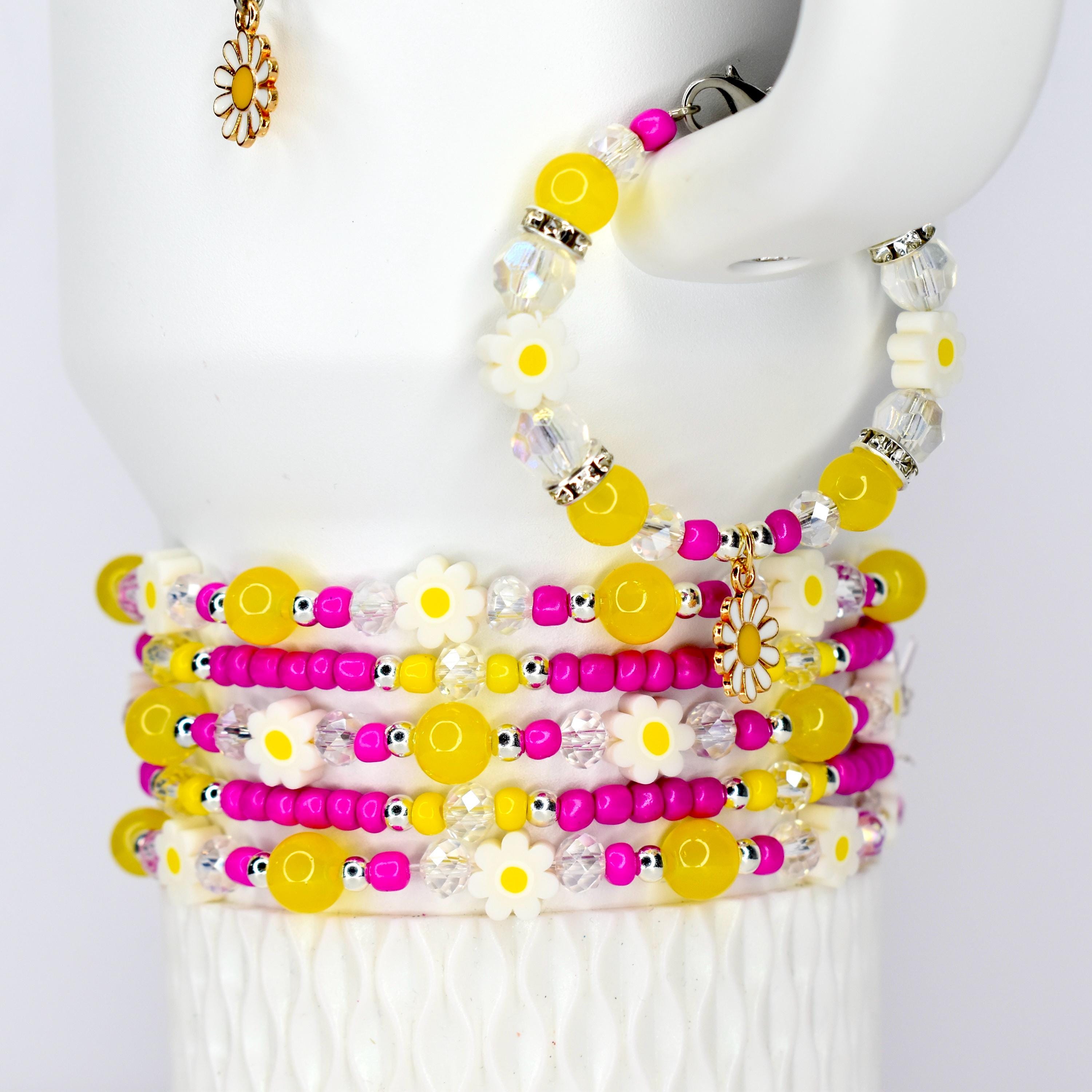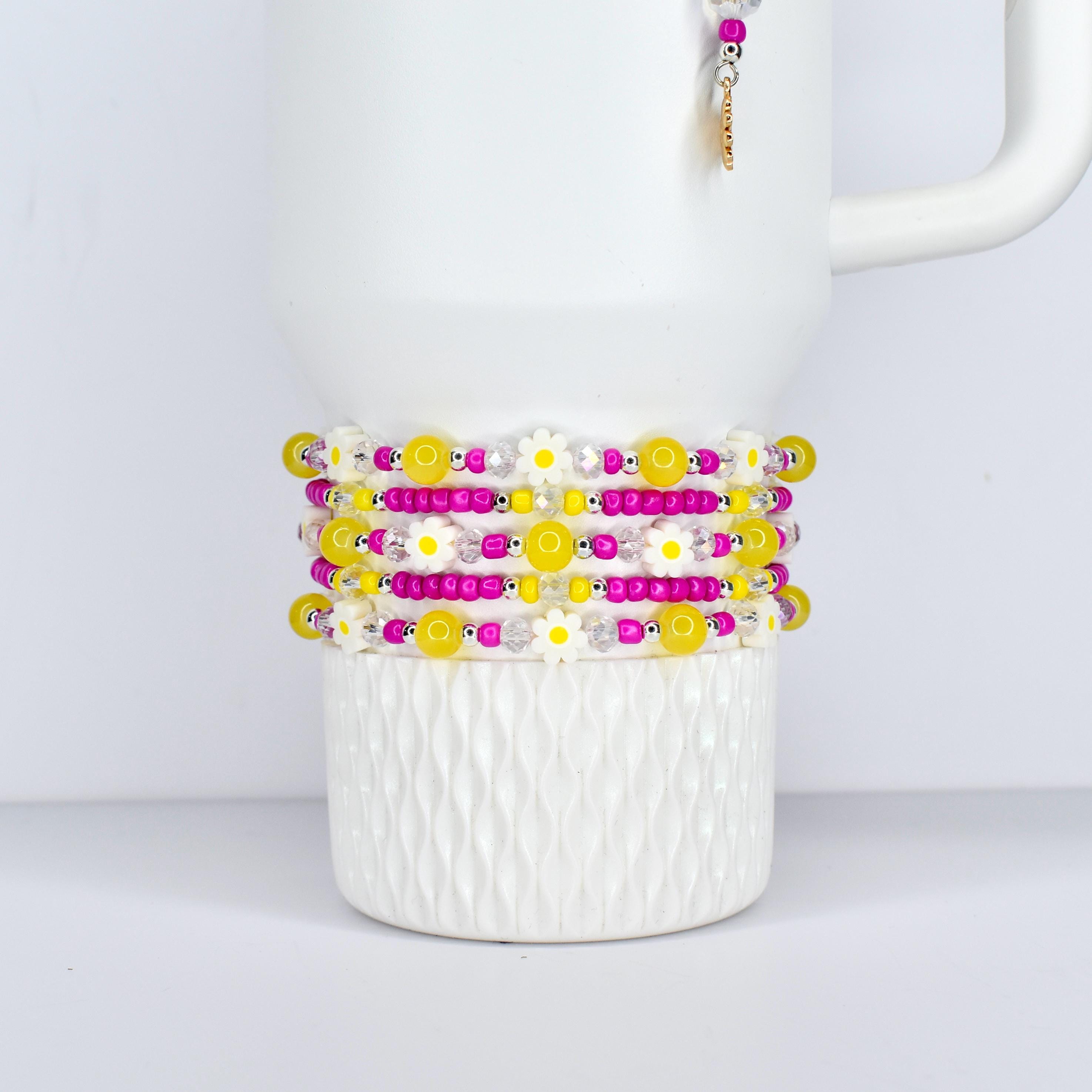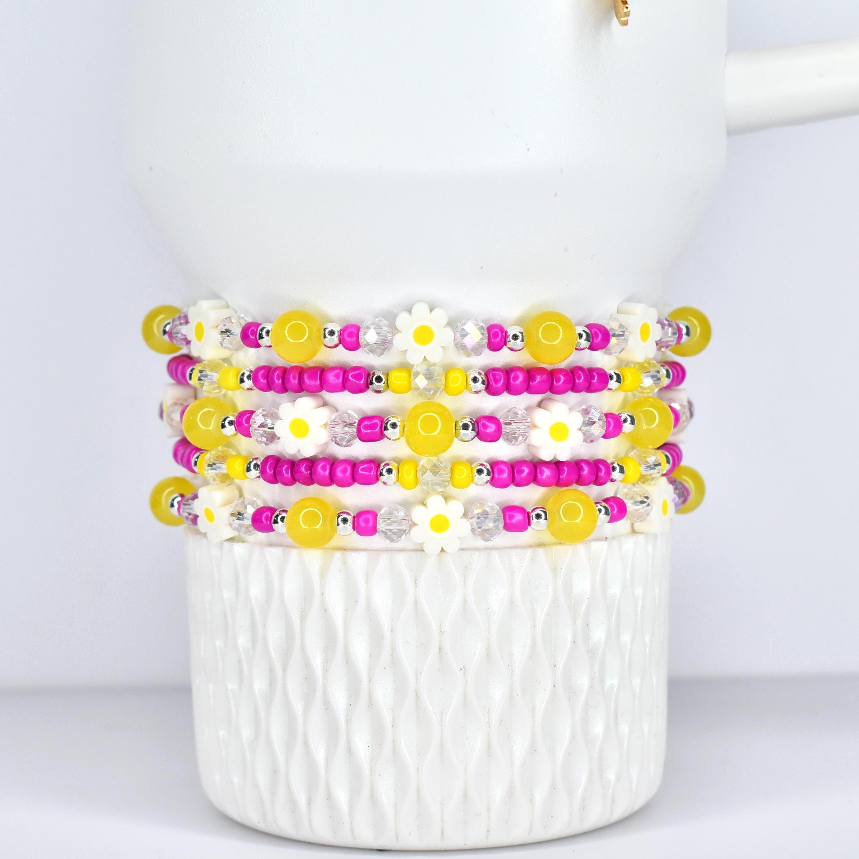 Bring a little sunshine to your day with these cheerful daisy bracelets! Whether you're stacking them on your wrist or jazzing up your morning coffee tumbler, these happy yellow and pink beauties add the perfect pop of color to your everyday routine.