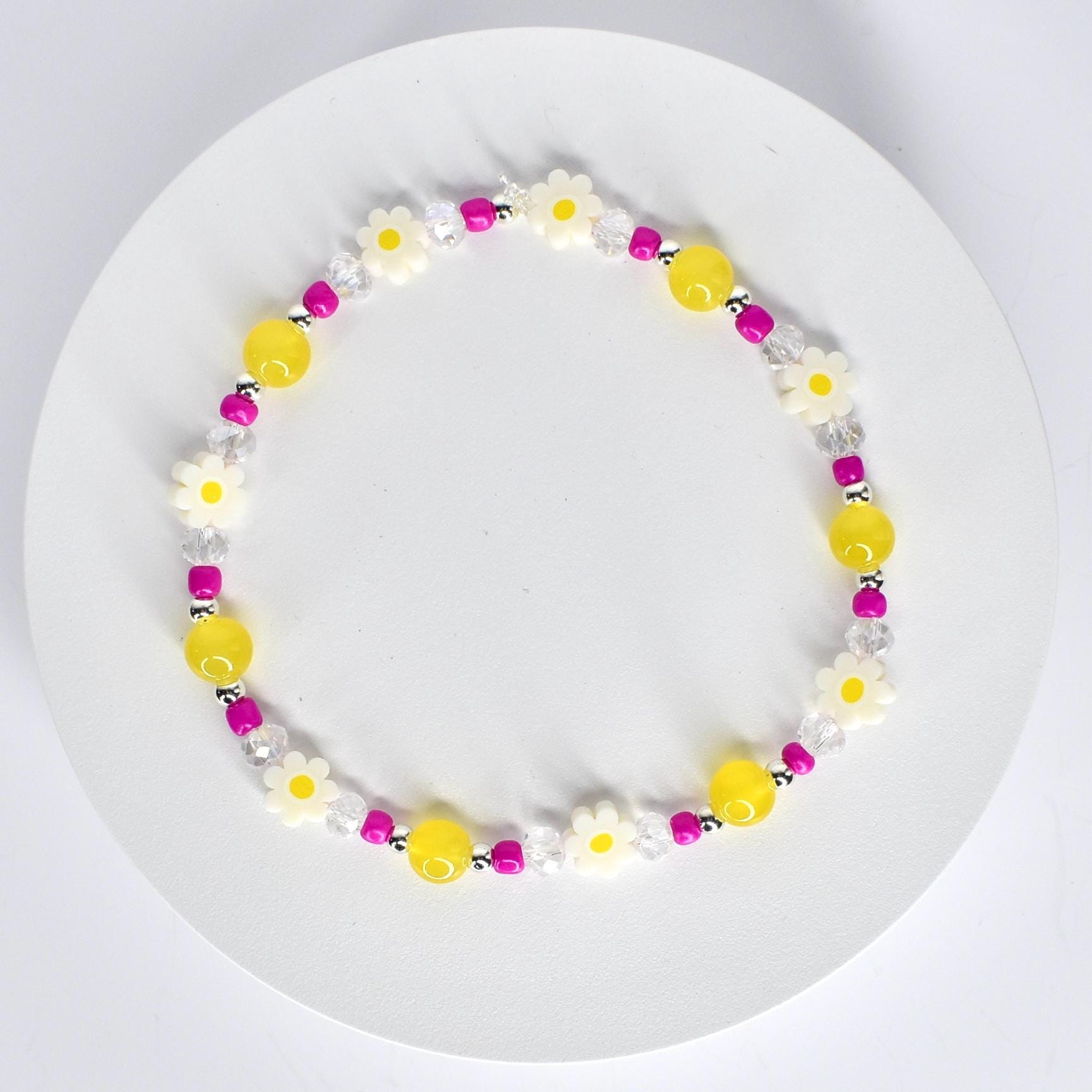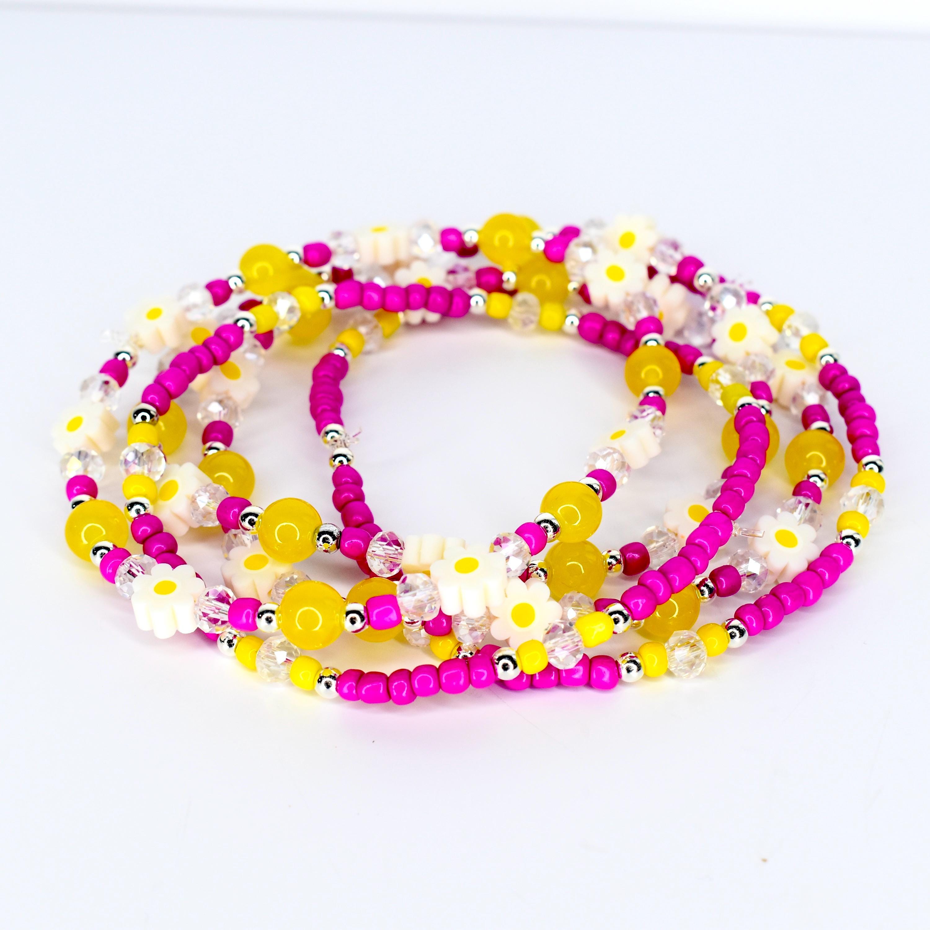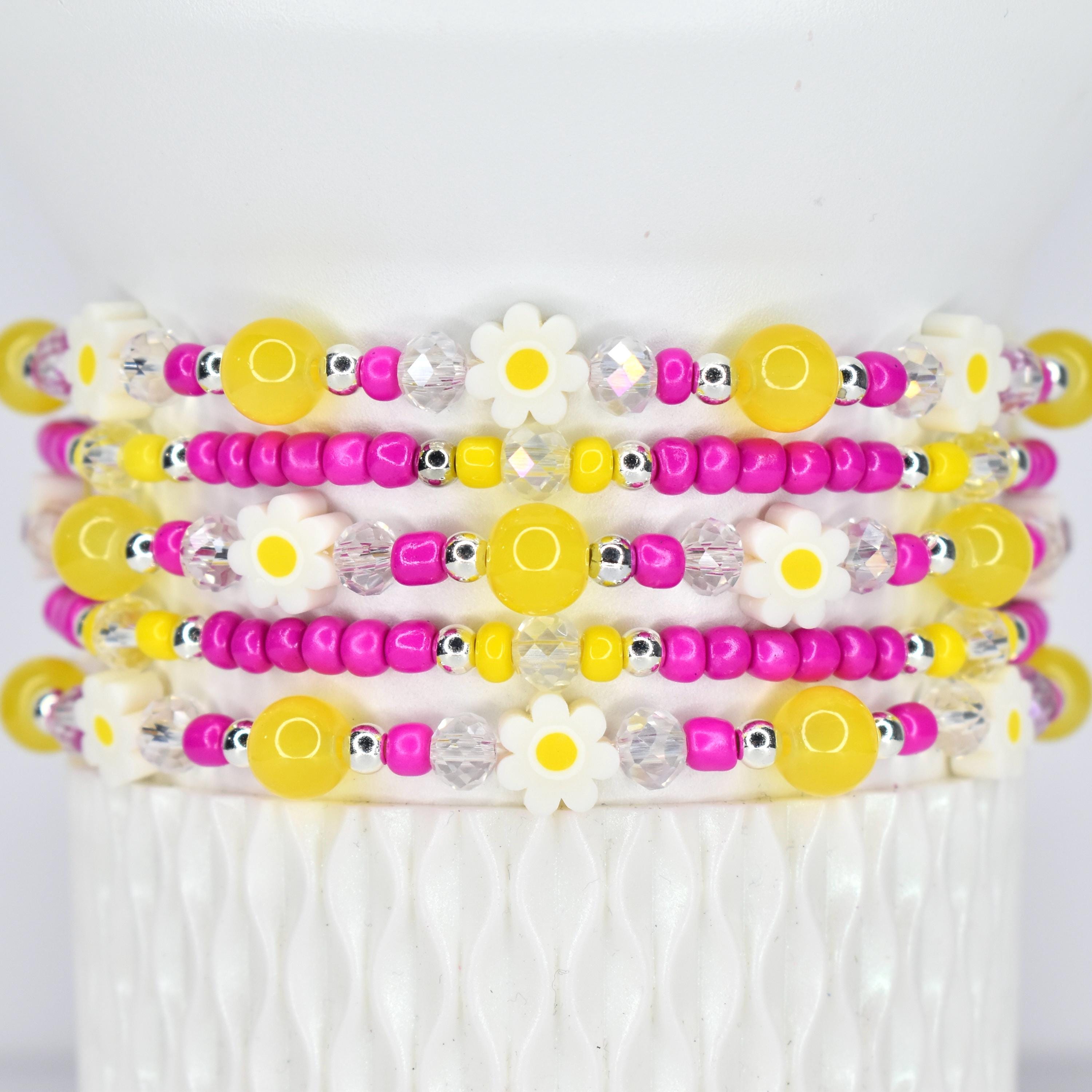 Bring a little sunshine to your day with these cheerful daisy bracelets! Whether you're stacking them on your wrist or jazzing up your morning coffee tumbler, these happy yellow and pink beauties add the perfect pop of color to your everyday routine.